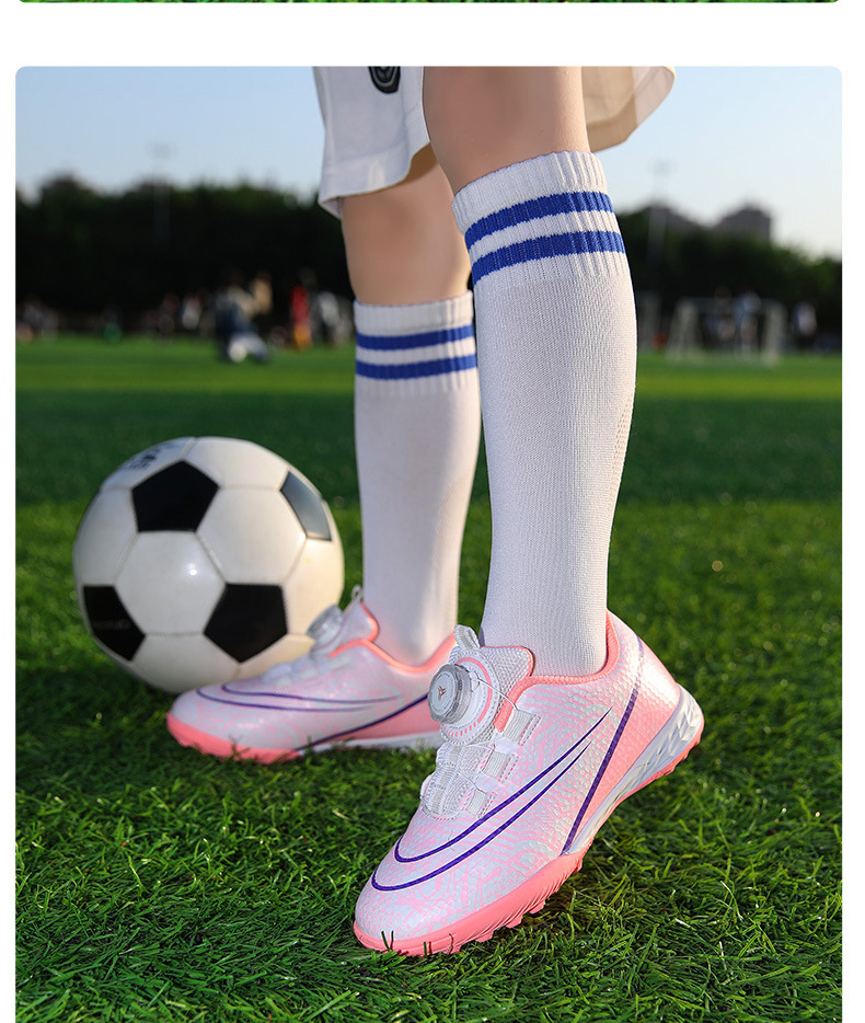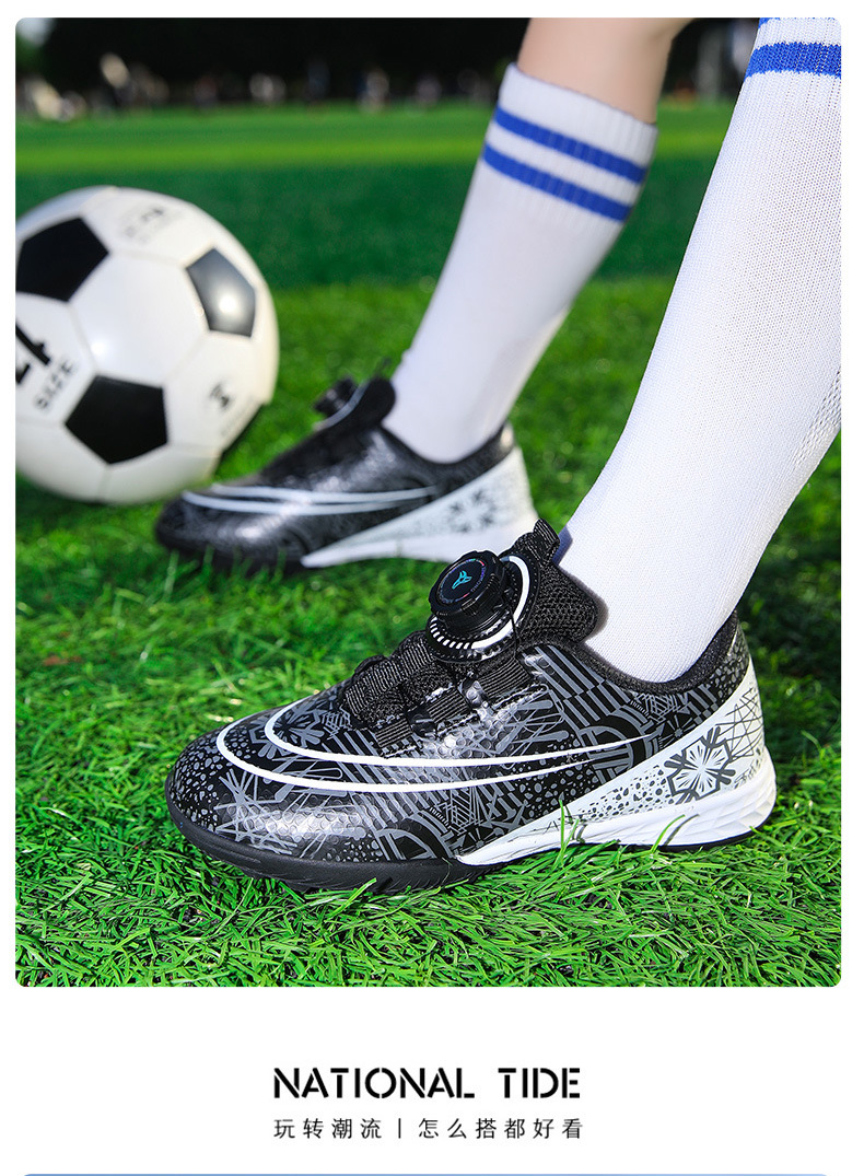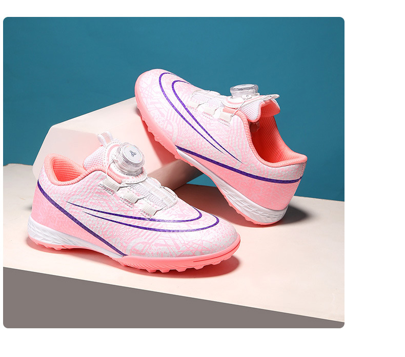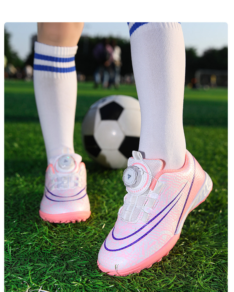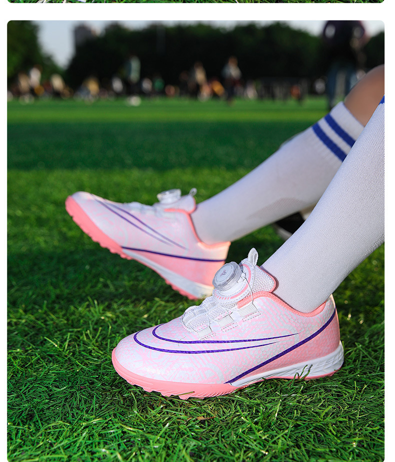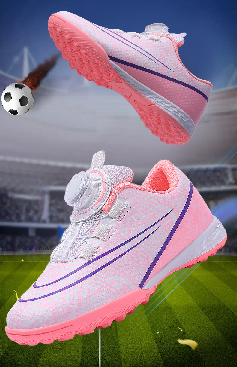 Nuevos zapatos de fútbol transfronterizos botón giratorio sin lazos zapatos de entrenamiento de niños estudiantes clavos rotos zapatos de niños zapatos de niñas zapatos