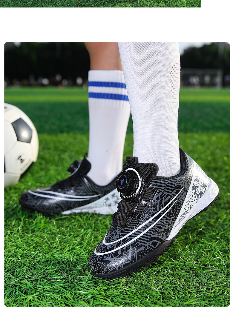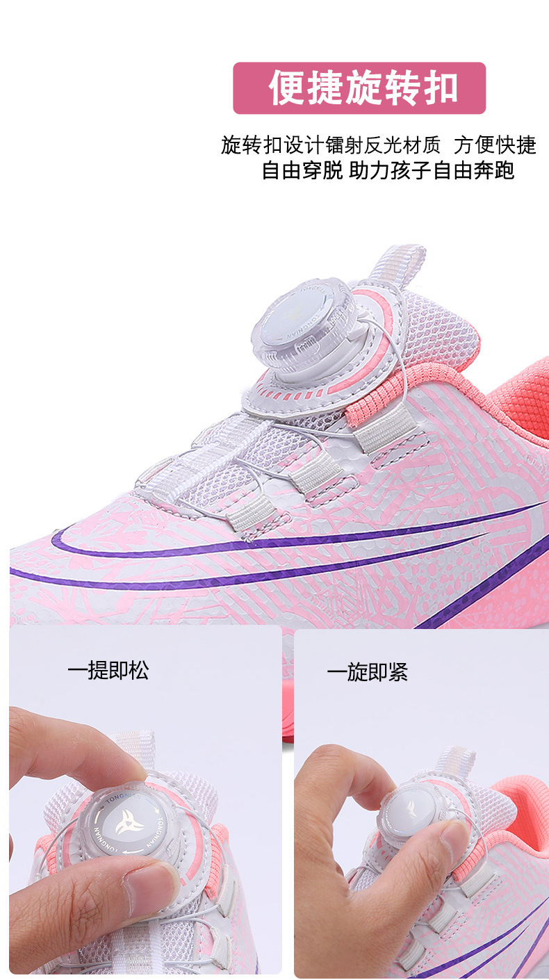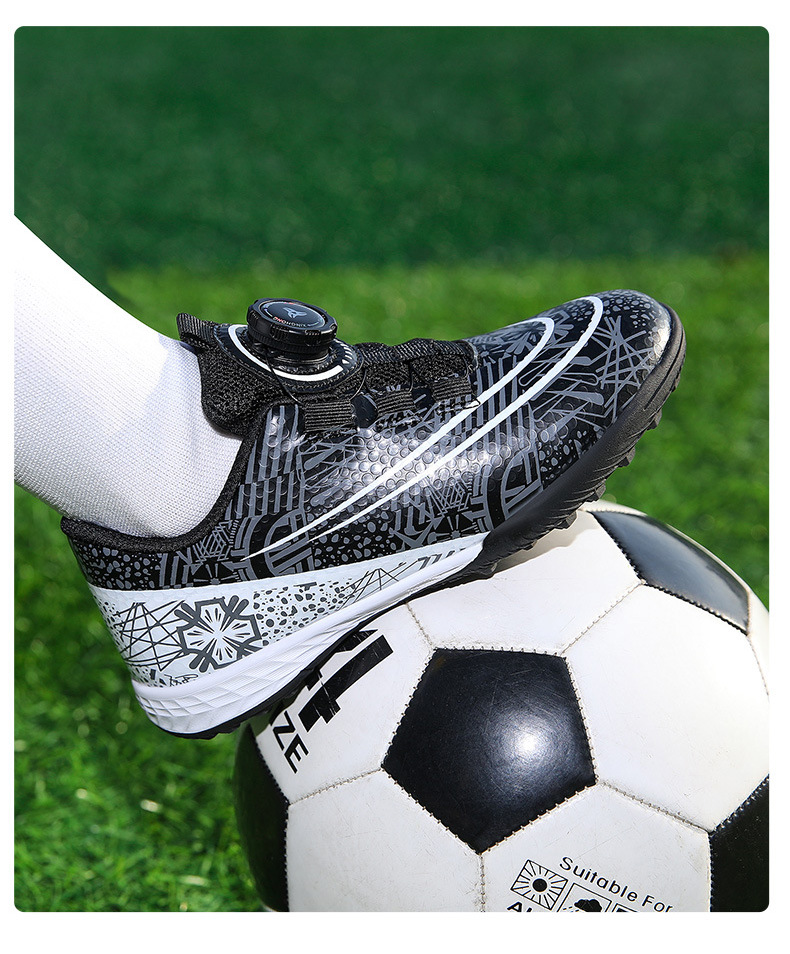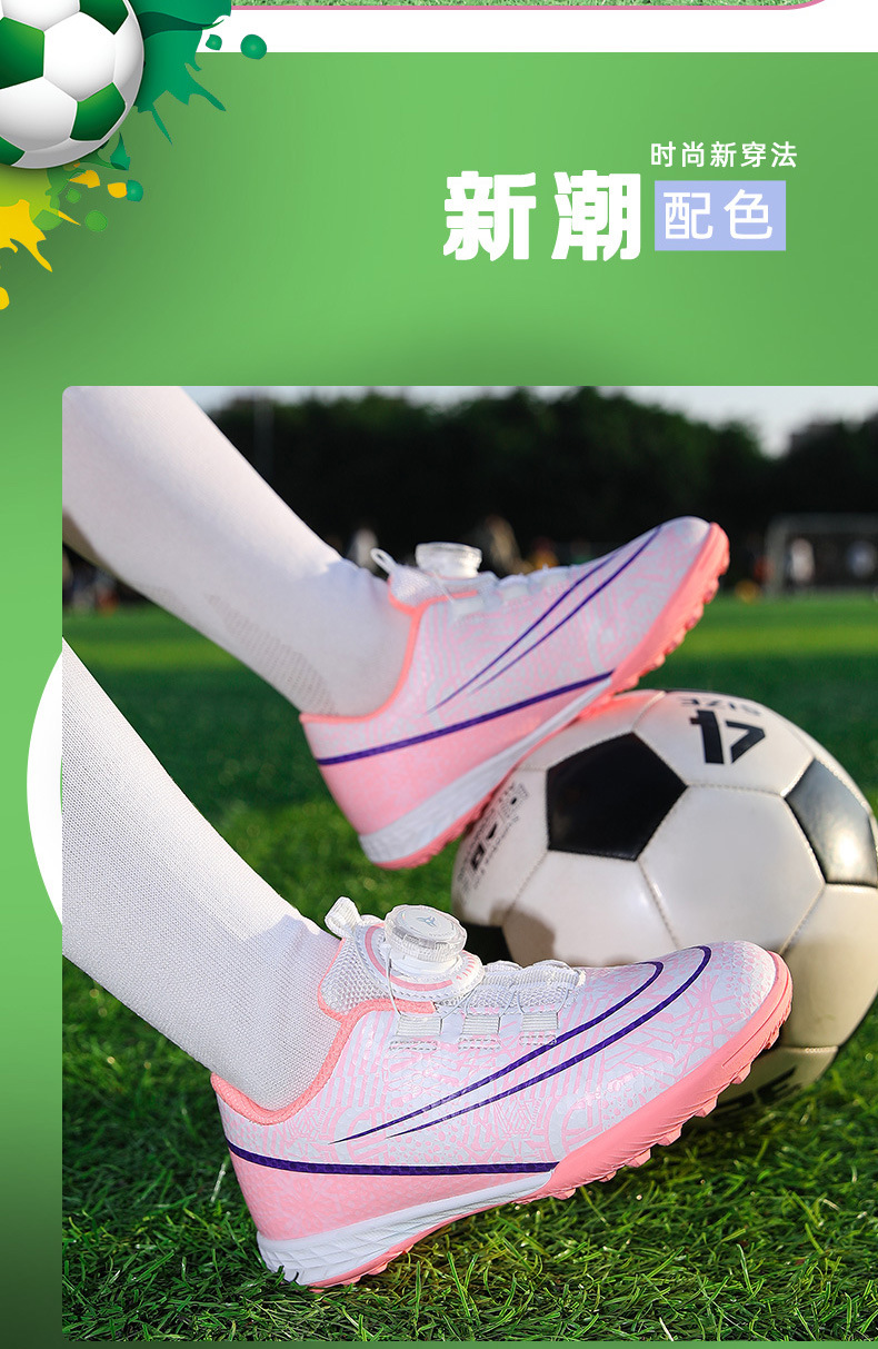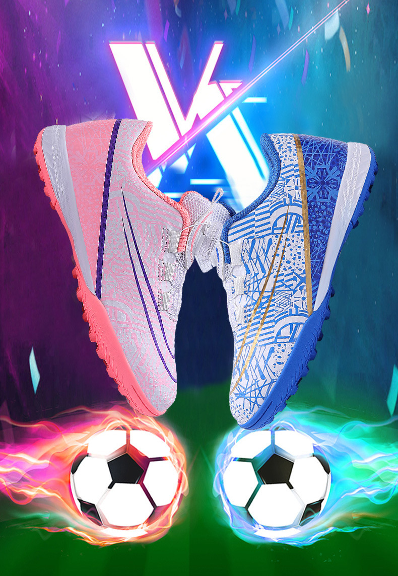 Nuevos zapatos de fútbol transfronterizos botón giratorio sin lazos zapatos de entrenamiento de niños estudiantes clavos rotos zapatos de niños zapatos de niñas zapatos