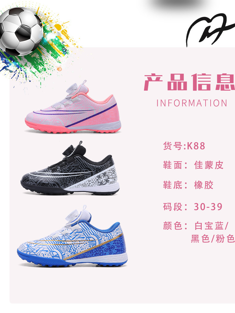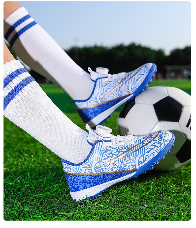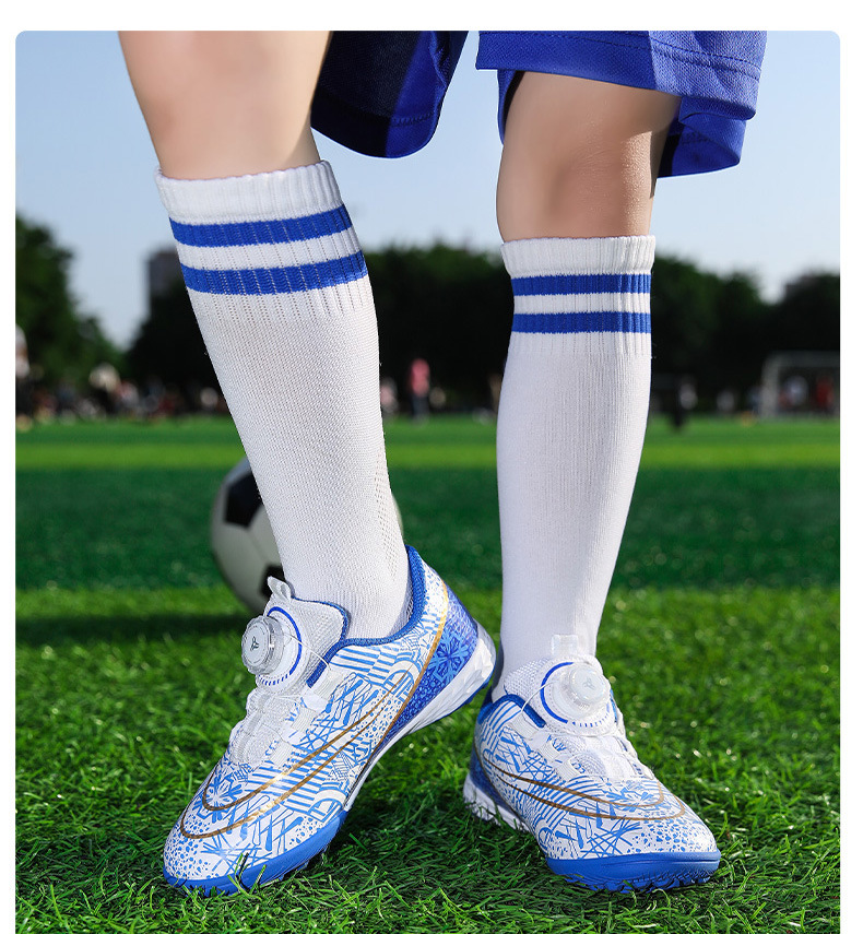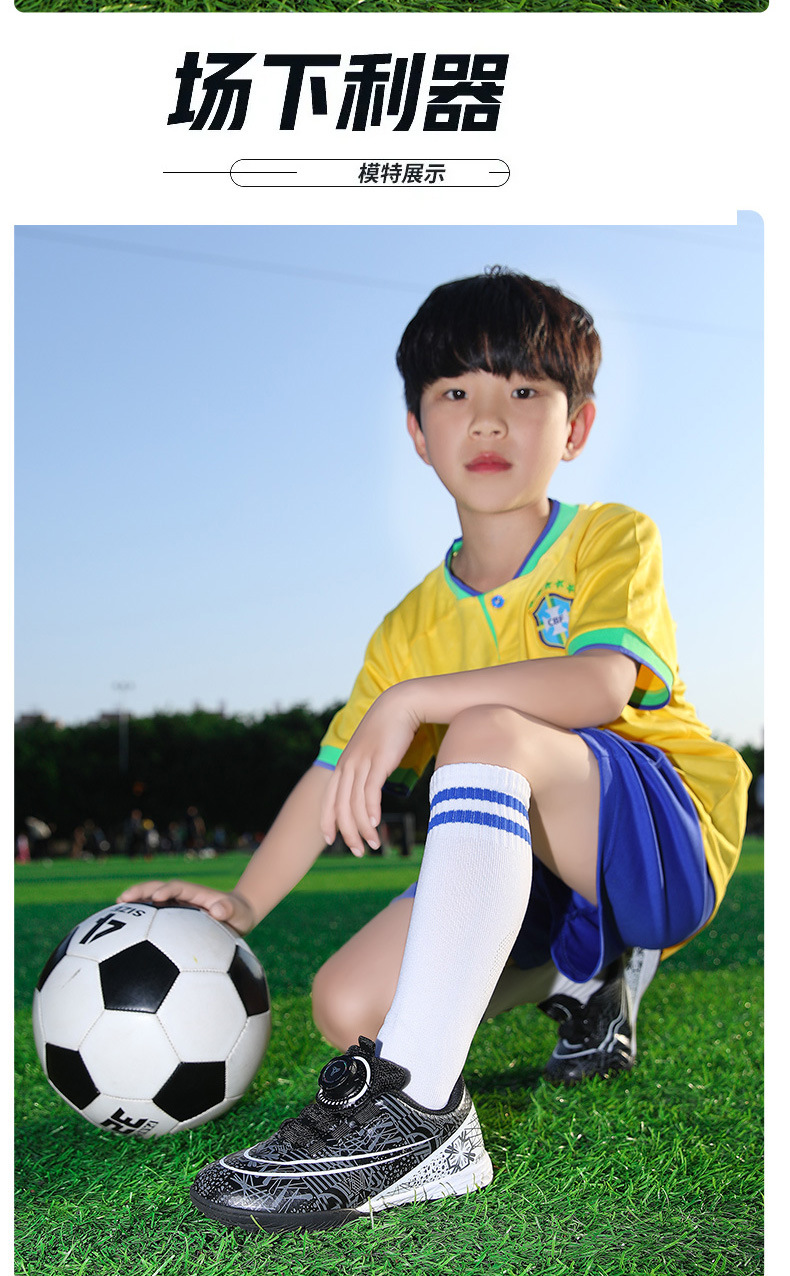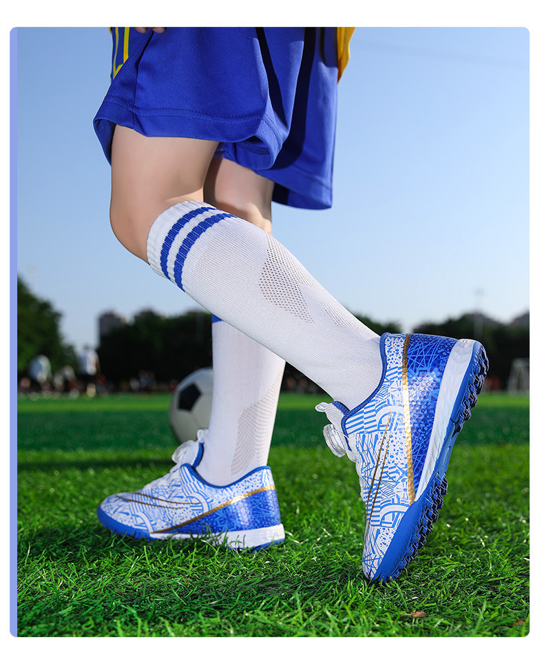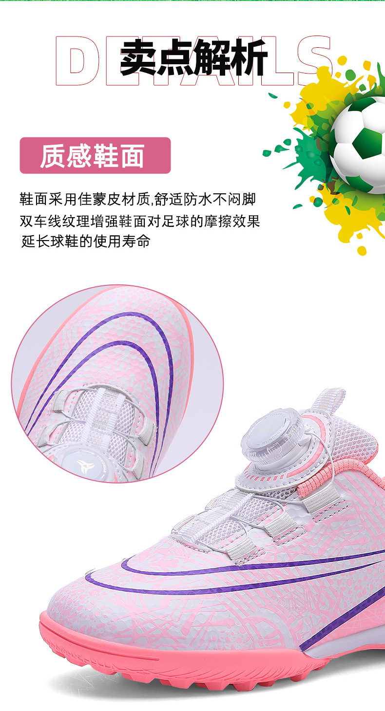Nuevos zapatos de fútbol transfronterizos botón giratorio sin lazos zapatos de entrenamiento de niños estudiantes clavos rotos zapatos de niños zapatos de niñas zapatos