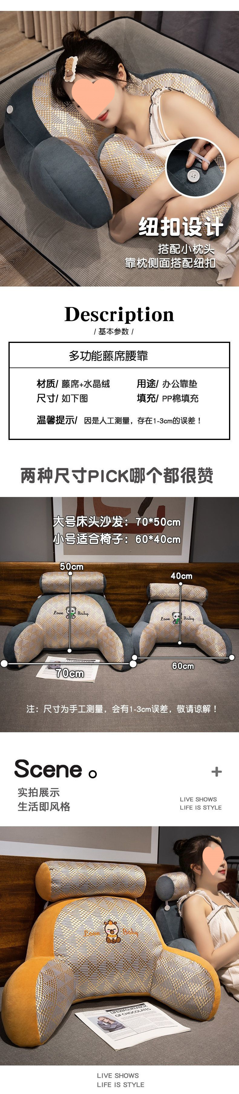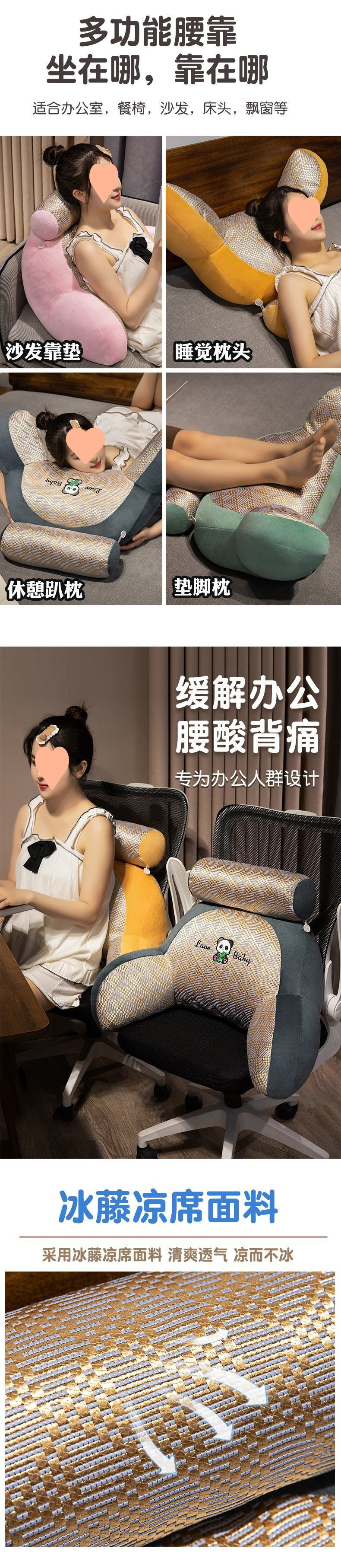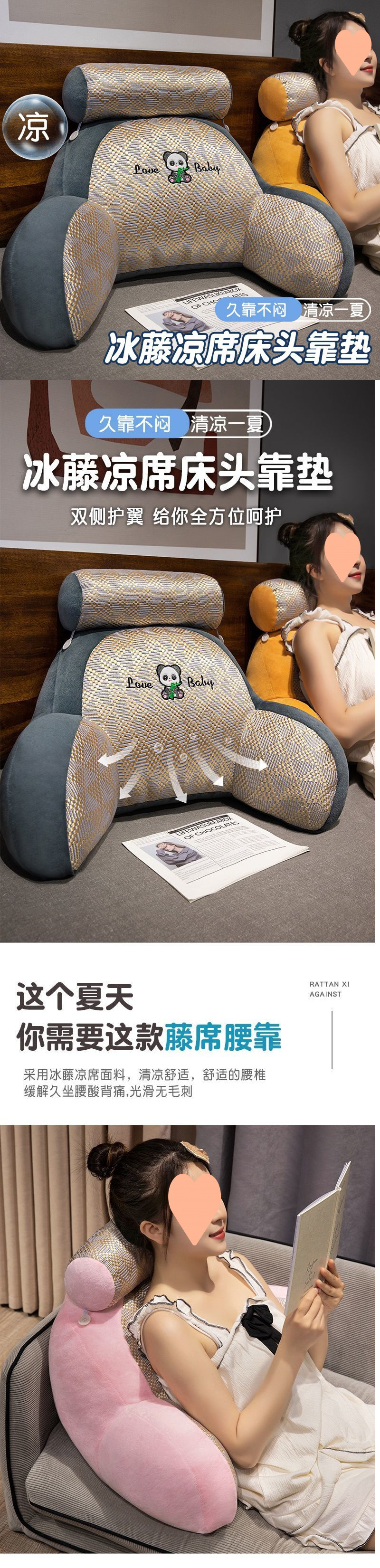 Verano almohada de cabecera dormitorio dormitorio dormitorio para jugar en la cama almohada de cintura almohada fresca y transpirable gran respaldo