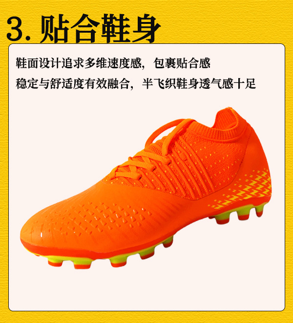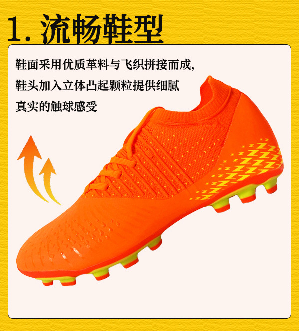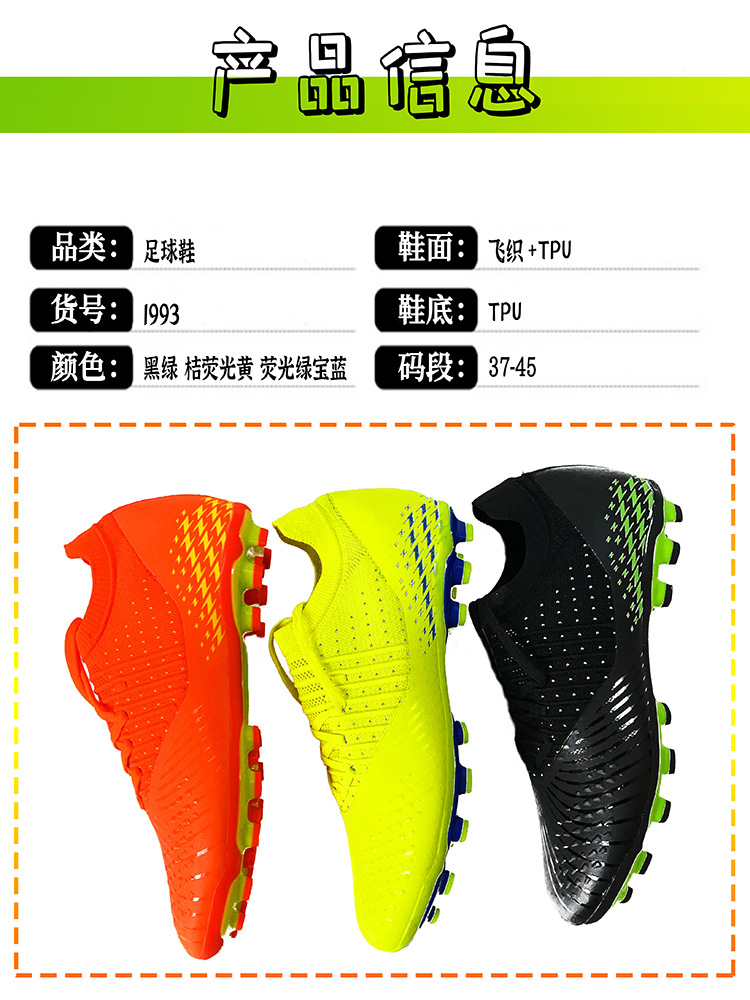 Zapatos de fútbol transfronterizos Putian sin costuras de tejido de vuelo para hombres, césped artificial, clavos largos, zapatos de entrenamiento para adolescentes adultos