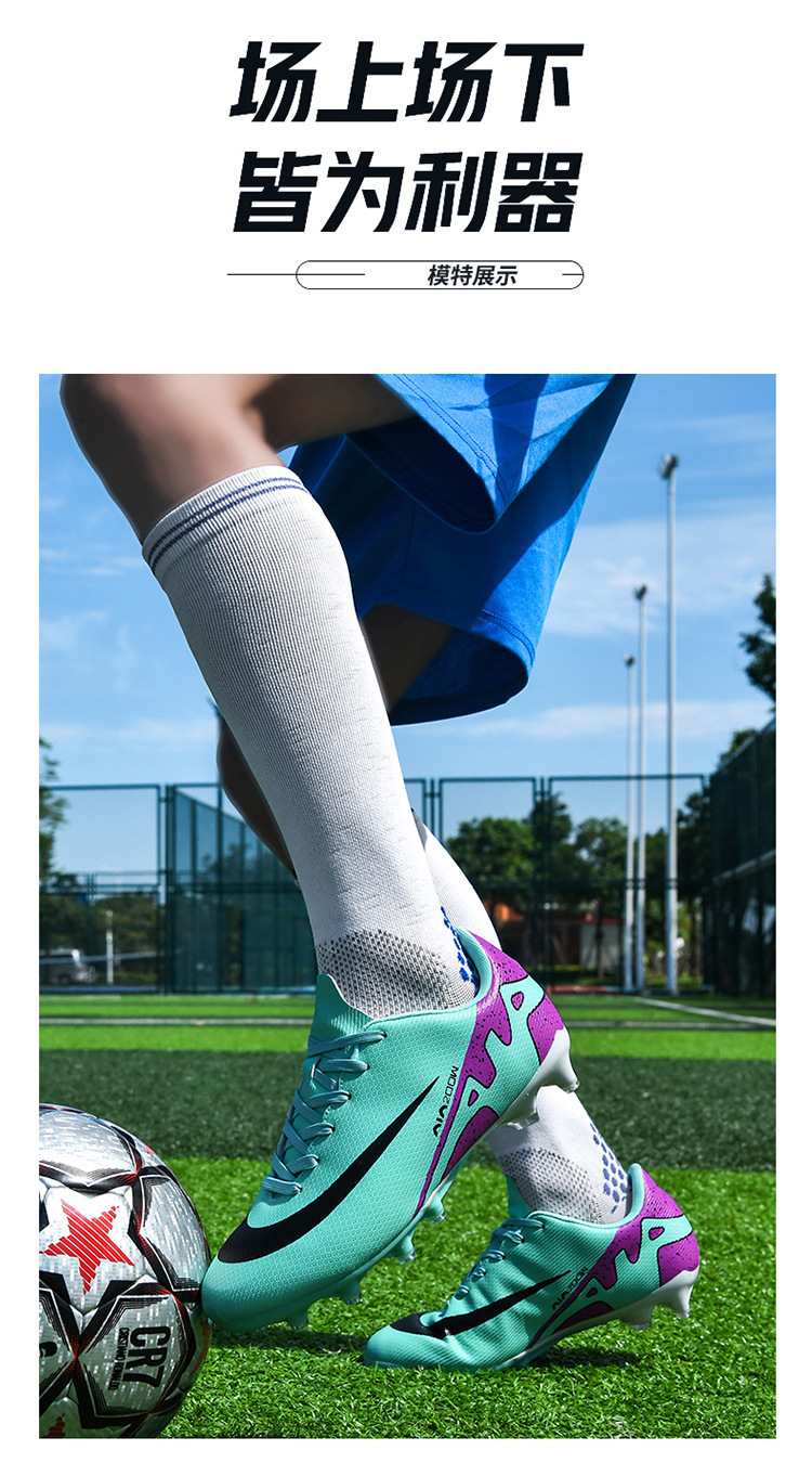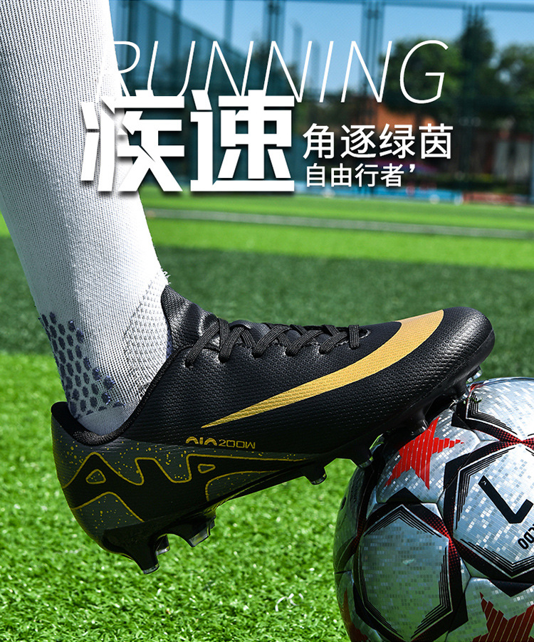 Zapatos de fútbol de alto nivel transfronterizos anti-deslizante para hombres y mujeres zapatos de entrenamiento de fútbol de clavos profesionales al por mayor