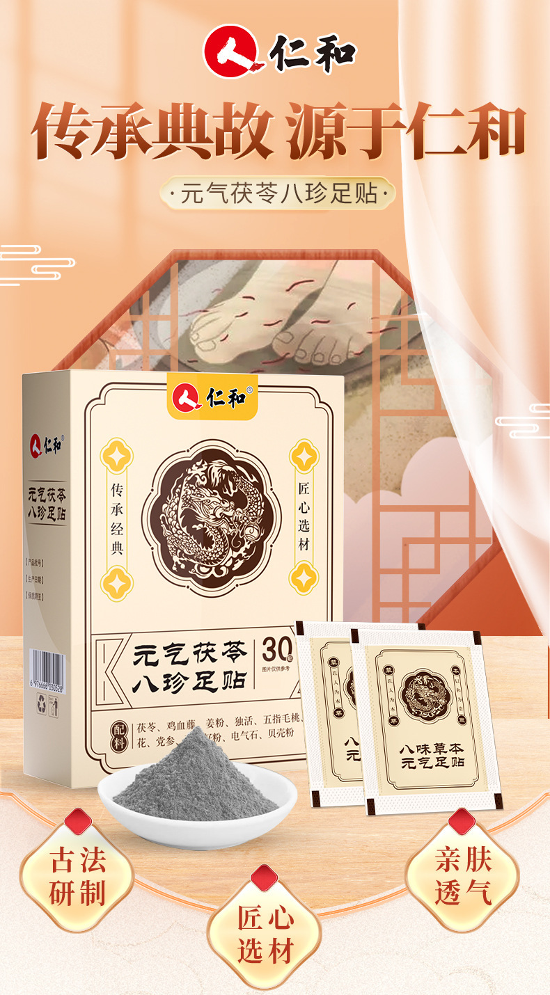 Renhe Foot Paste Coiacoia Peach Codonopsis pollo Rattan jengibre polvo de cártamo vivo herencia fórmula oficial