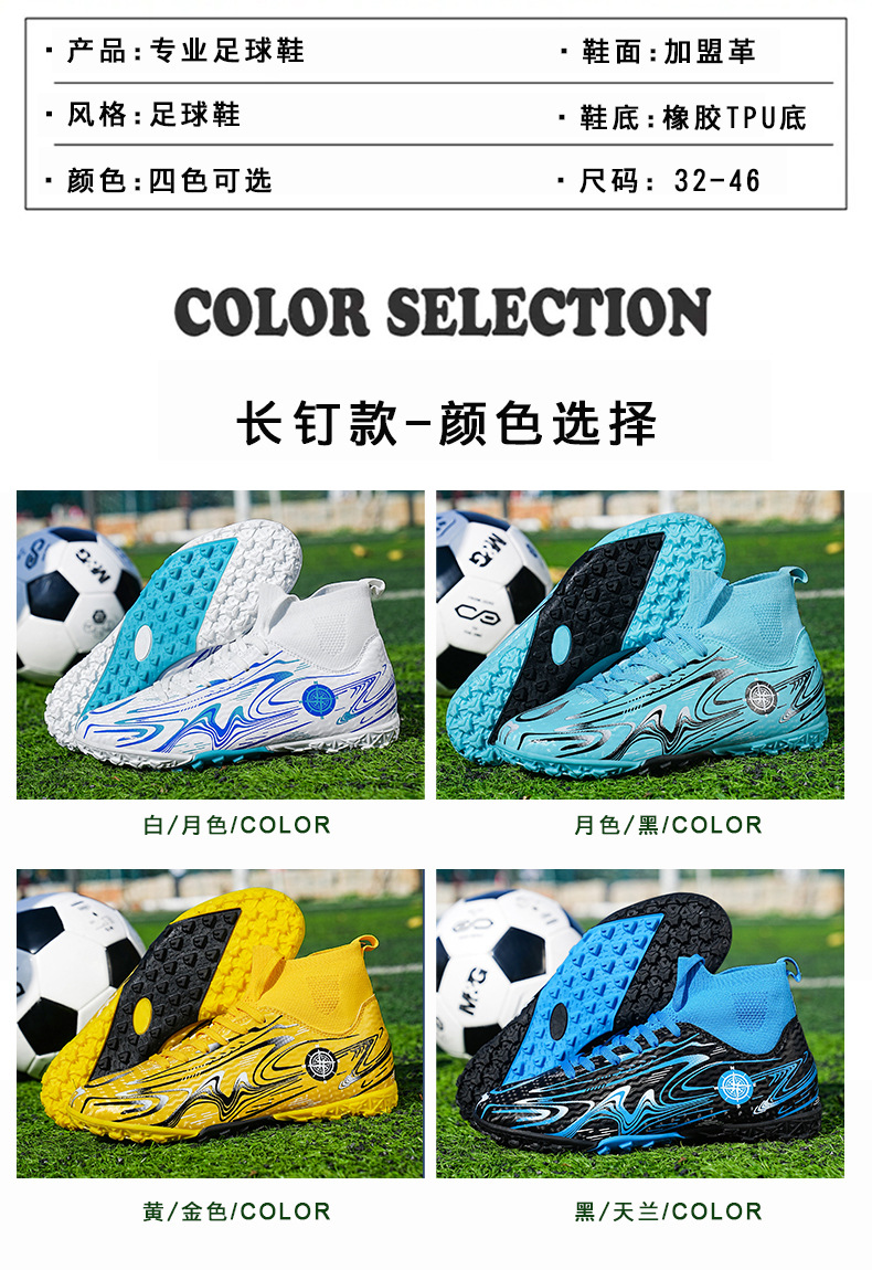 24 nuevos zapatos de fútbol de clavos largos transfronterizos zapatos deportivos de cuero para niños botas de hombre comercio exterior alto tamaño clavos largos