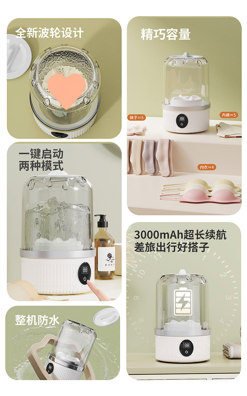 Nueva lavadora de ropa interior mini lavadora de ropa interior pequeña inalámbrica portátil lavadora de calcetines automática pequeña