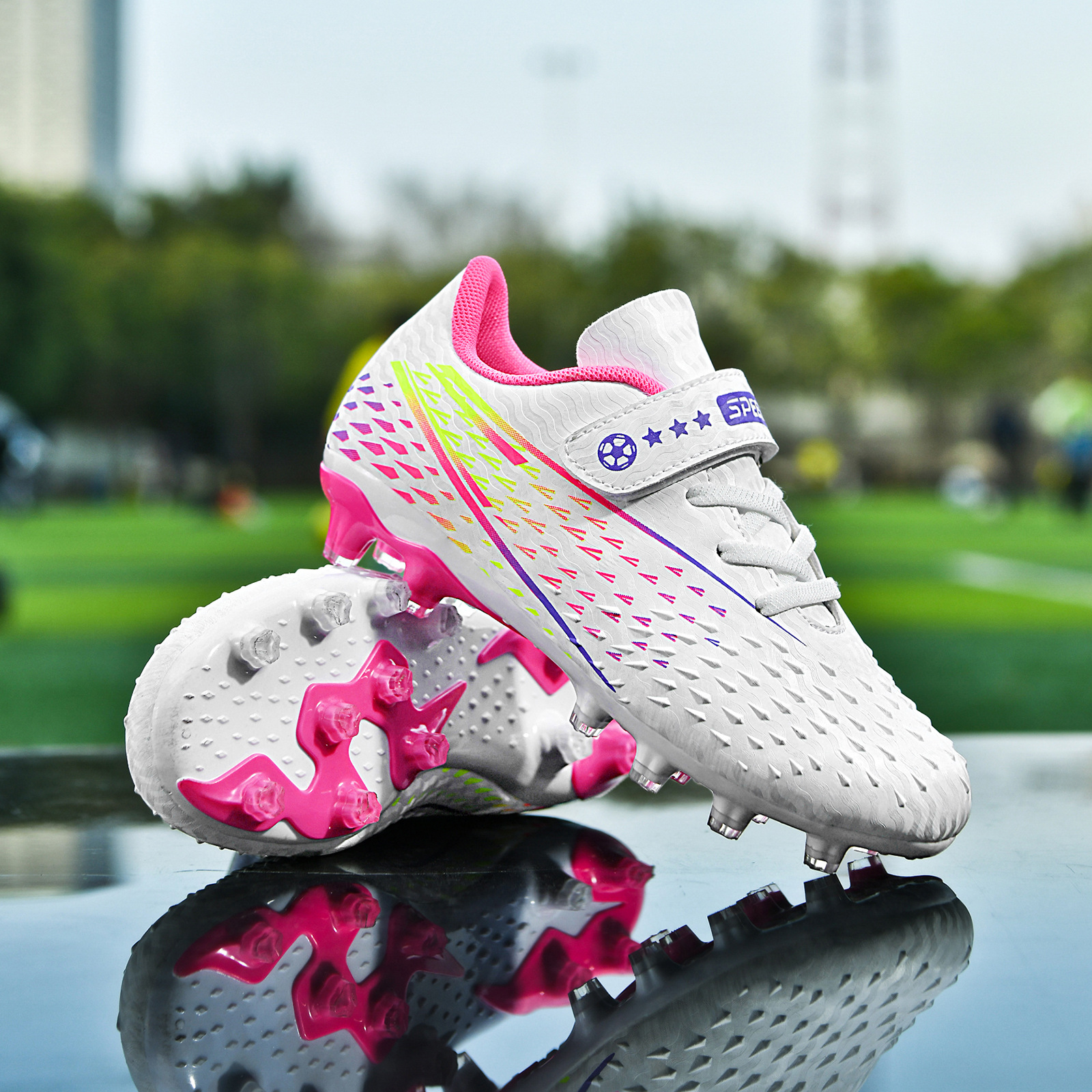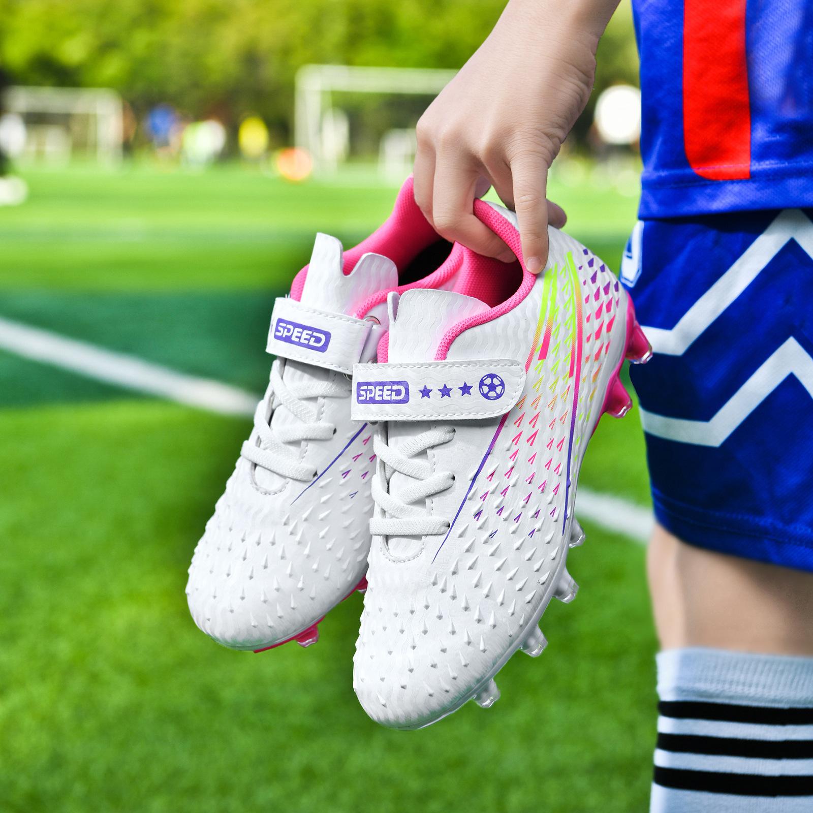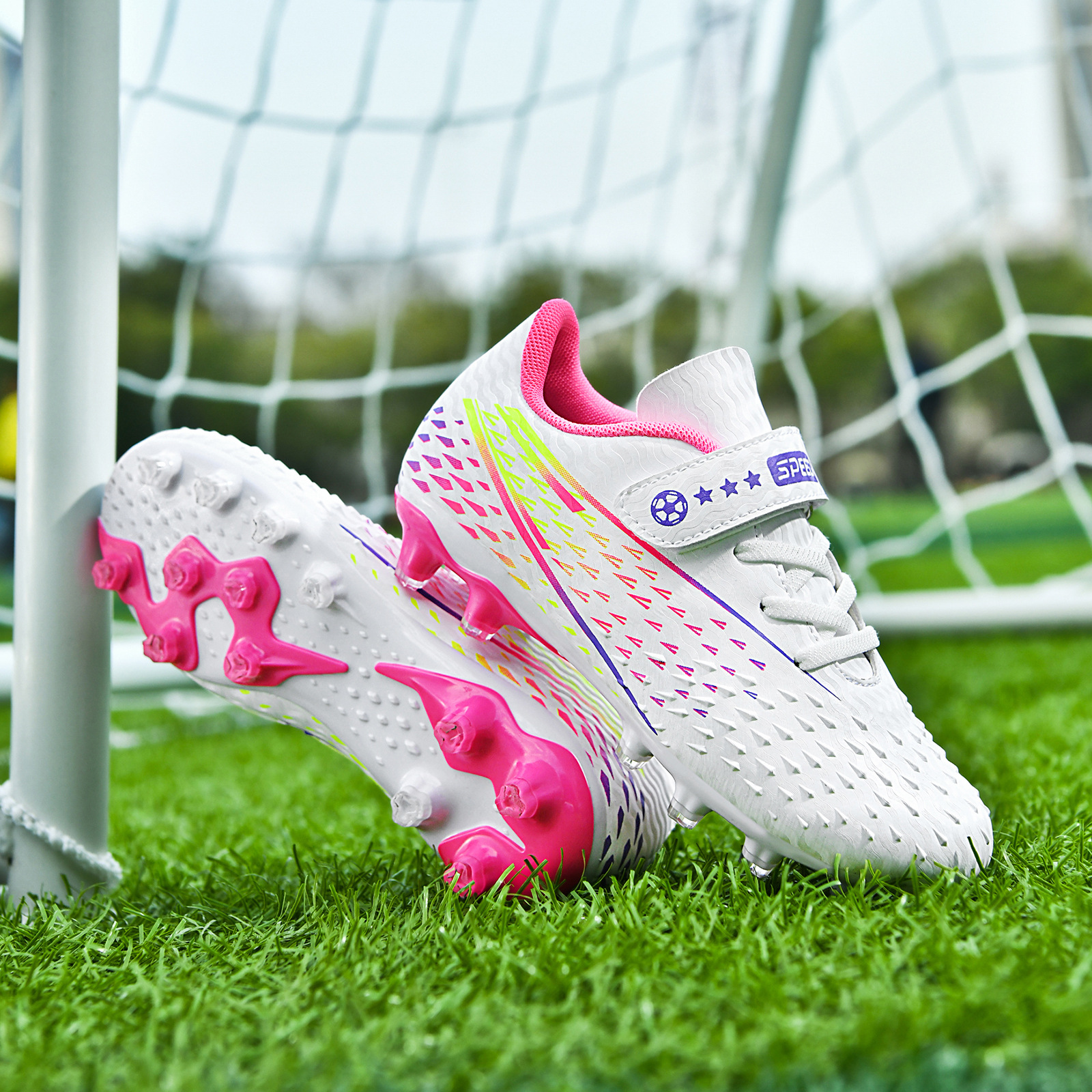 Falcon zapatos de fútbol con velcro para niños y niñas competencia uñas rotas estudiantes de primaria y secundaria sin cordones zapatos de entrenamiento profesional