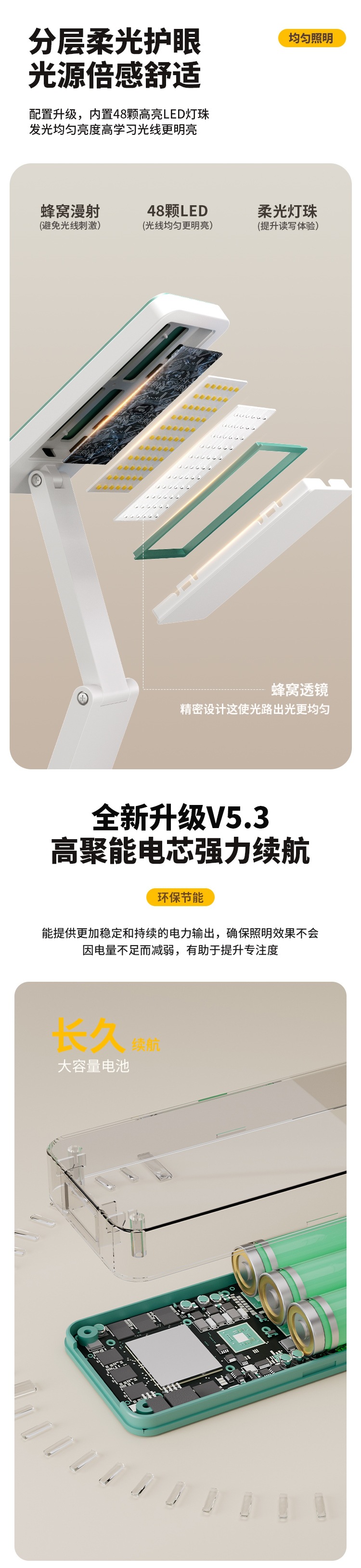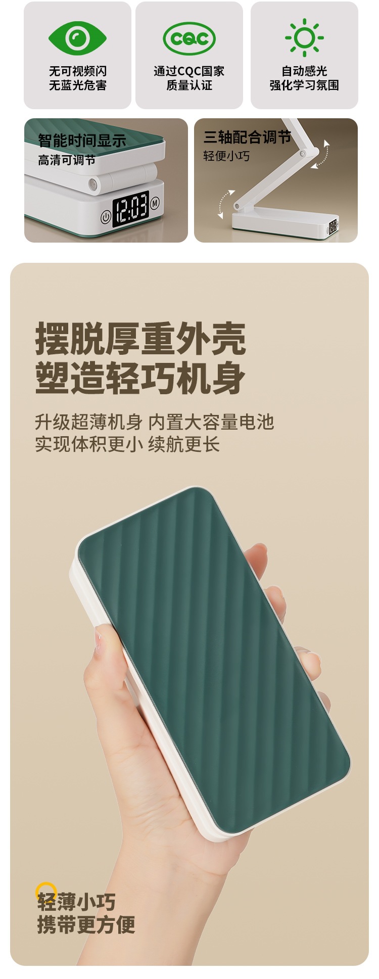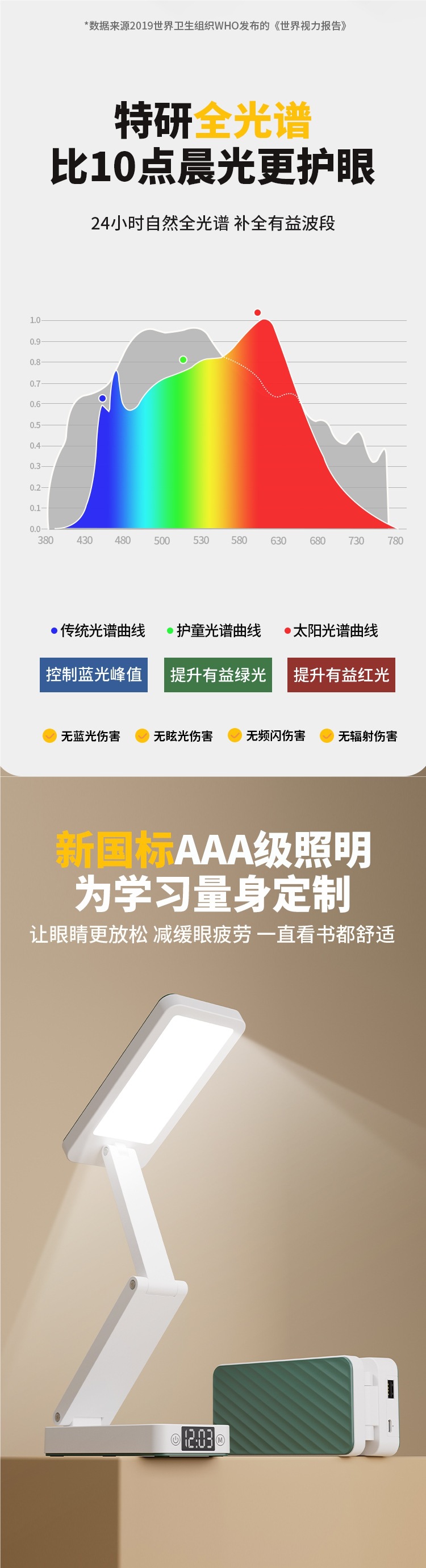 | Color | [Modelo de reloj de lujo] 10000mW + se puede cargar para equipos electrónicos + atenuable tono + pantalla de reloj + cable de carga, [Modelo de reloj actualizado] 8600mW + se puede cargar para equipos electrónicos + atenuable tono + pantalla de reloj + cable de carga, [Modelo de carga básica] 7600mW + se puede cargar para equipos electrónicos + atenuable tono + cable de carga, [Modelo de carga básica] 6600mW + se puede cargar para equipos electrónicos + atenuable tono + cable de carga,[Modelo de carga básica] 5600mW + se puede cargar para equipos electrónicos + atenuable y tono + cable de carga, [Modelo de aprendizaje] 4800mW + atenuable y tono + cable de carga [solo función de lámpara de escritorio], ↓ ↓ l batería verde - más larga duración - cable de carga gratuito ↓ ↓ |