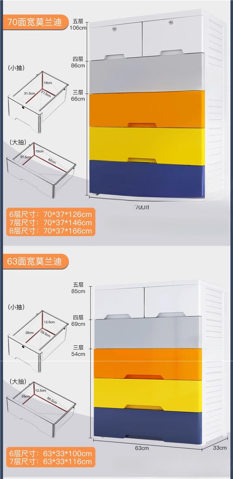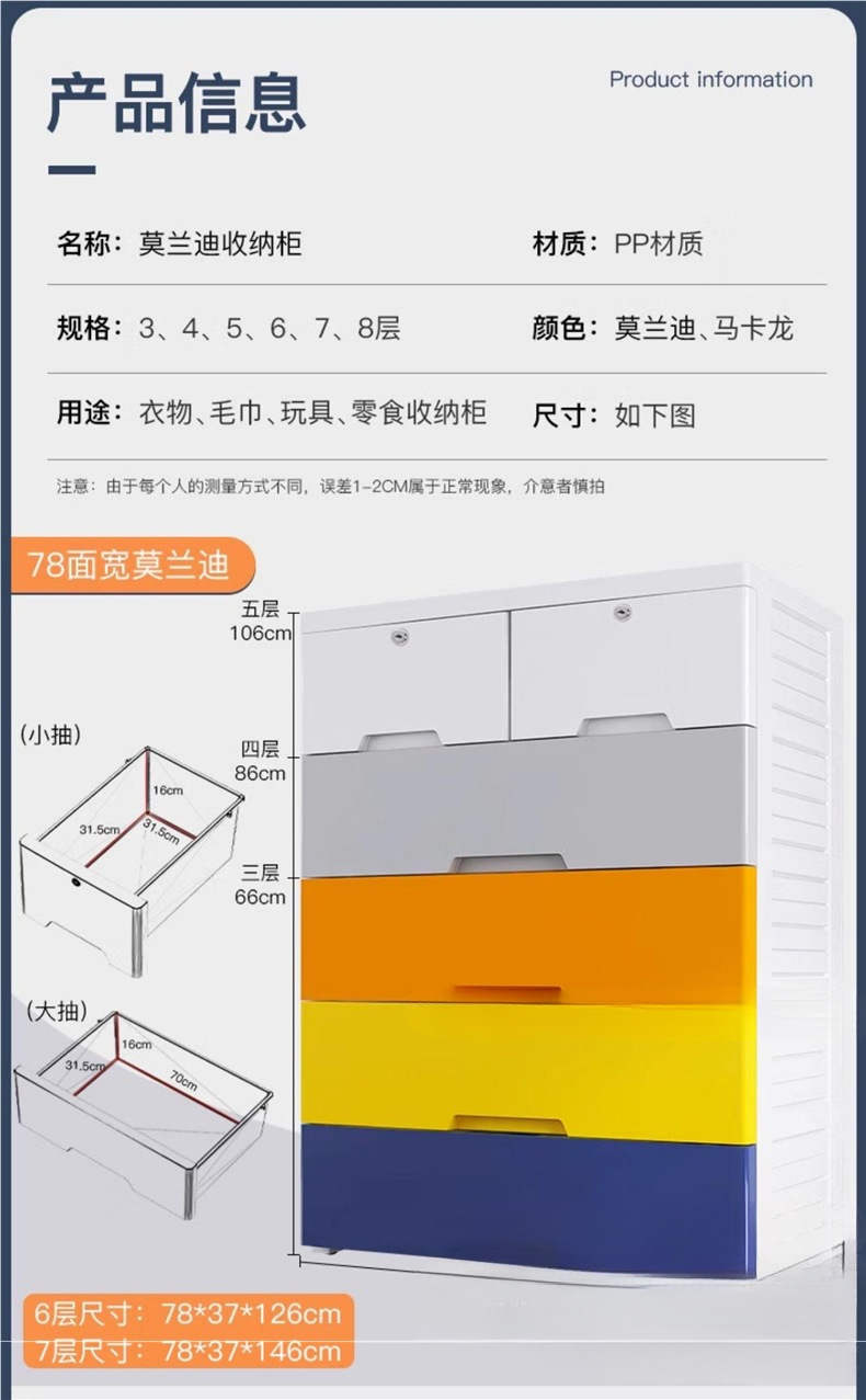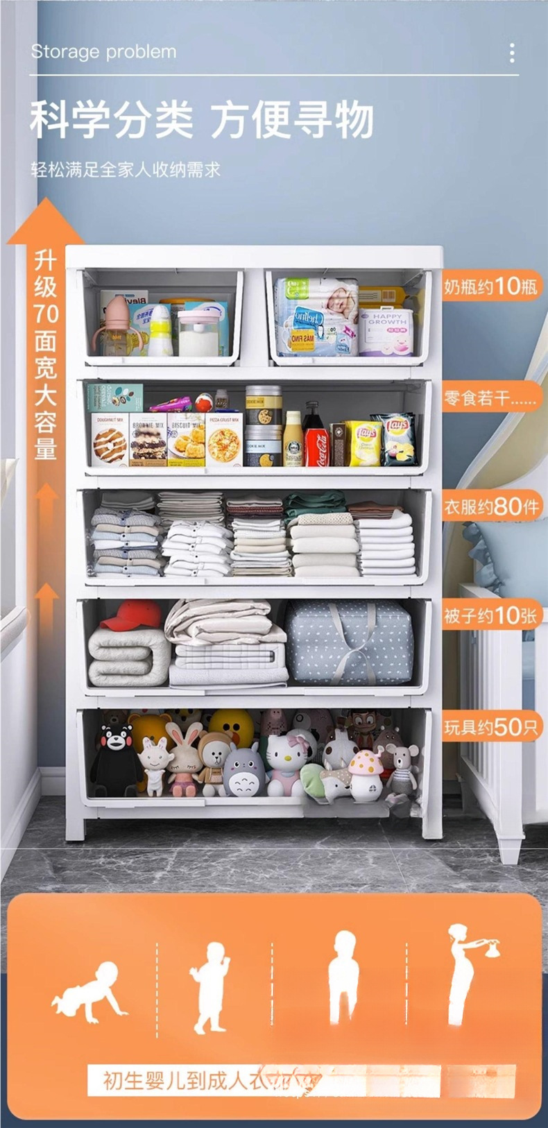 Gabinete de almacenamiento grueso de 70cm de ancho armario de plástico caja de acabado casero de cajón profundo tipo armario infantil