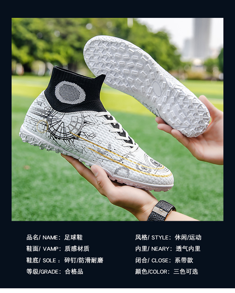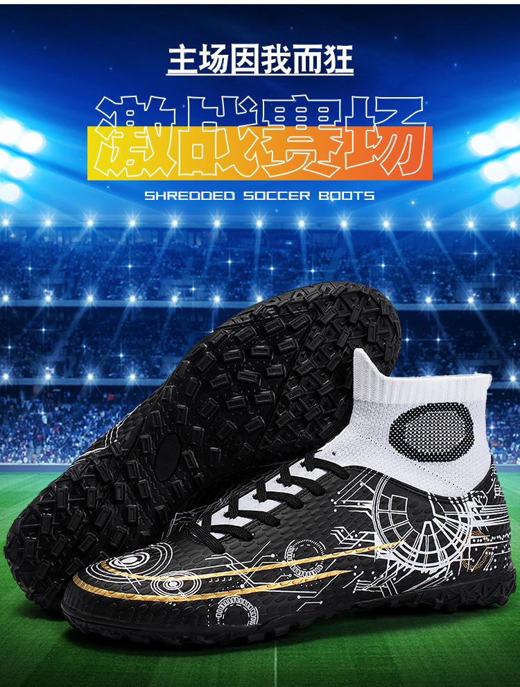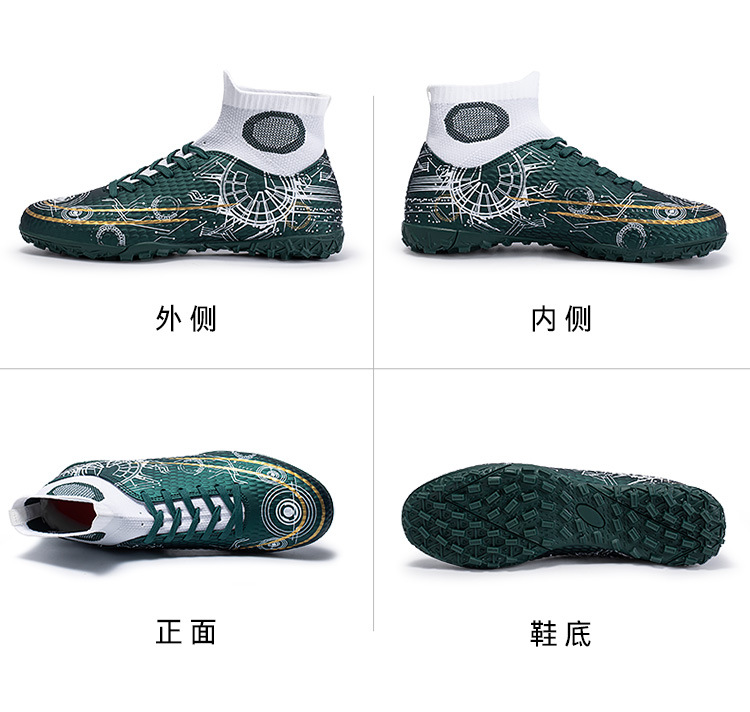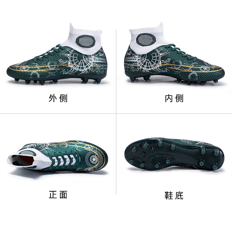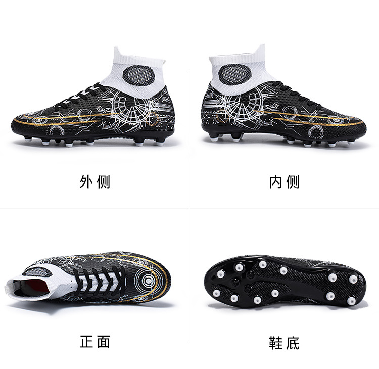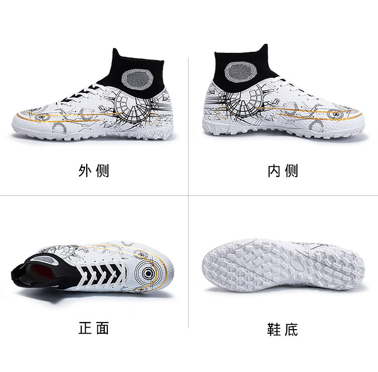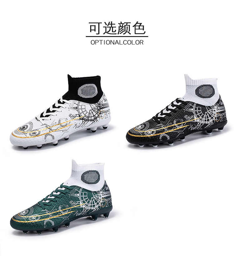 2023 transfronteriza nuevos zapatos de fútbol FGTF de los hombres transpirable de alta superior pico frito roto zapatos de fútbol zapatos de entrenamiento de hierba