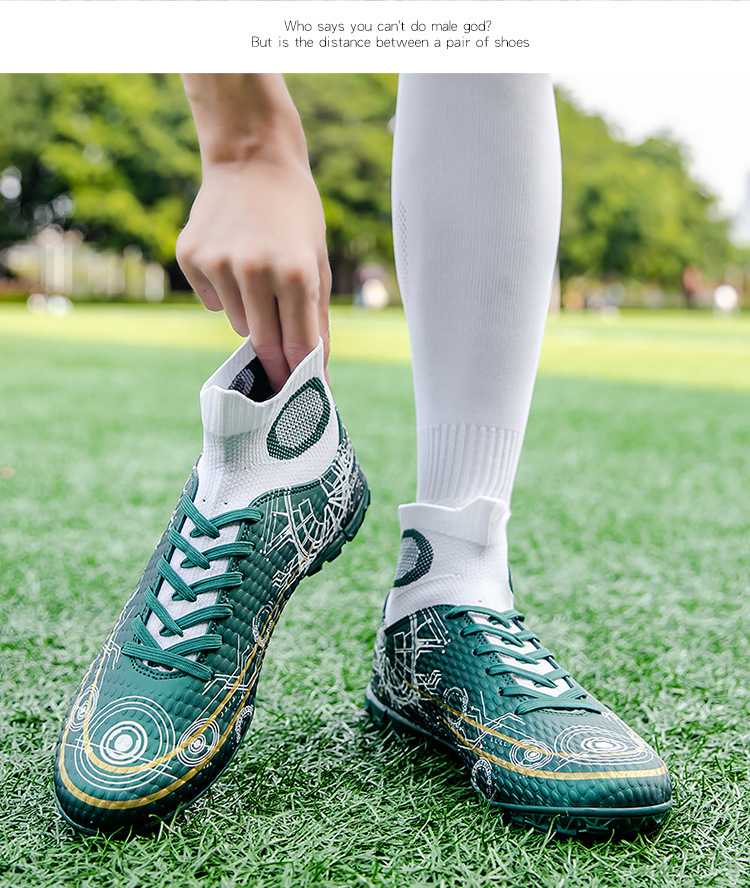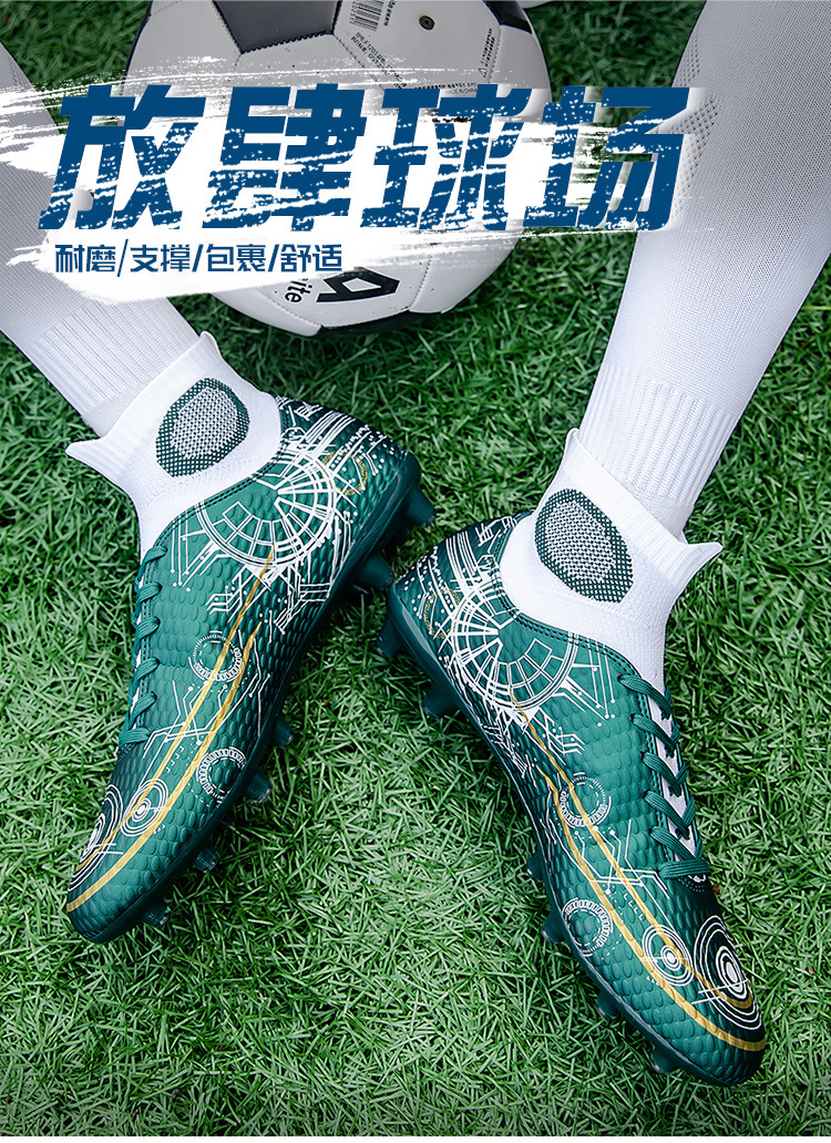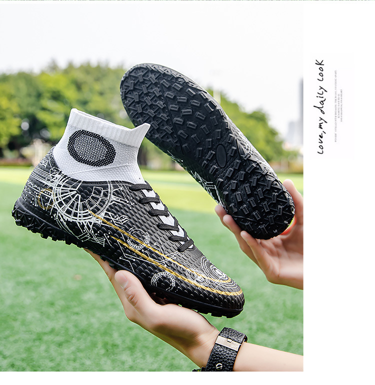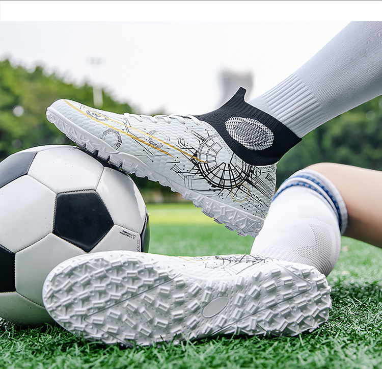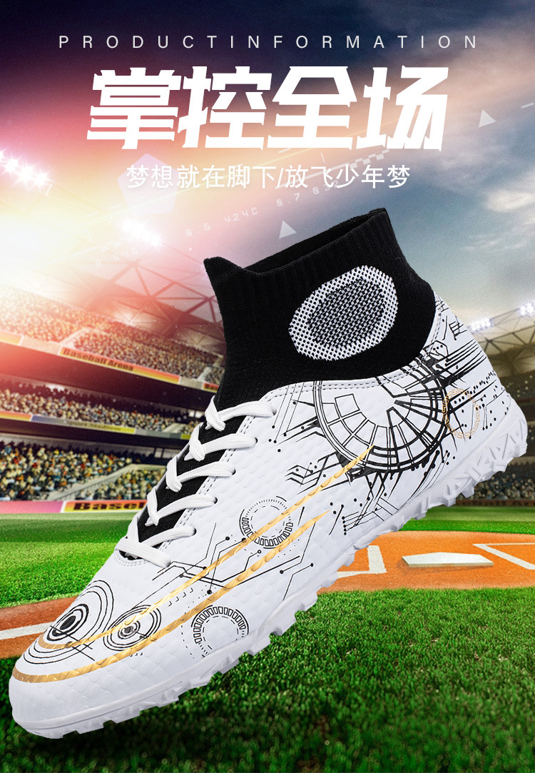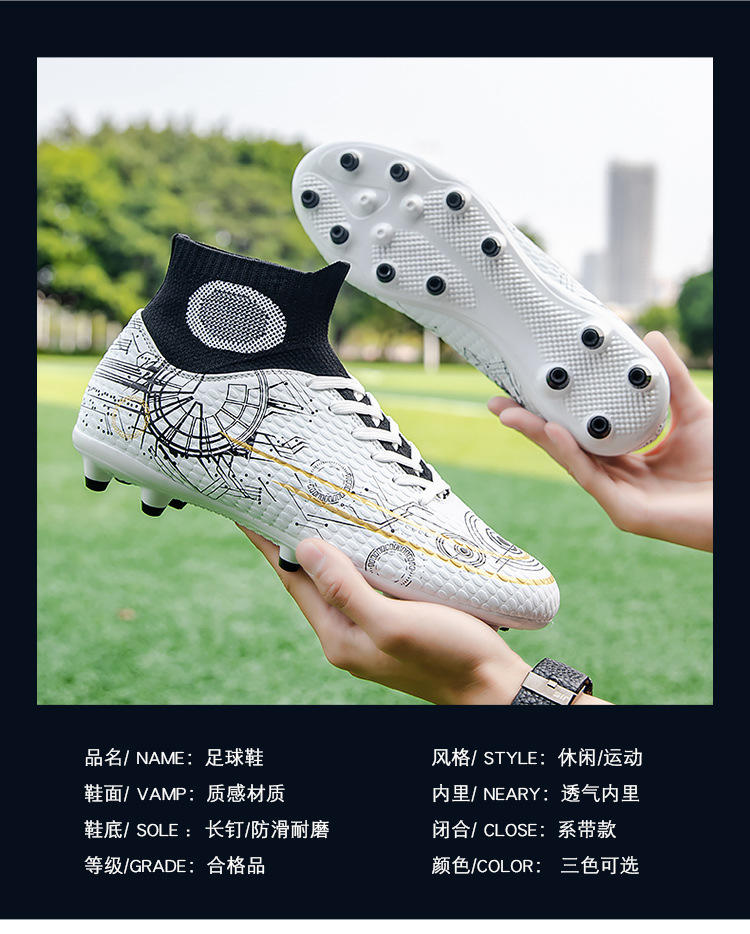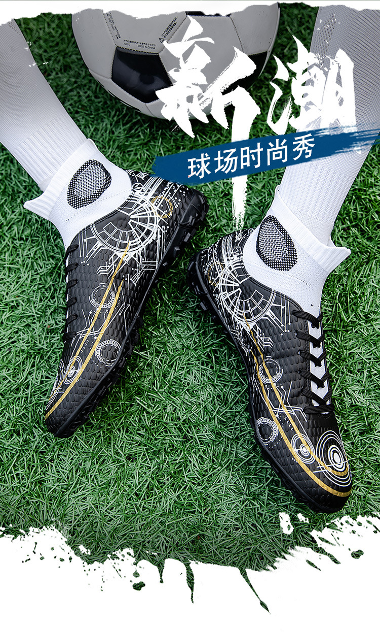 2023 transfronteriza nuevos zapatos de fútbol FGTF de los hombres transpirable de alta superior pico frito roto zapatos de fútbol zapatos de entrenamiento de hierba