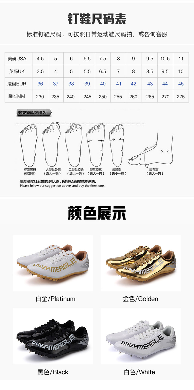 Fábrica directa transfronteriza zapatos de pista para hombres y mujeres zapatos de entrenamiento integral de pie salto largo estudiante Spike zapatos Sprint zapatos de uñas
