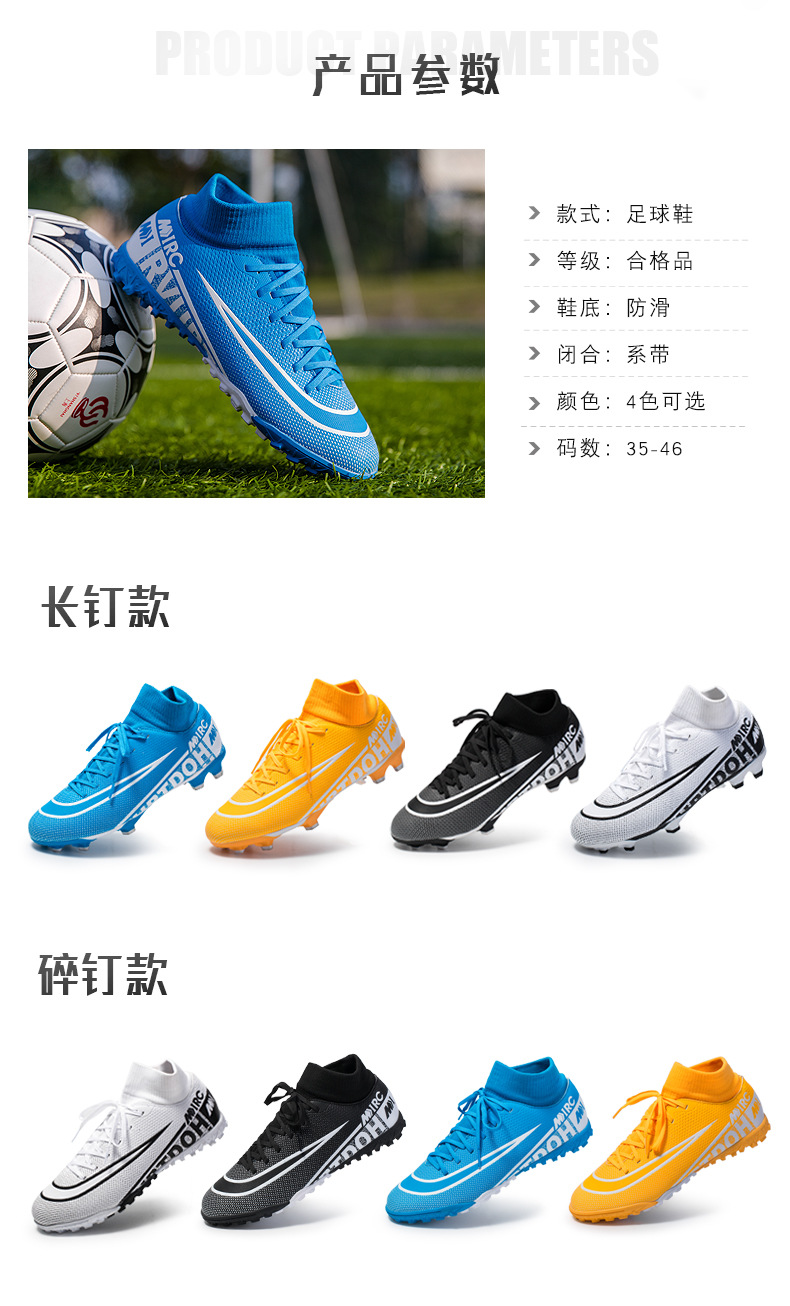 Nuevos zapatos de fútbol de talla grande para hombre de hierba artificial de caña alta de uñas rotas largas zapatos de Pato Mandarín jóvenes zapatos de entrenamiento de competencia estudiantil
