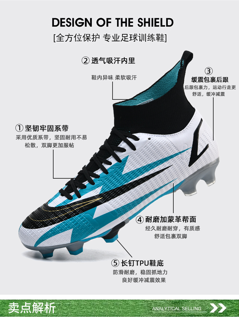 Binbinniao más tamaño de los nuevos hombres de fútbol transpirable zapatos de fútbol de hierba de Interior de uñas largas y cortas zapatos de fútbol