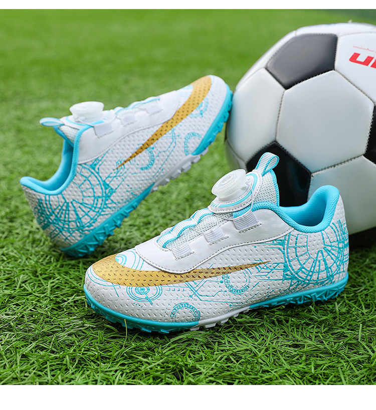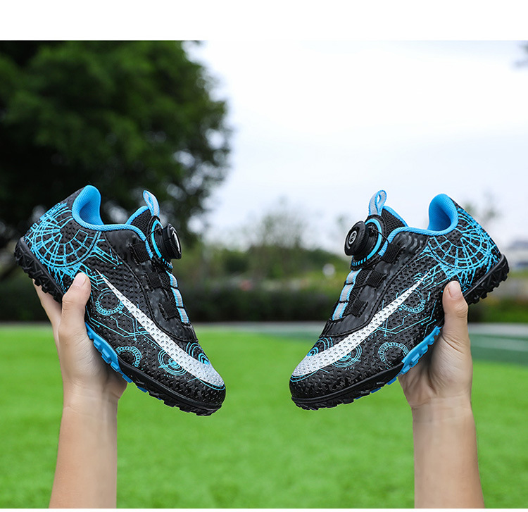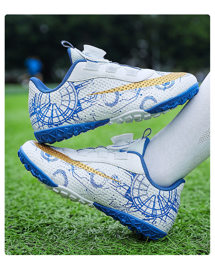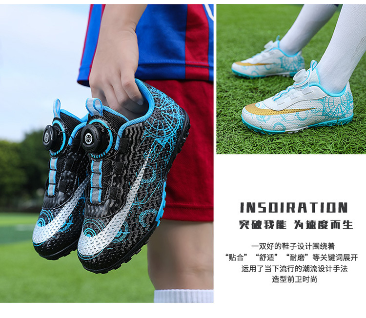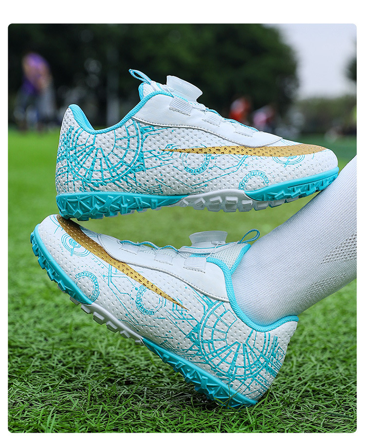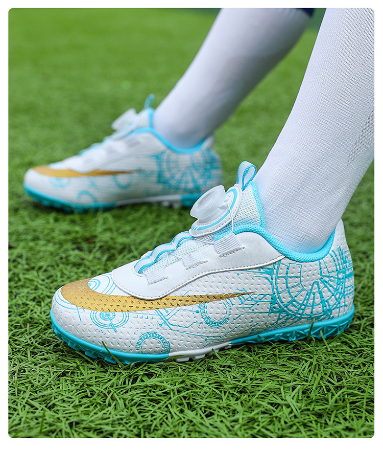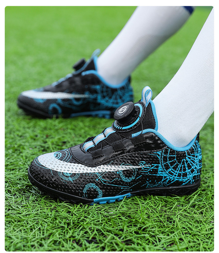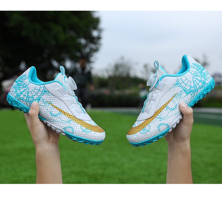 2023 hebilla giratoria transpirable para niños zapatos de fútbol de uñas rotas zapatos de entrenamiento de hierba de interior Pato Mandarín zapatillas de fútbol resistentes al desgaste