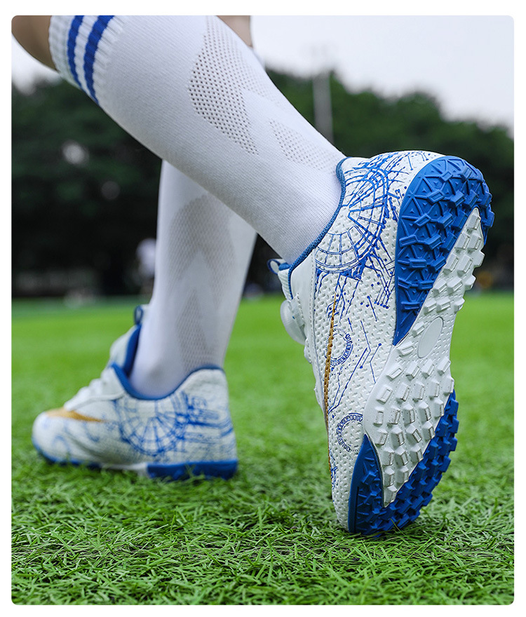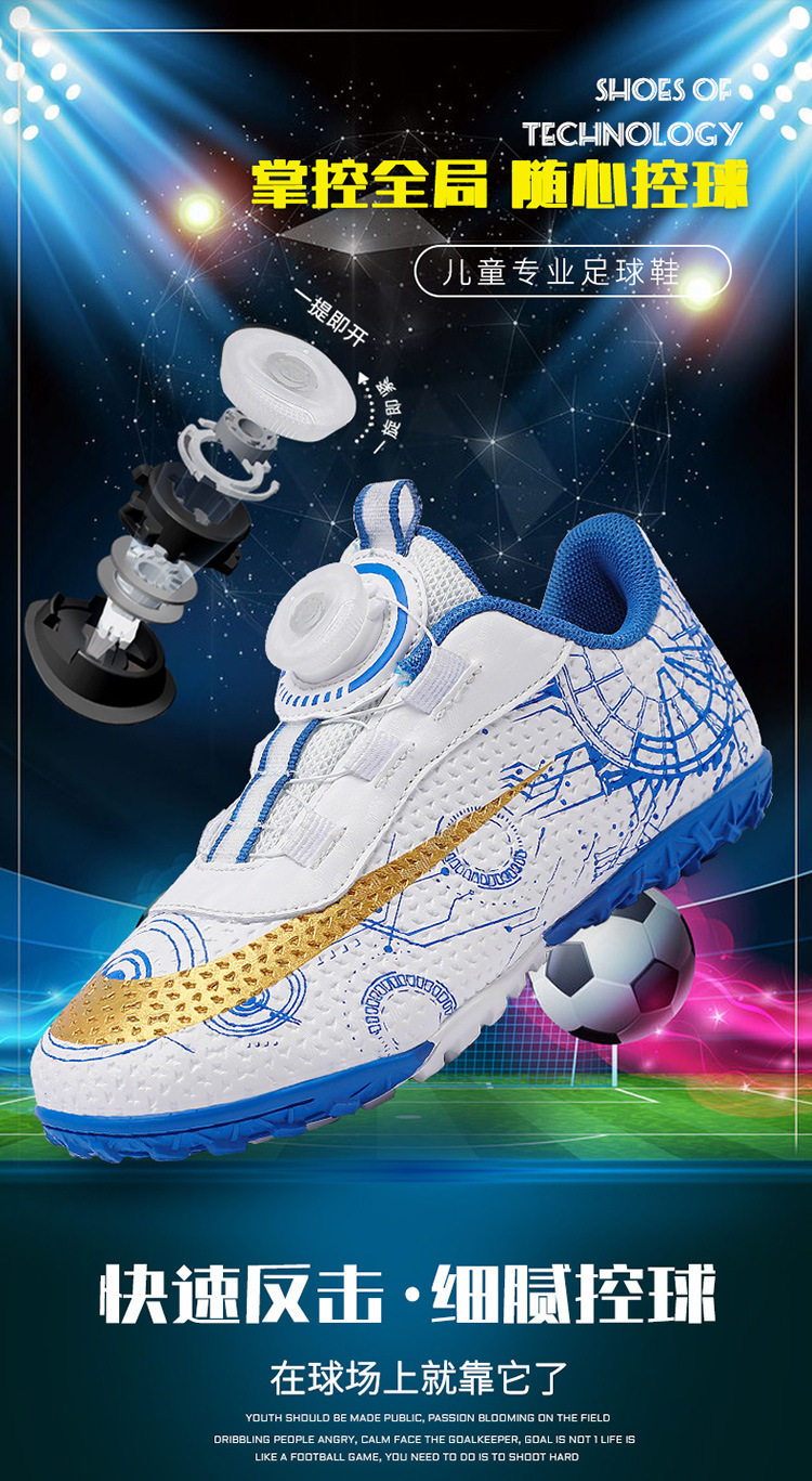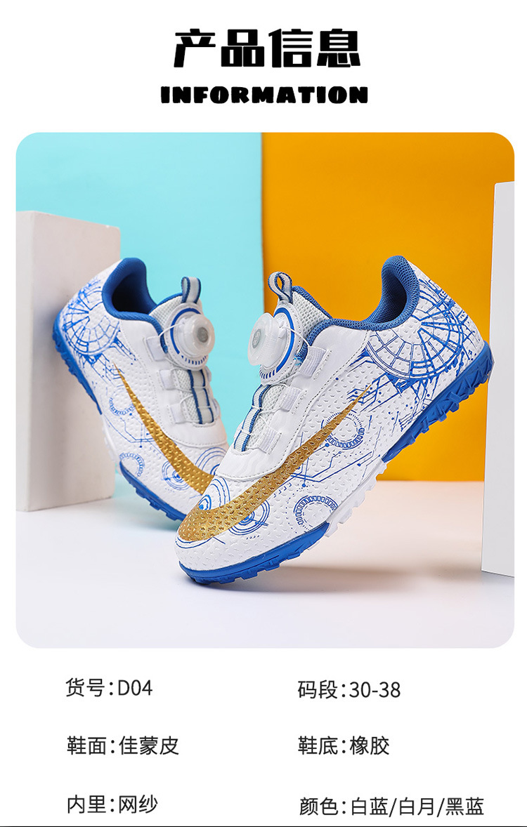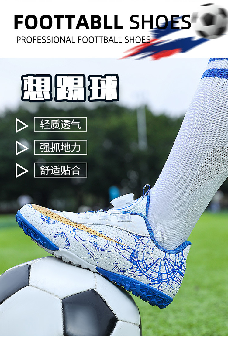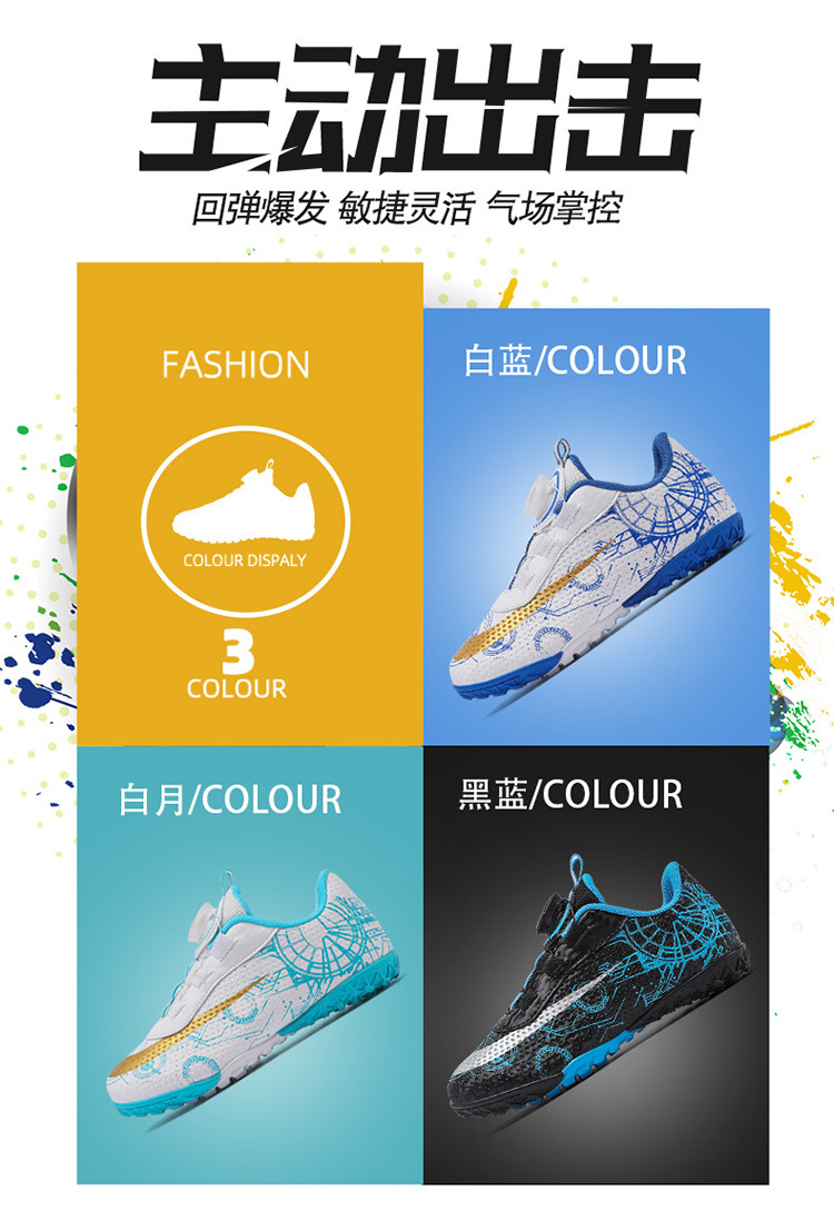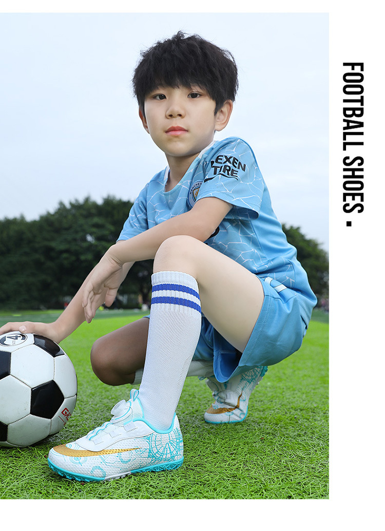 2023 hebilla giratoria transpirable para niños zapatos de fútbol de uñas rotas zapatos de entrenamiento de hierba de interior Pato Mandarín zapatillas de fútbol resistentes al desgaste