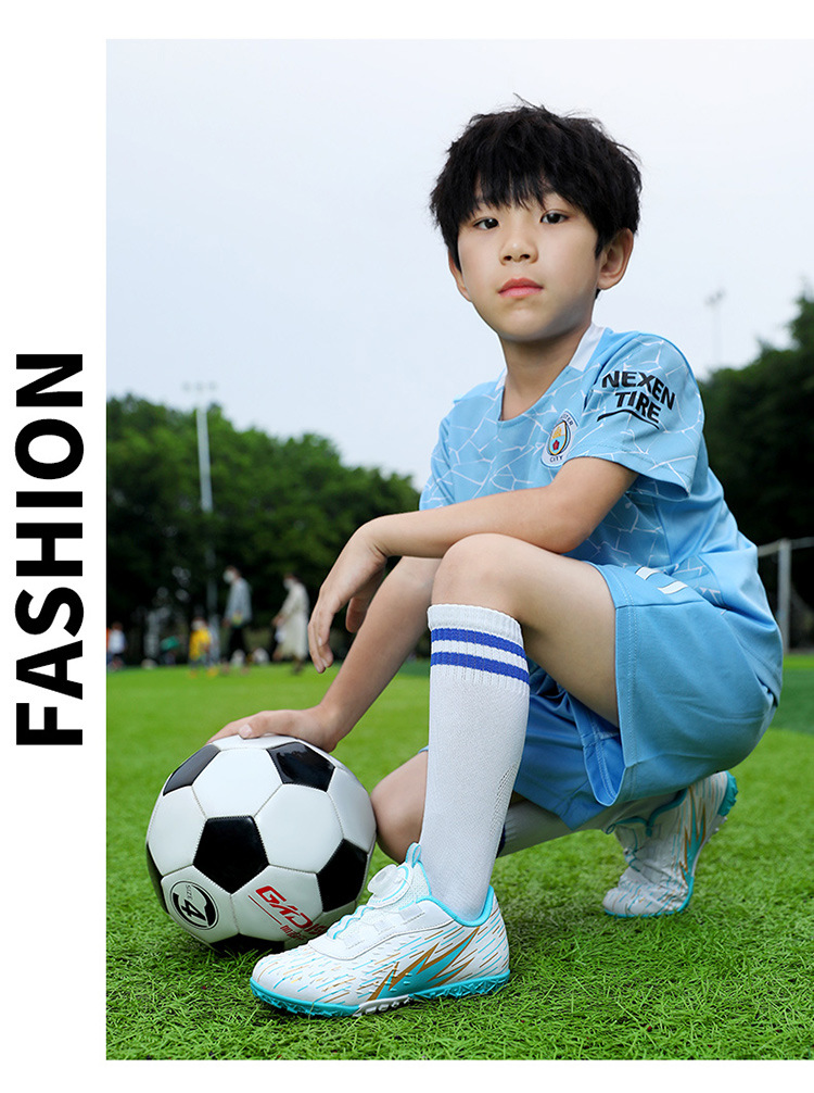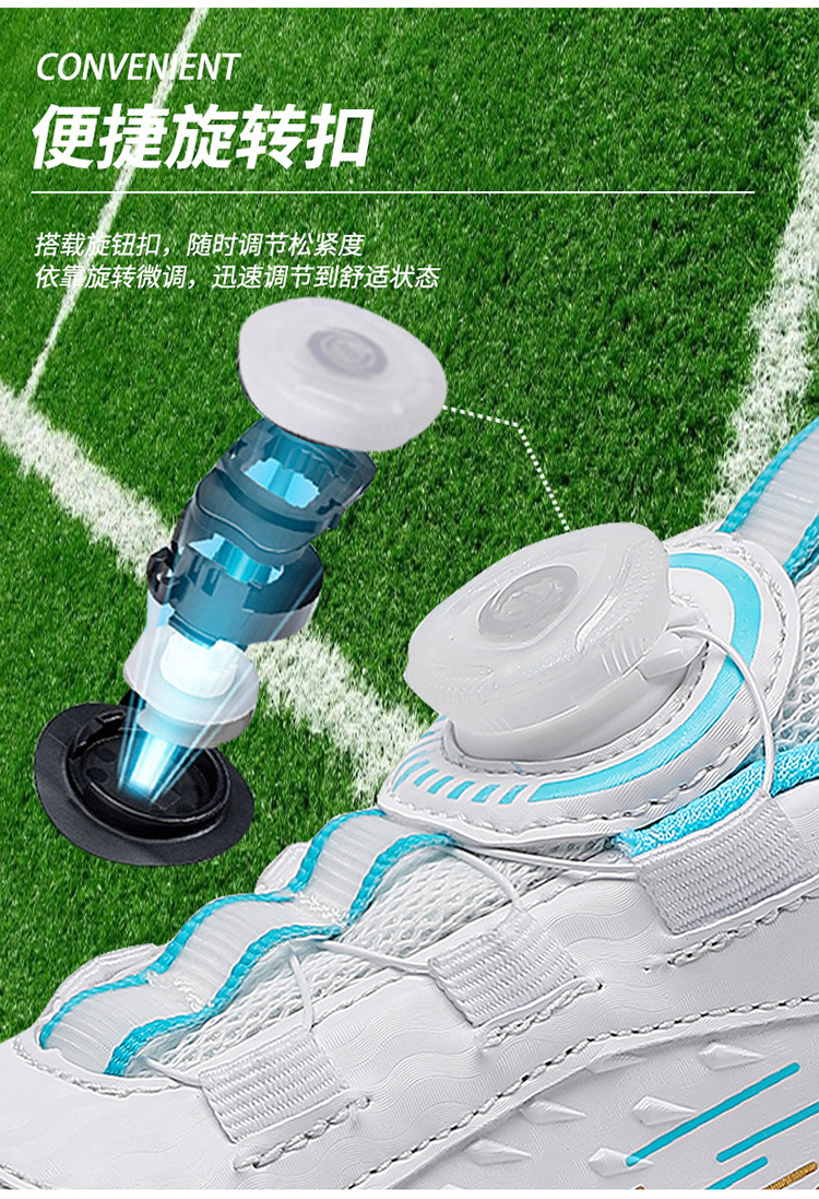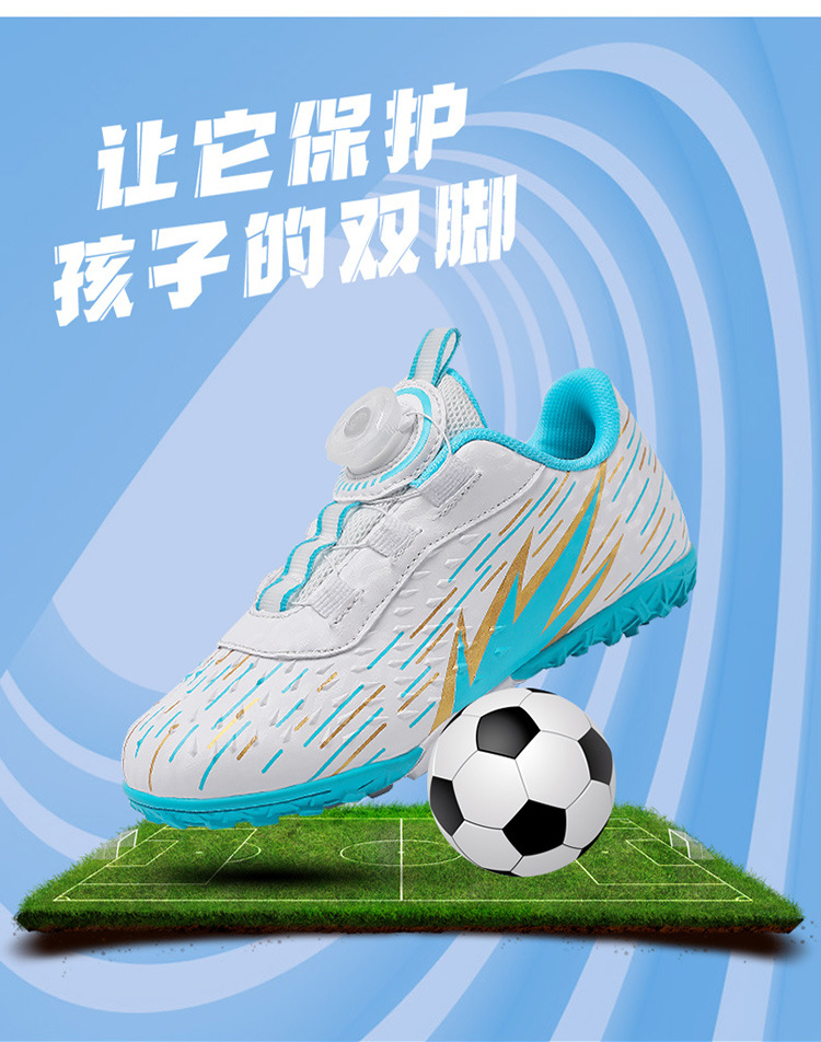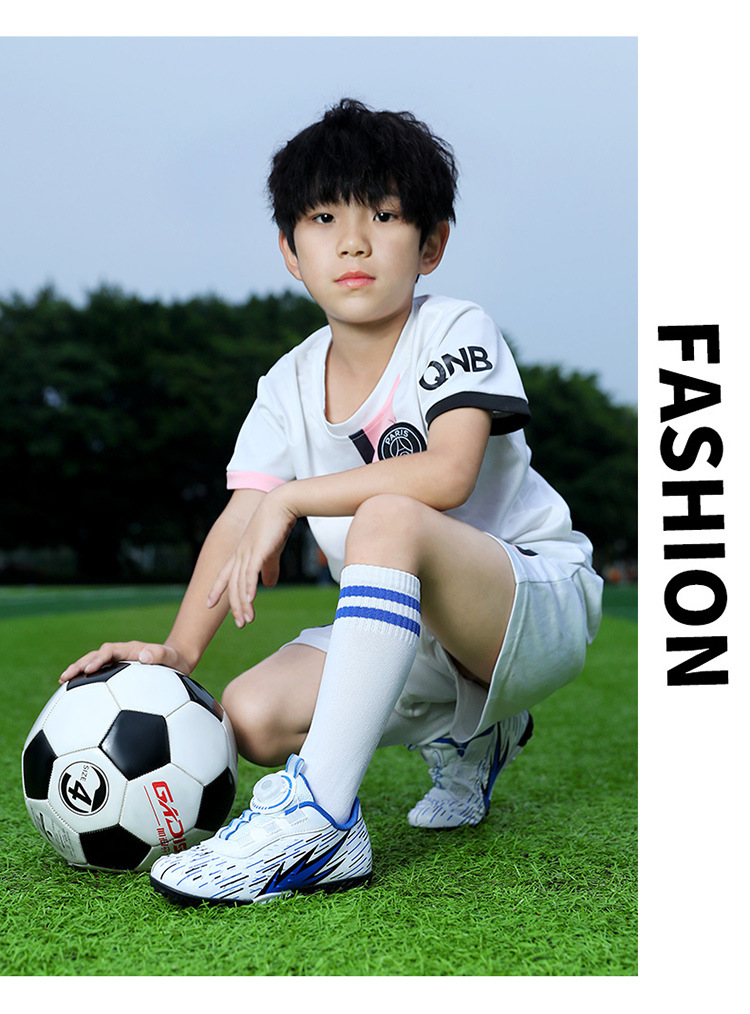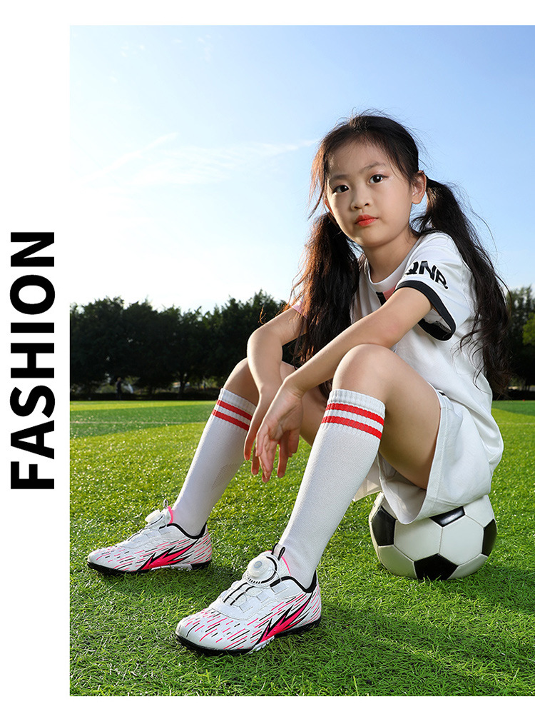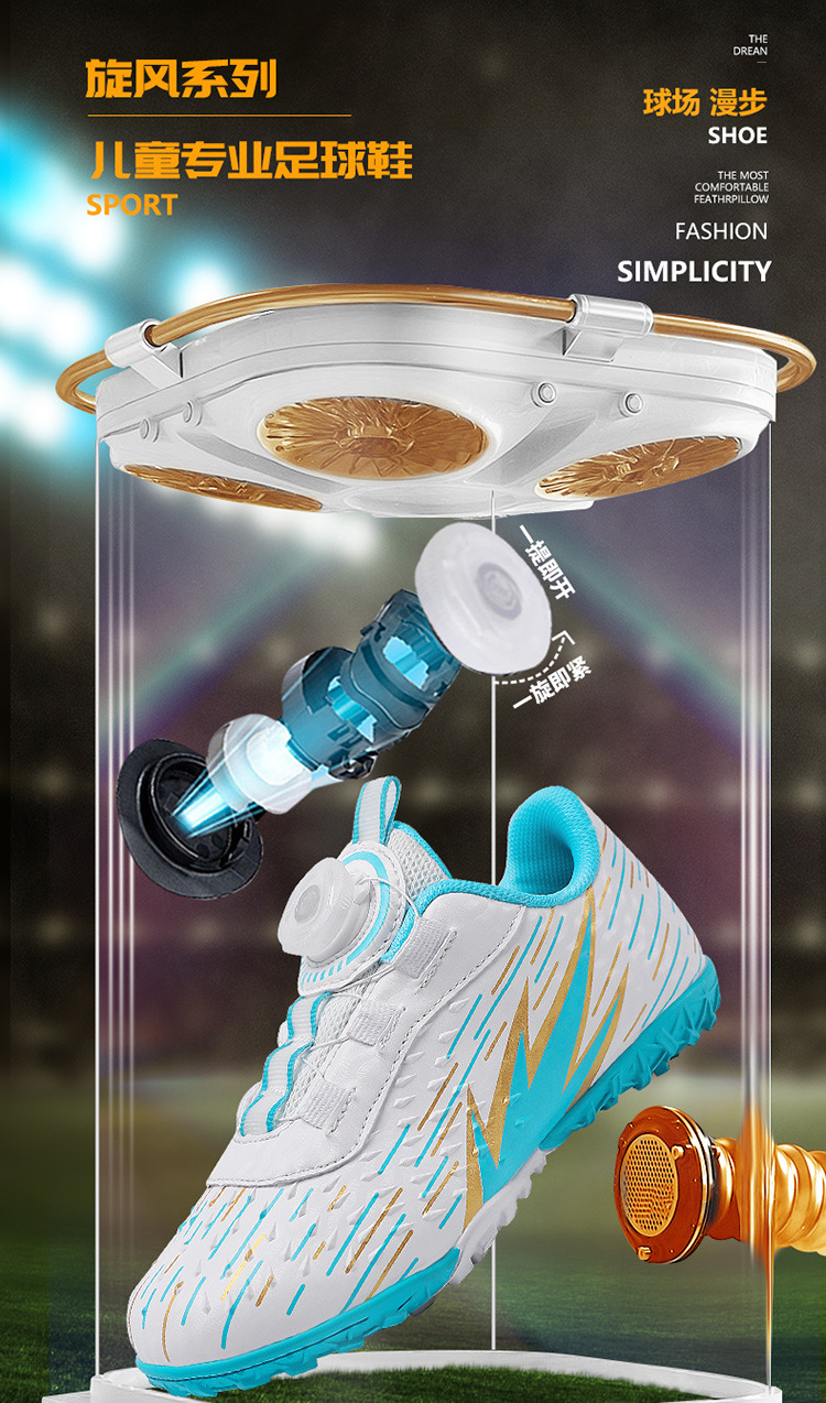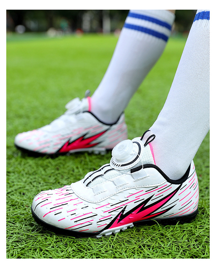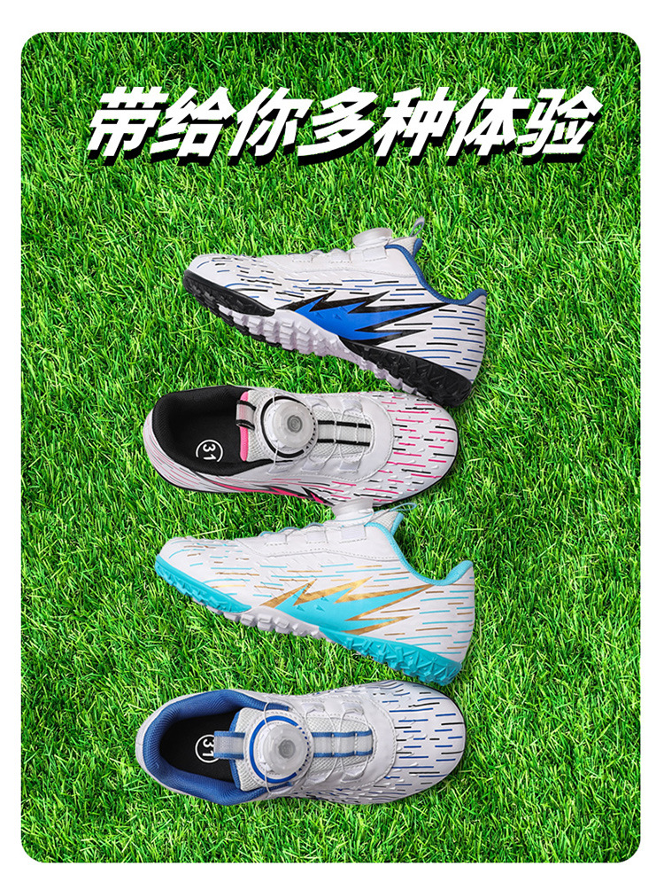 Binbinniao transfronterizo hebilla giratoria de los niños respirables de uñas rotas zapatos de fútbol zapatos de entrenamiento de hierba de interior zapatilla de deporte de fútbol