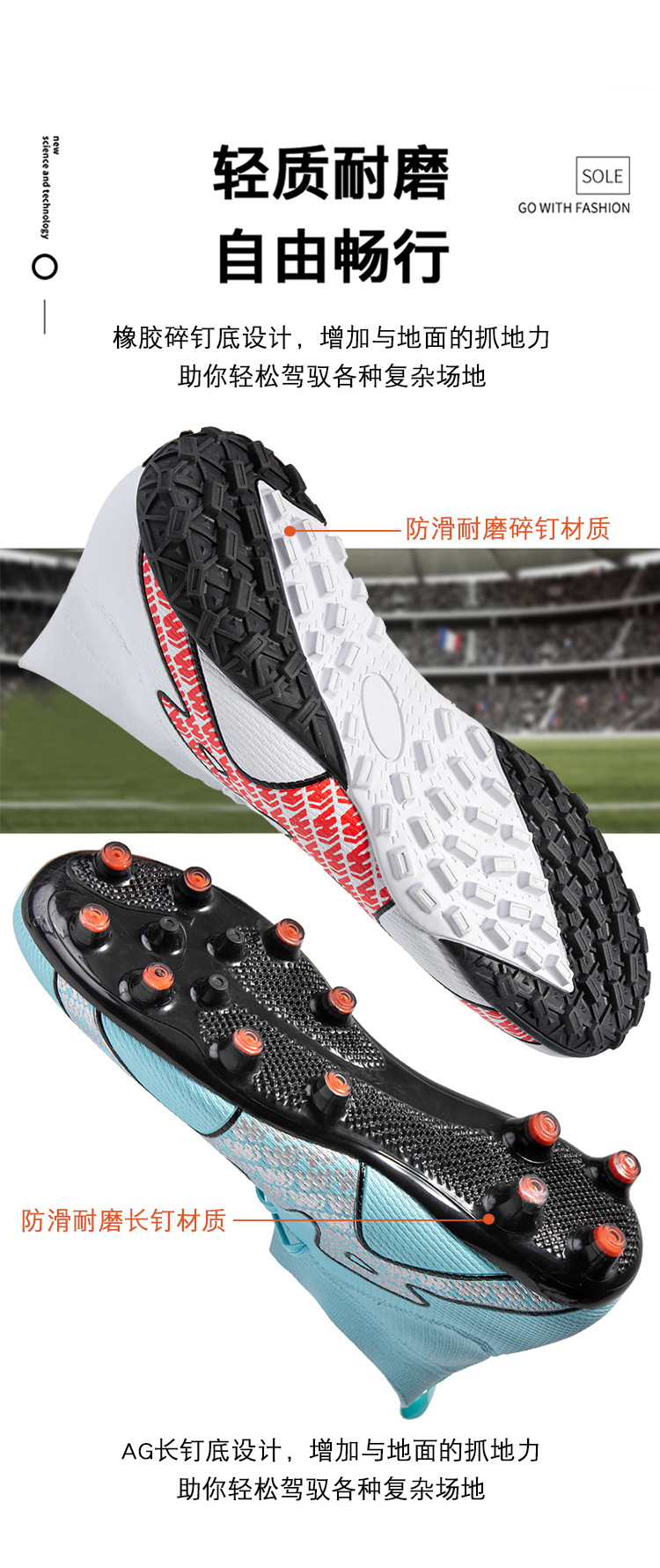 Los fabricantes transfronterizos de los hombres y de las mujeres respirables cómodos deportes de ocio FG alto-top de uñas largas uñas rotas zapatos de fútbol competencia de hierba más tamaño