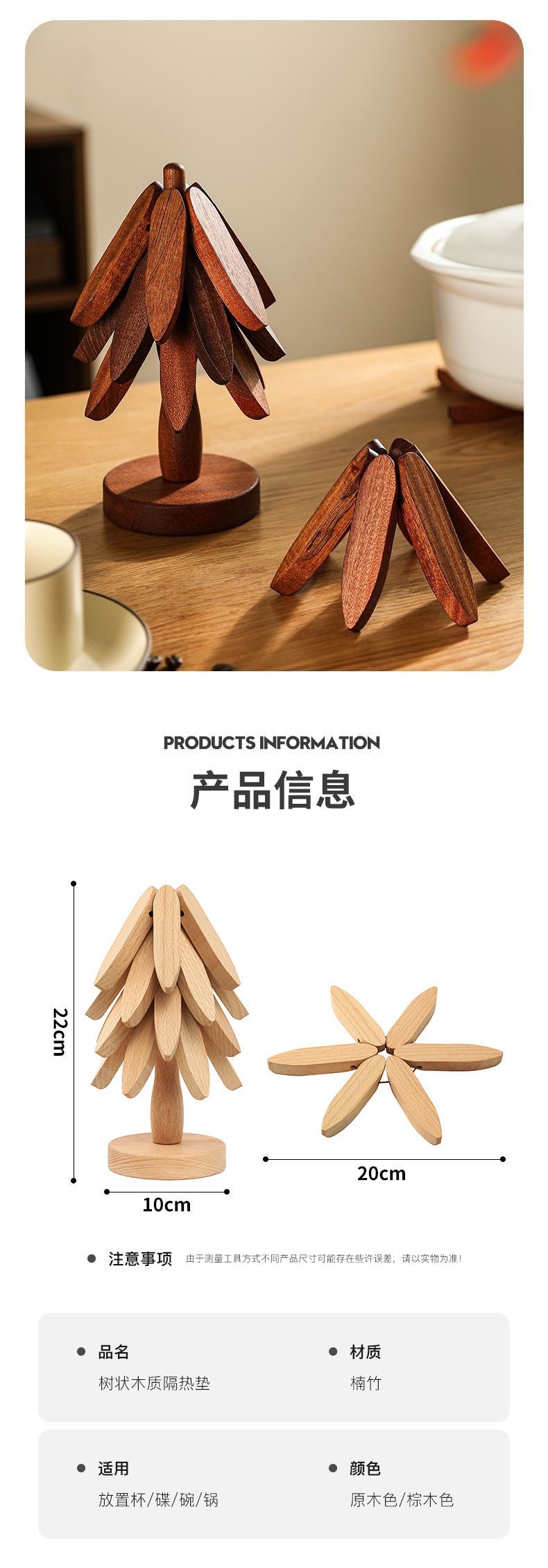 almohadilla de aislamiento térmico sólido almohadilla de comedor anti-corrosión un árbol doméstico resistente a altas temperaturas almohadilla de mesa almohadilla de taza almohadilla de mortero almohadilla de bambú