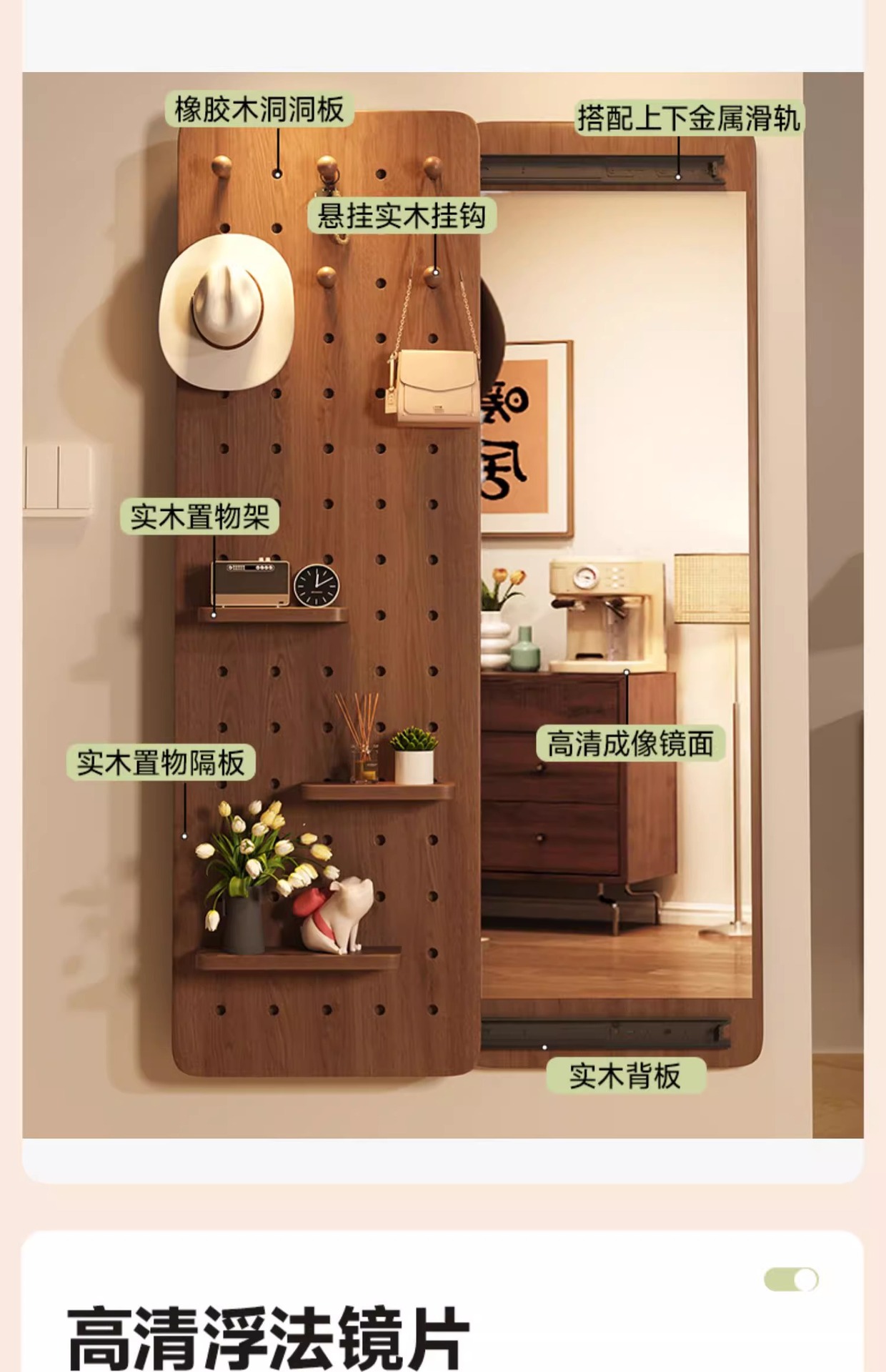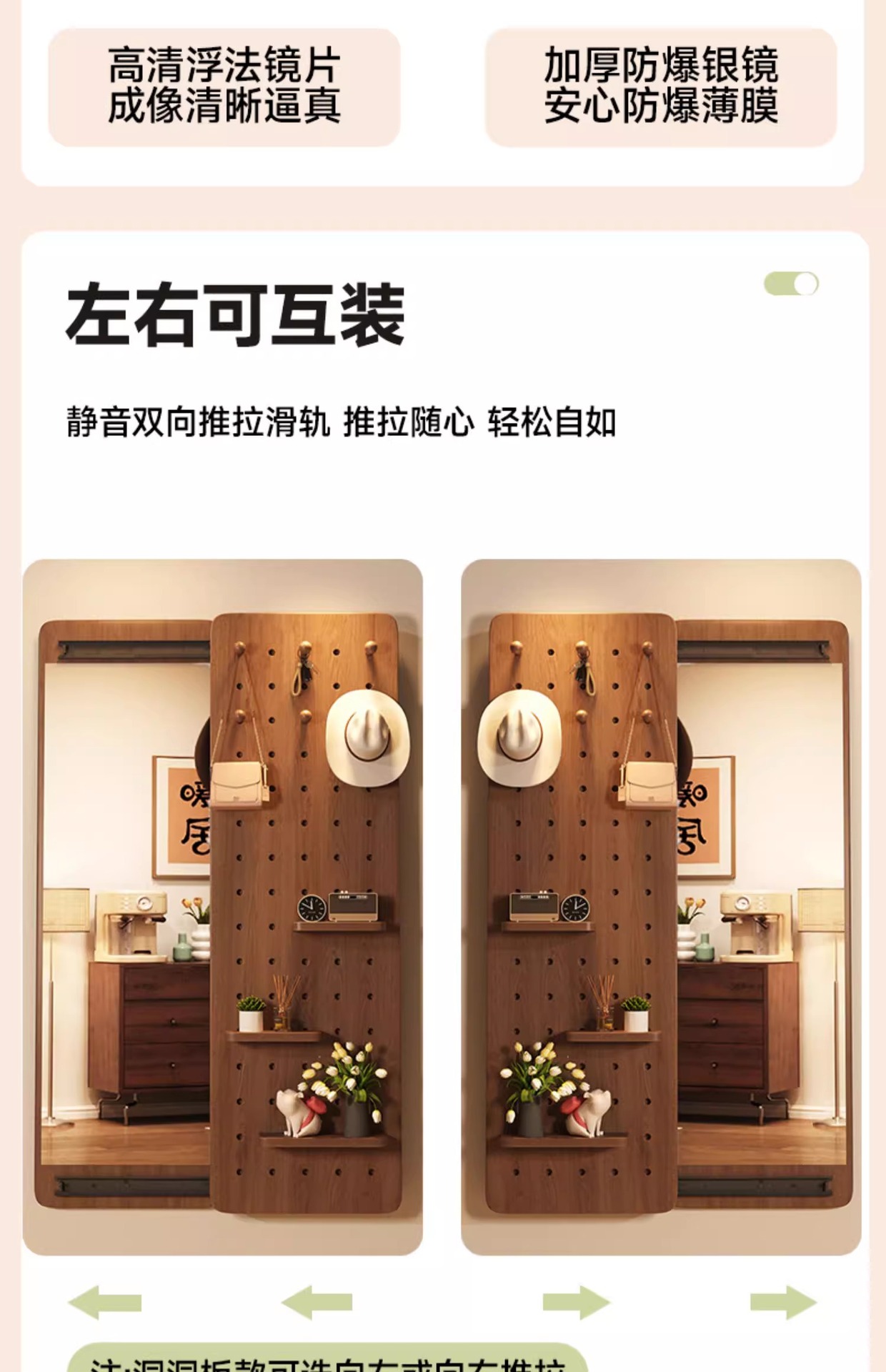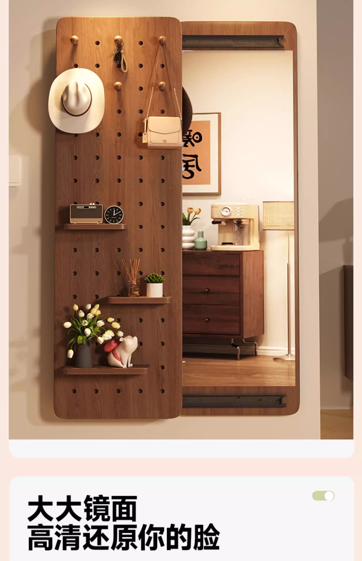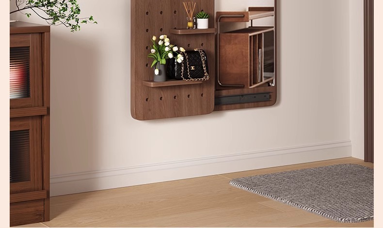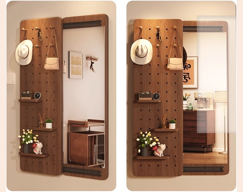 Espejo de vestir de madera sólida, espejo de vestir de todo el cuerpo de empuje invisible, espejo de vestir de vestir