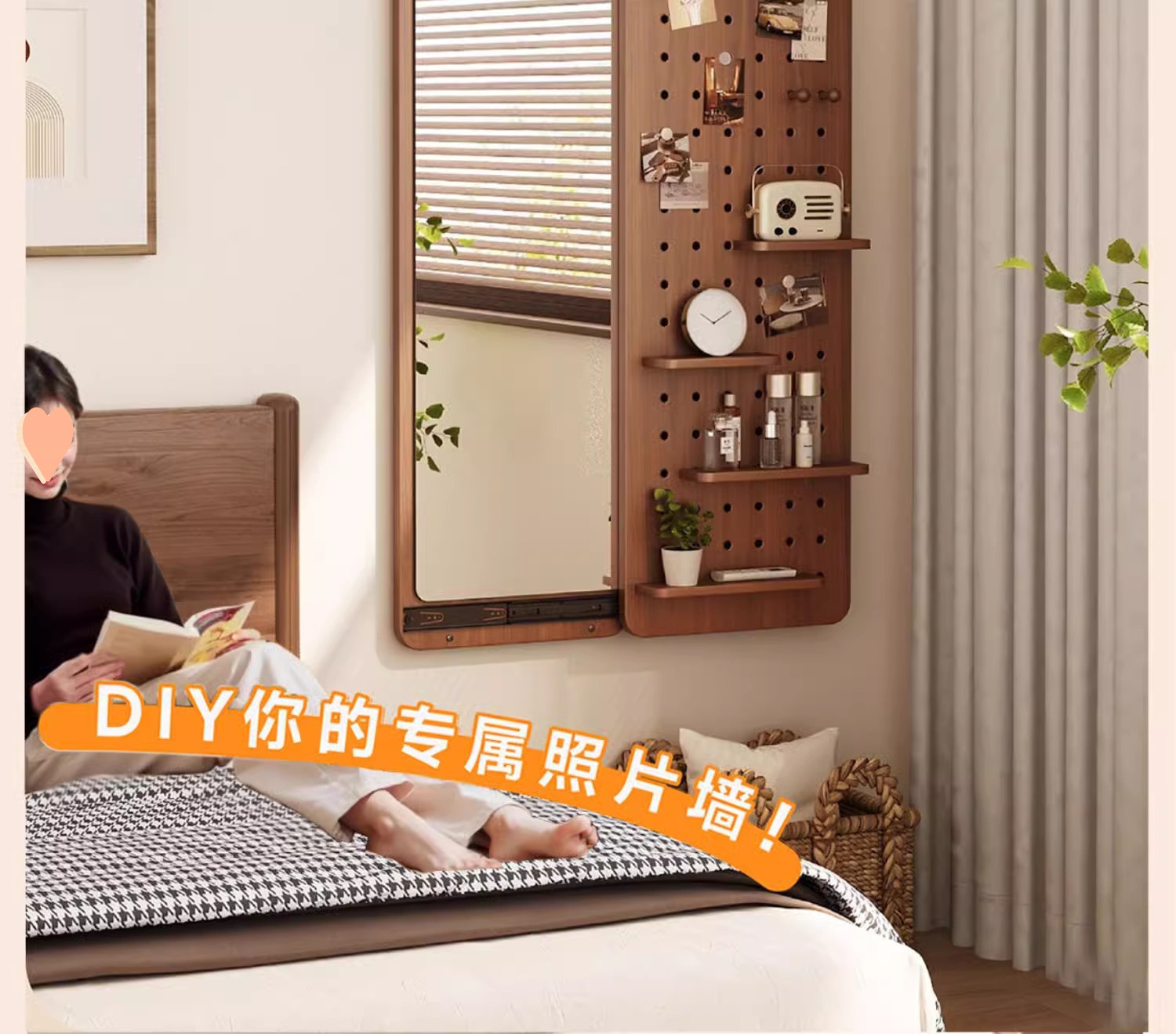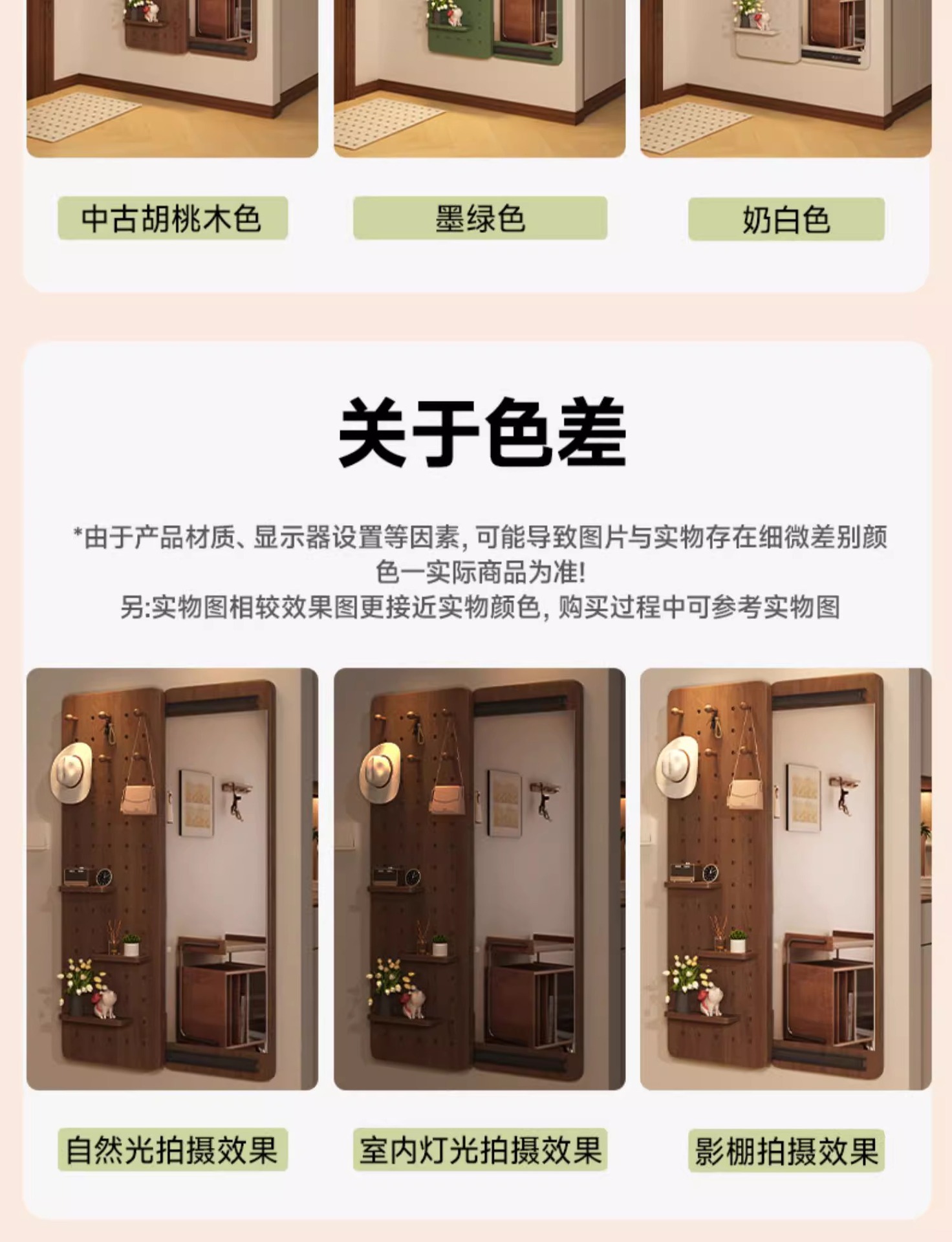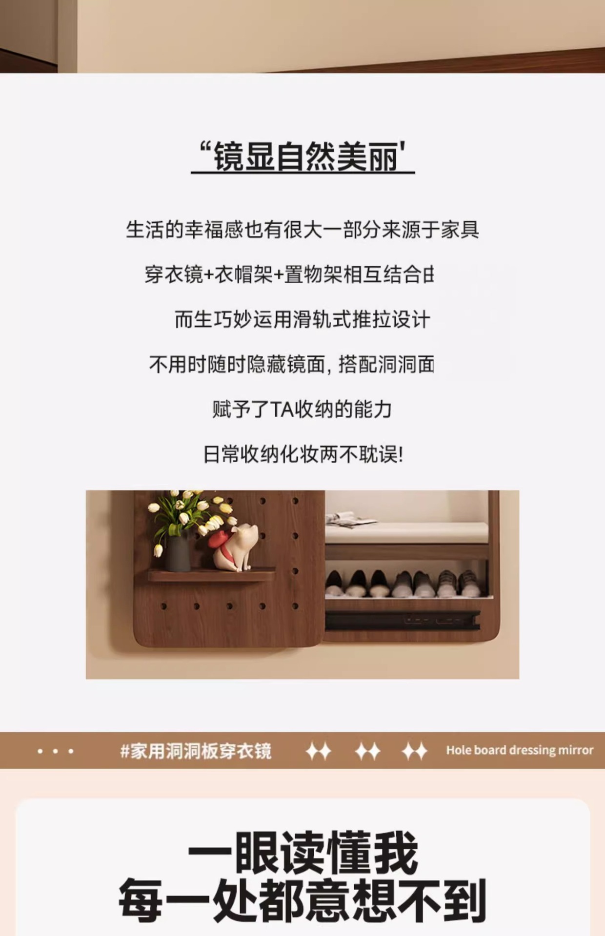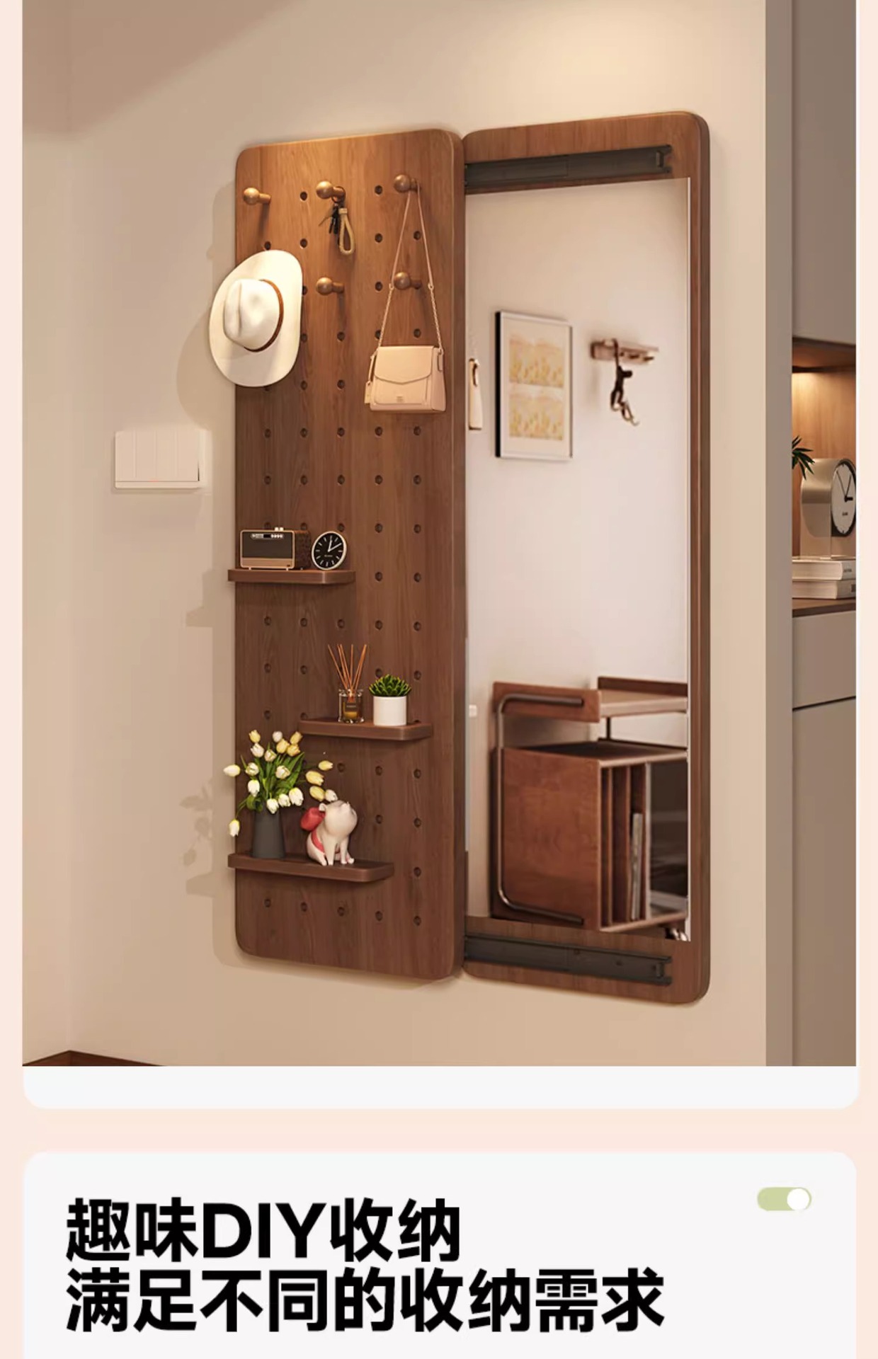 Espejo de vestir de madera sólida, espejo de vestir de todo el cuerpo de empuje invisible, espejo de vestir de vestir