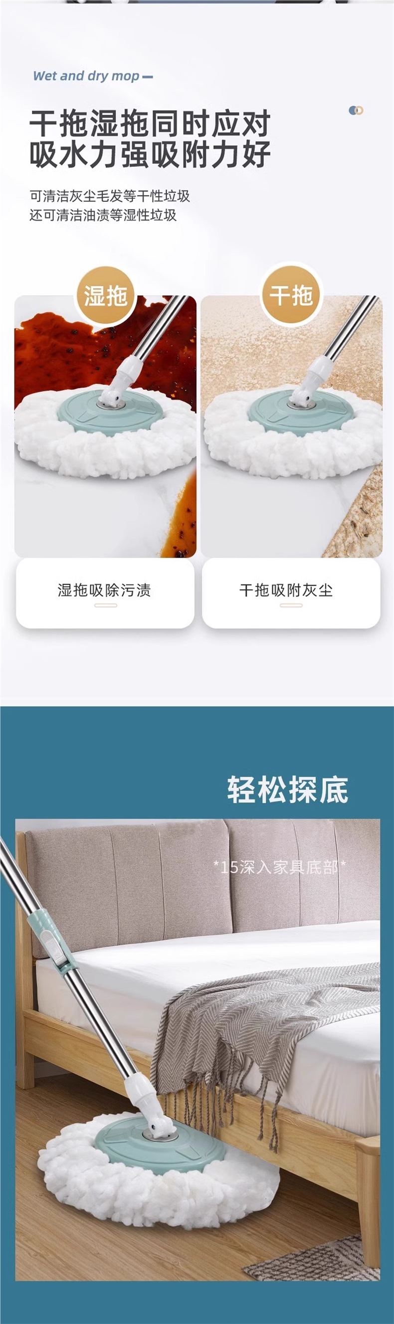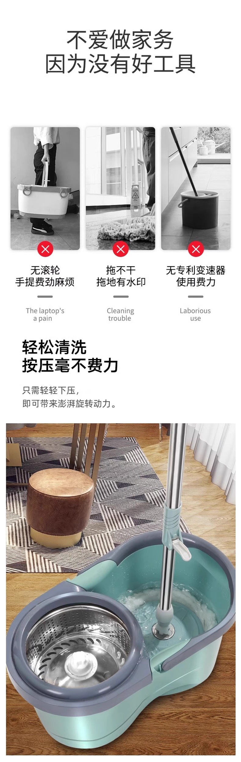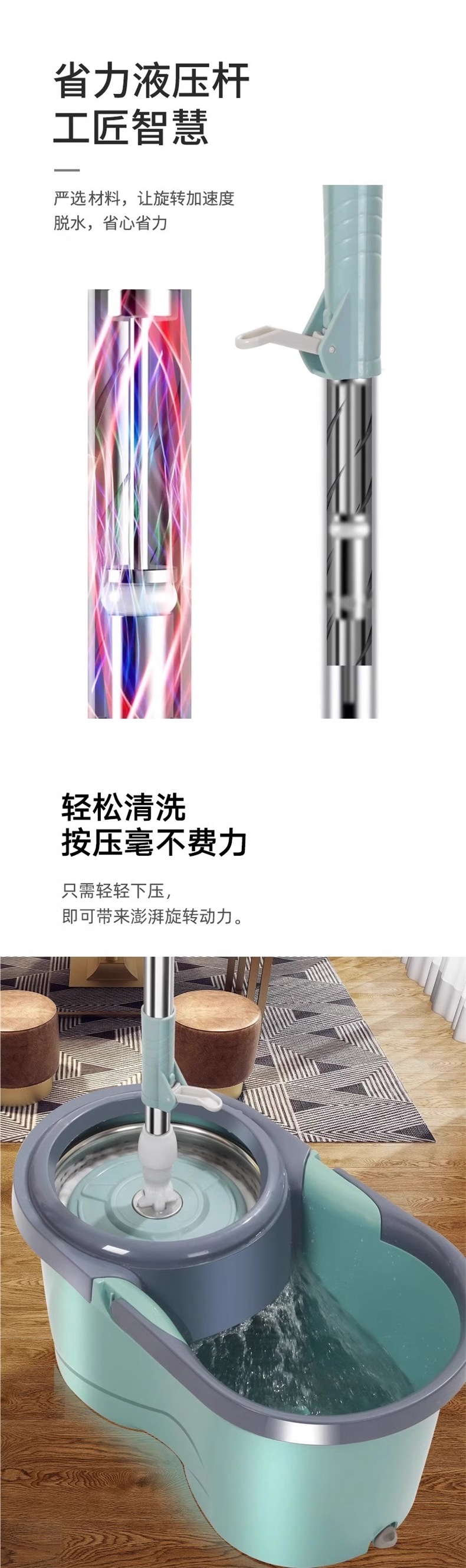 Nuevo tipo de trapeador giratorio para el hogar sin lavado a mano trapeador cubo de agua en un solo trapeador cubo de tela
