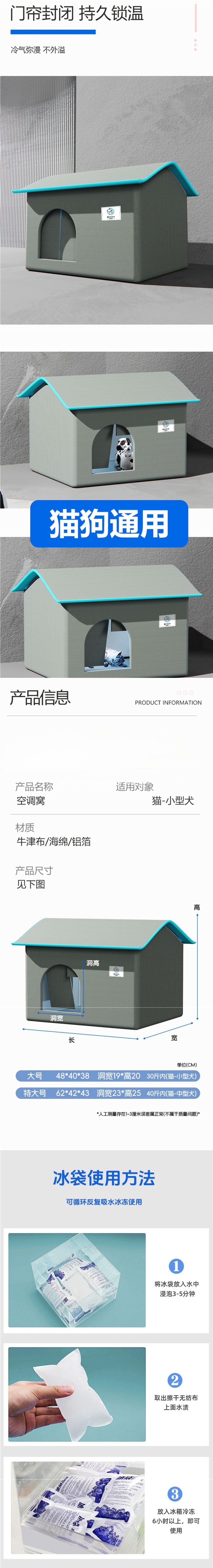 Habitación de aire acondicionado para gatos espacio cerrado felino de cuatro estaciones generales de verano helado para mascotas refrigeración hielo casa de aire acondicionado