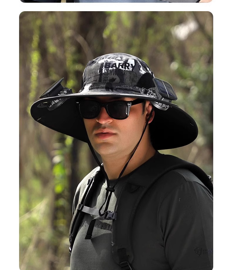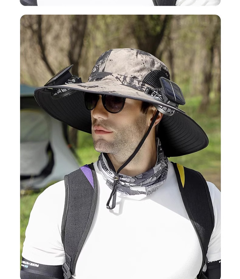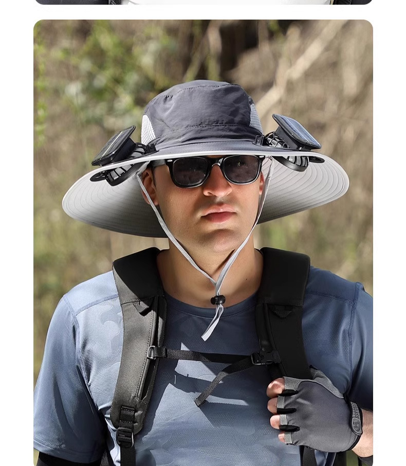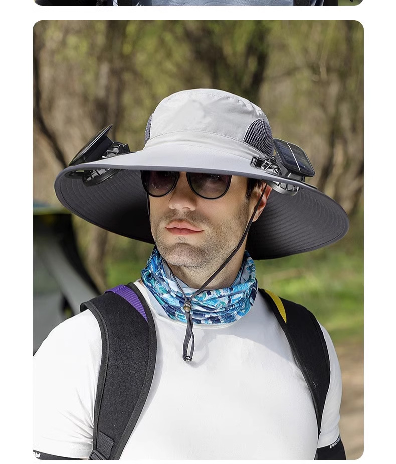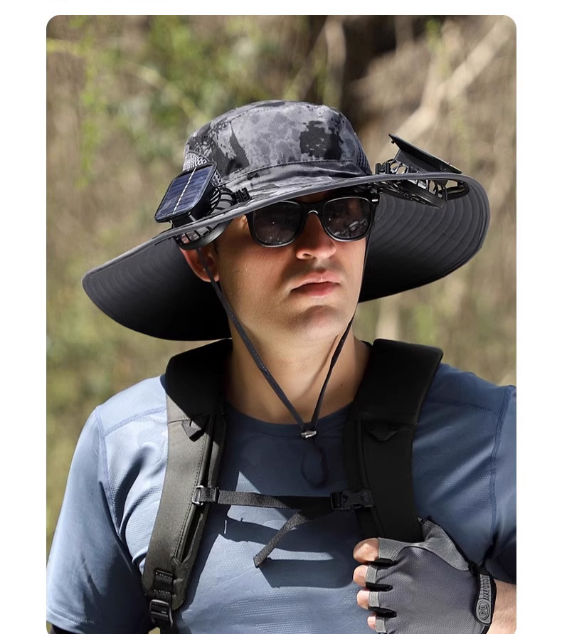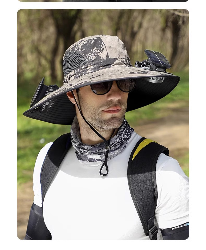 Sombrero de ventilador solar para hombre de verano gran sombrero de borde anti-UV sombrero de pescador de montaña sombrero de ventilador de sombra de pesca