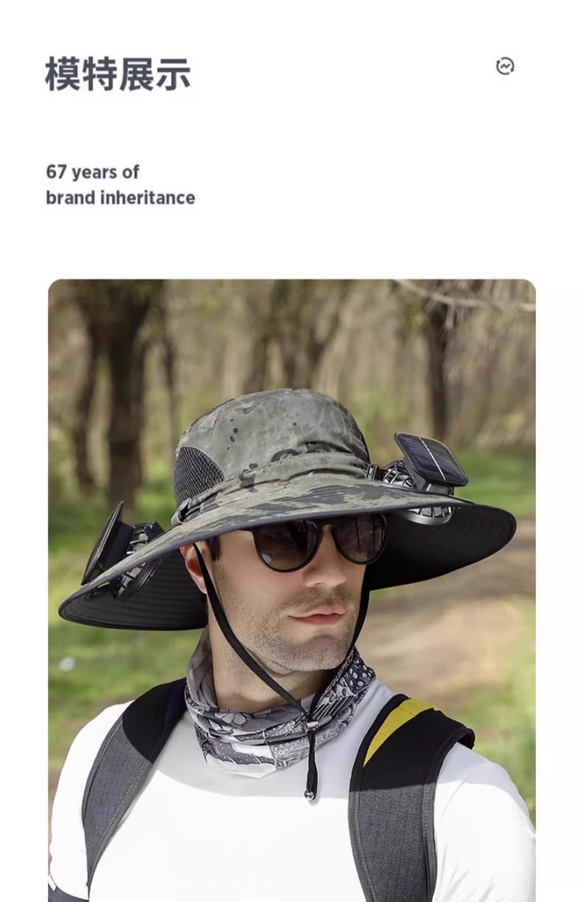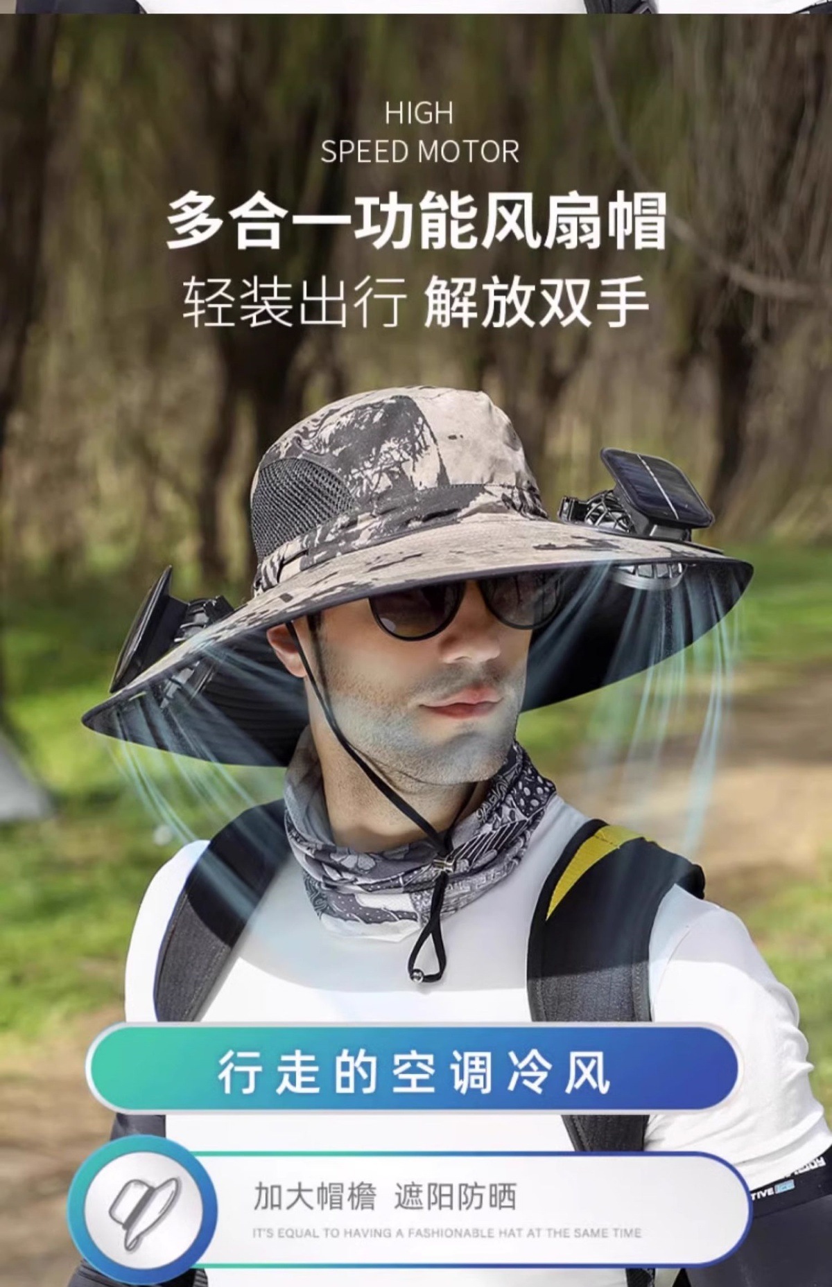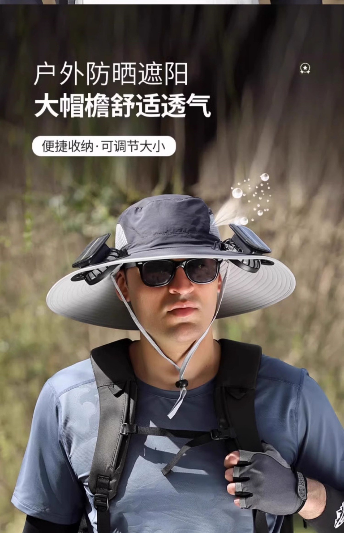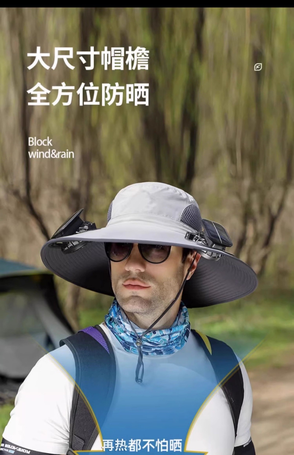 Sombrero de ventilador solar para hombre de verano gran sombrero de borde anti-UV sombrero de pescador de montaña sombrero de ventilador de sombra de pesca