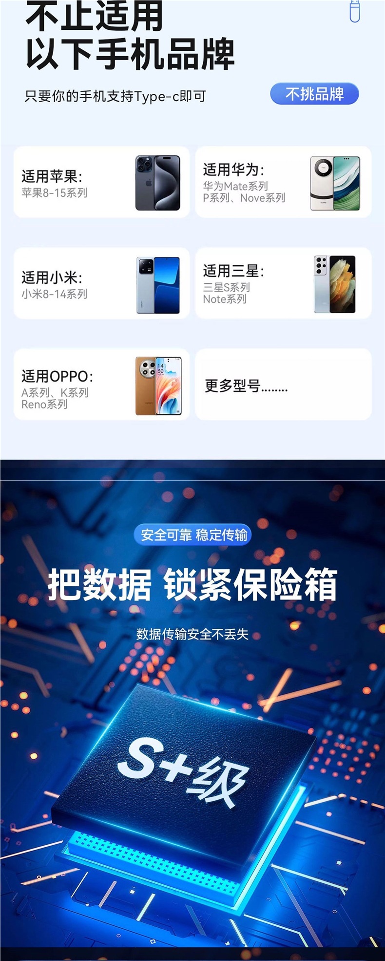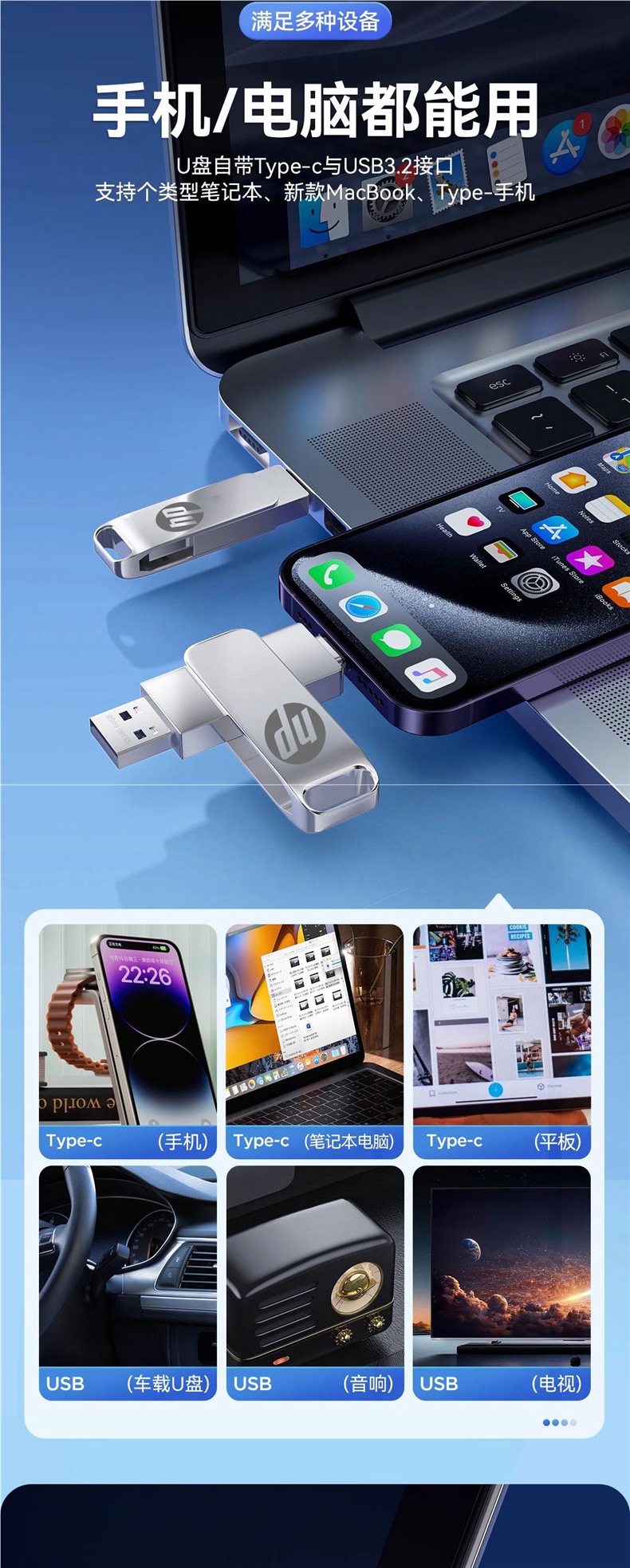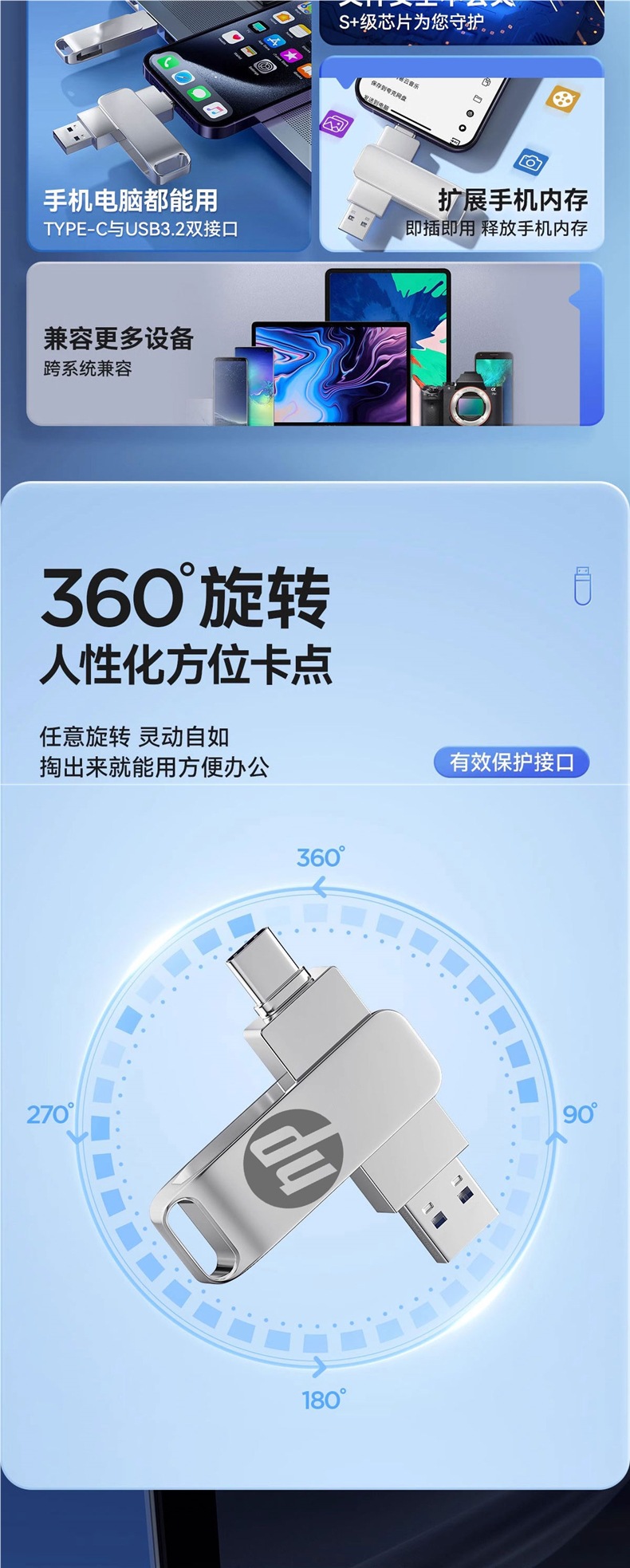 Tipo C USB de doble interfaz 512g teléfono móvil computadora dual capacidad 256g USB de doble cabeza de alta velocidad 128g