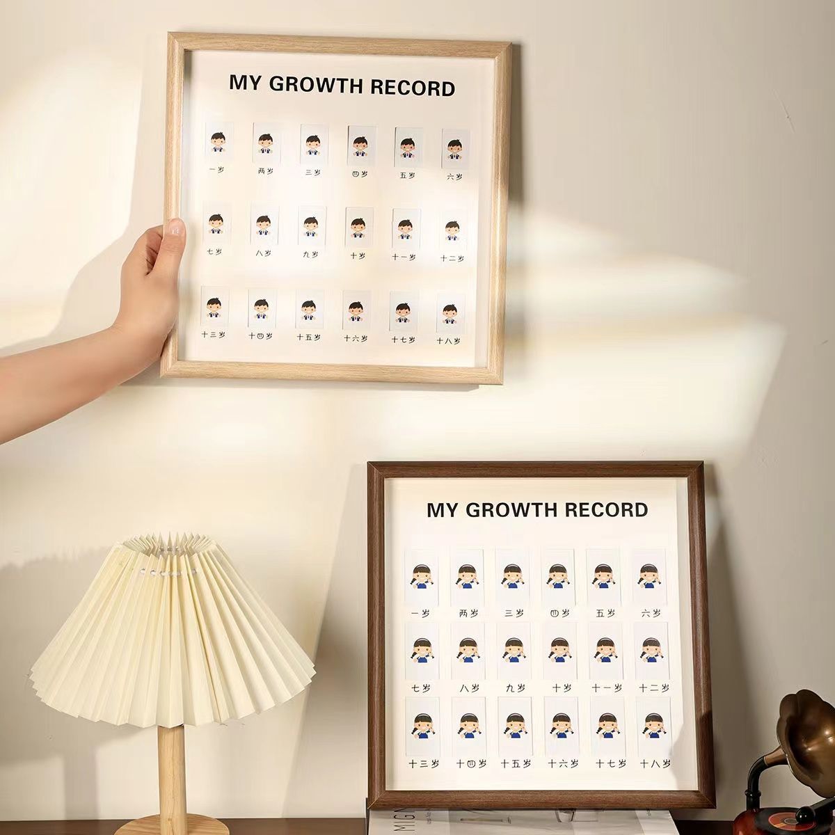 Marcos de fotos de crecimiento infantil conmemorativo de aniversario de un bebé de un año de edad 18 años iluminación del campus