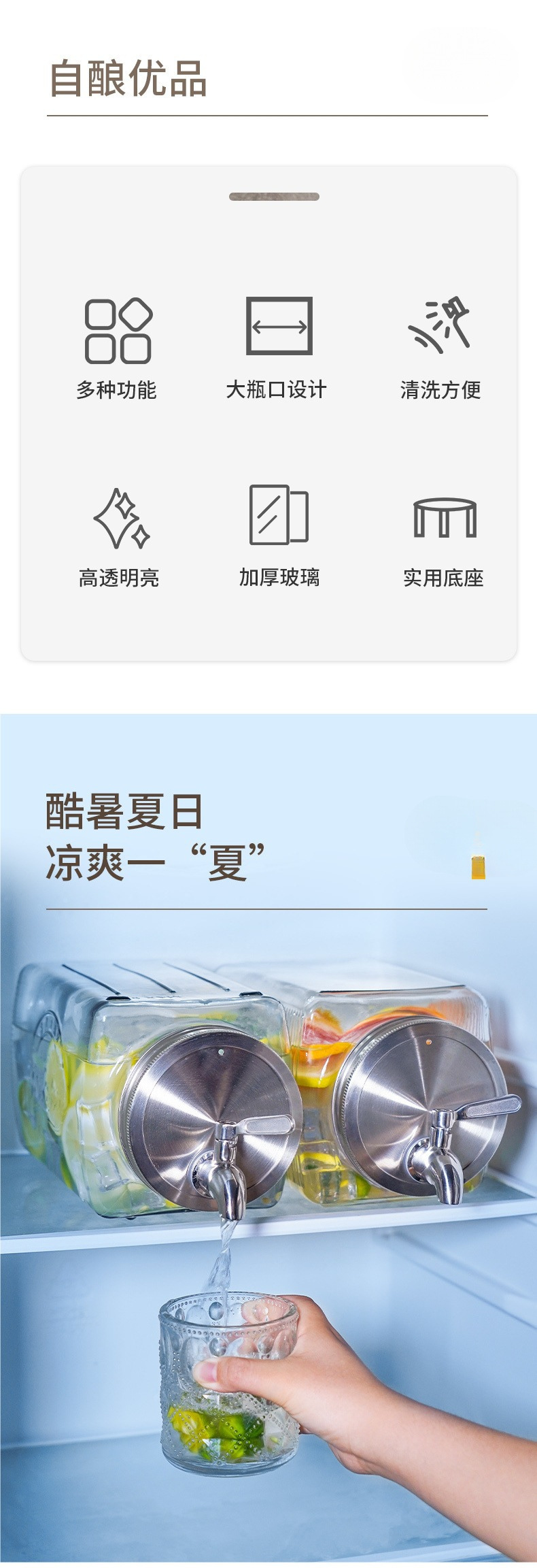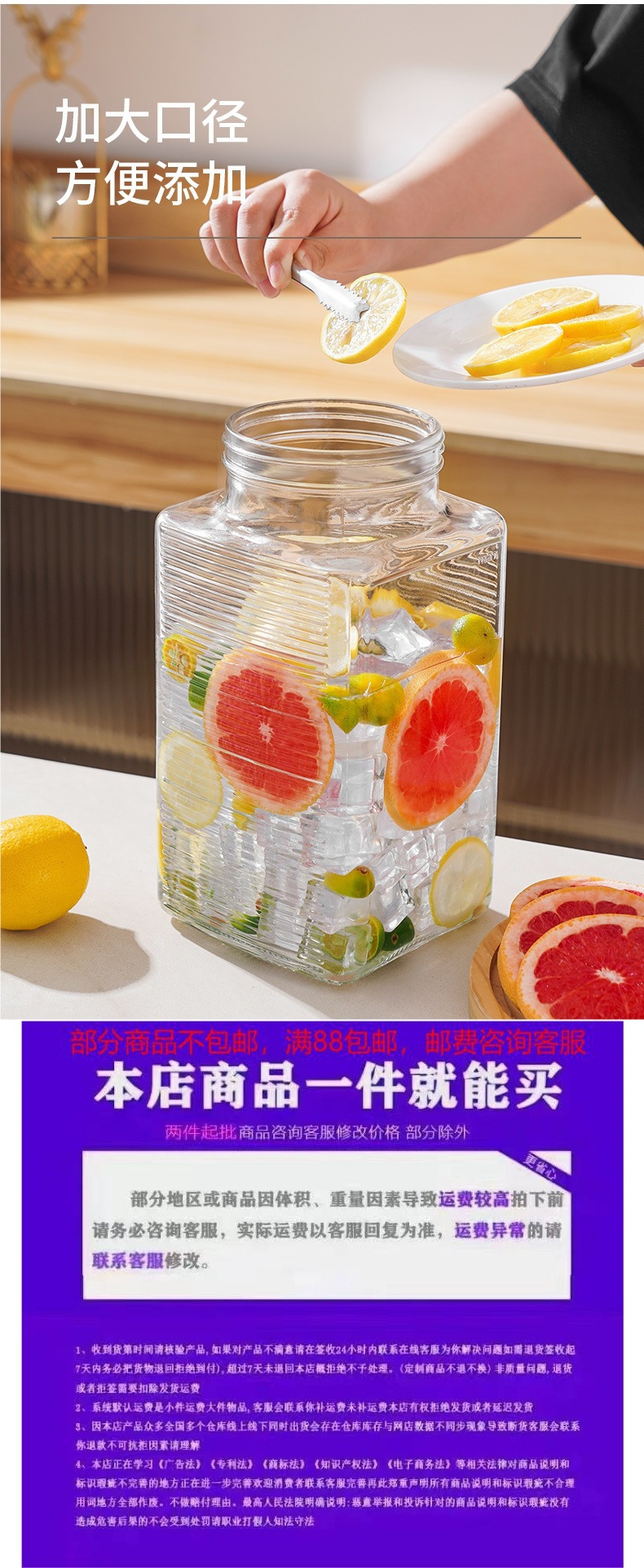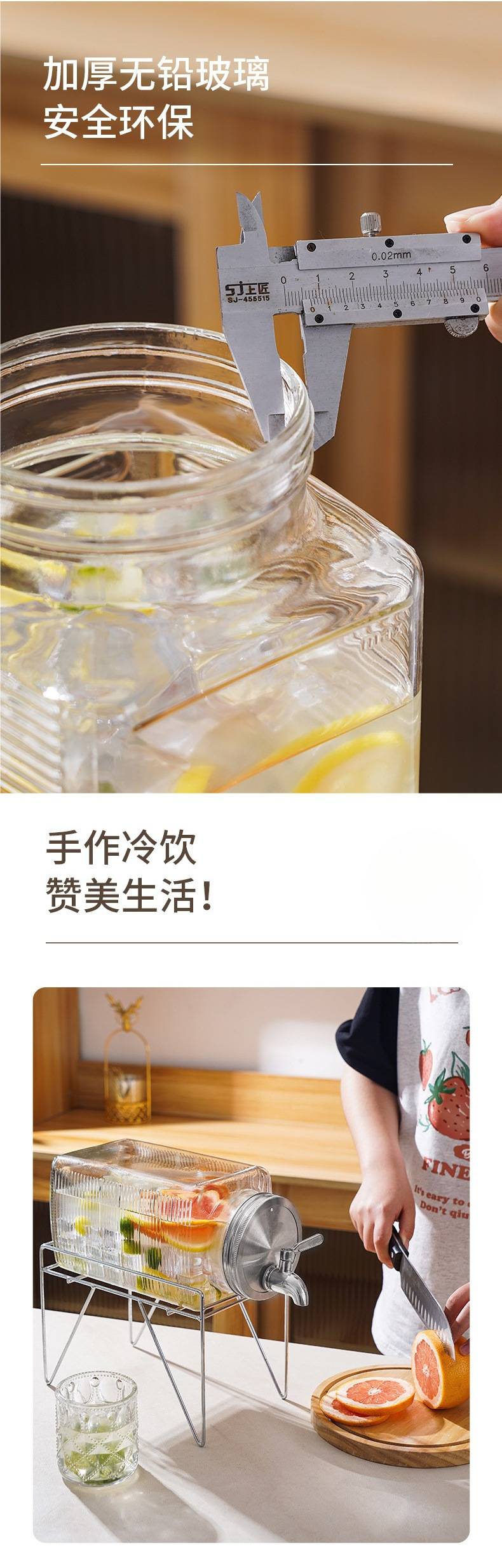 Hervidor de vidrio refrigerador con grifo barril de bebida frutas barril de té bebida fría auto-refrigerante barril de agua fría de gran capacidad