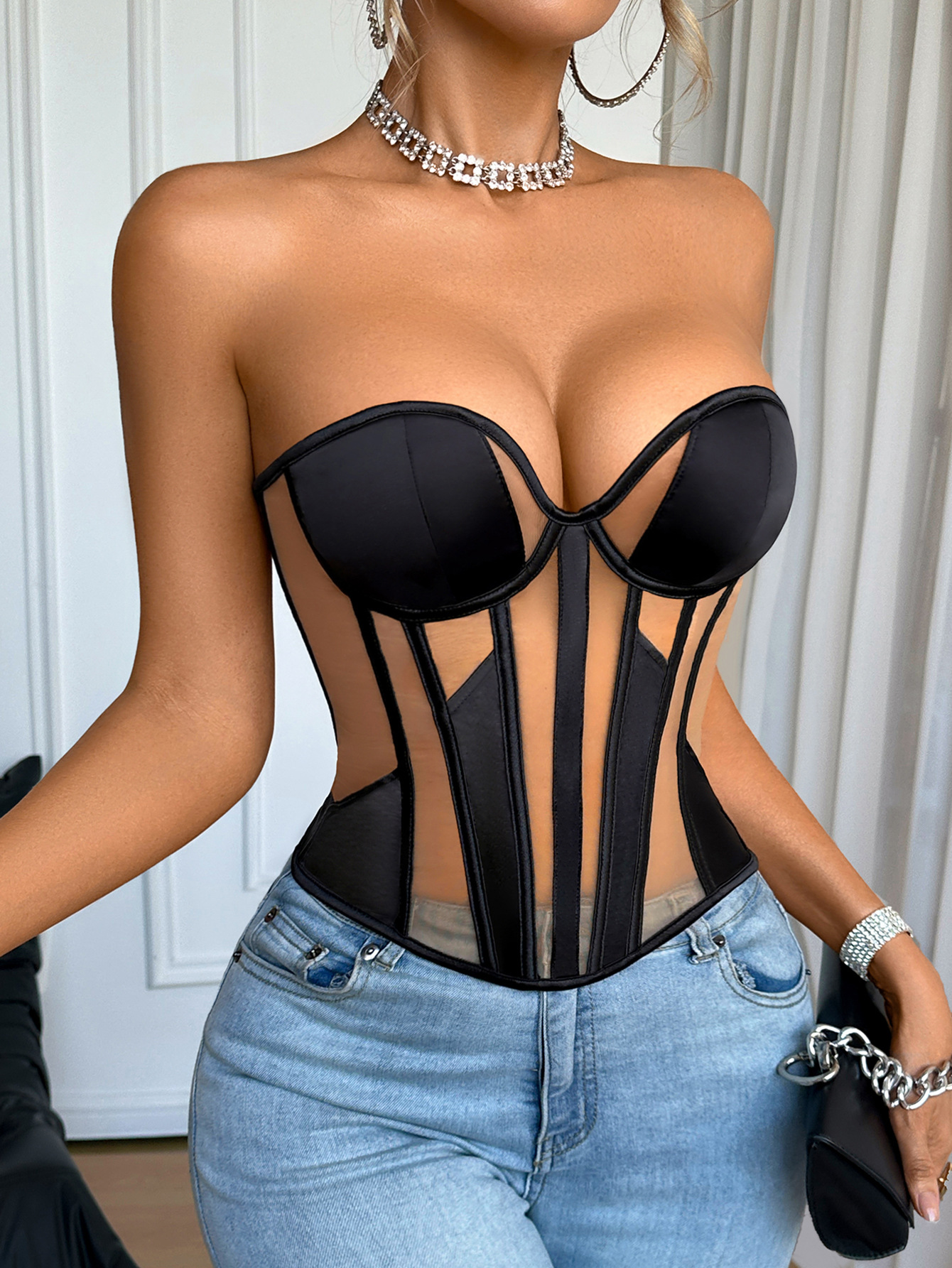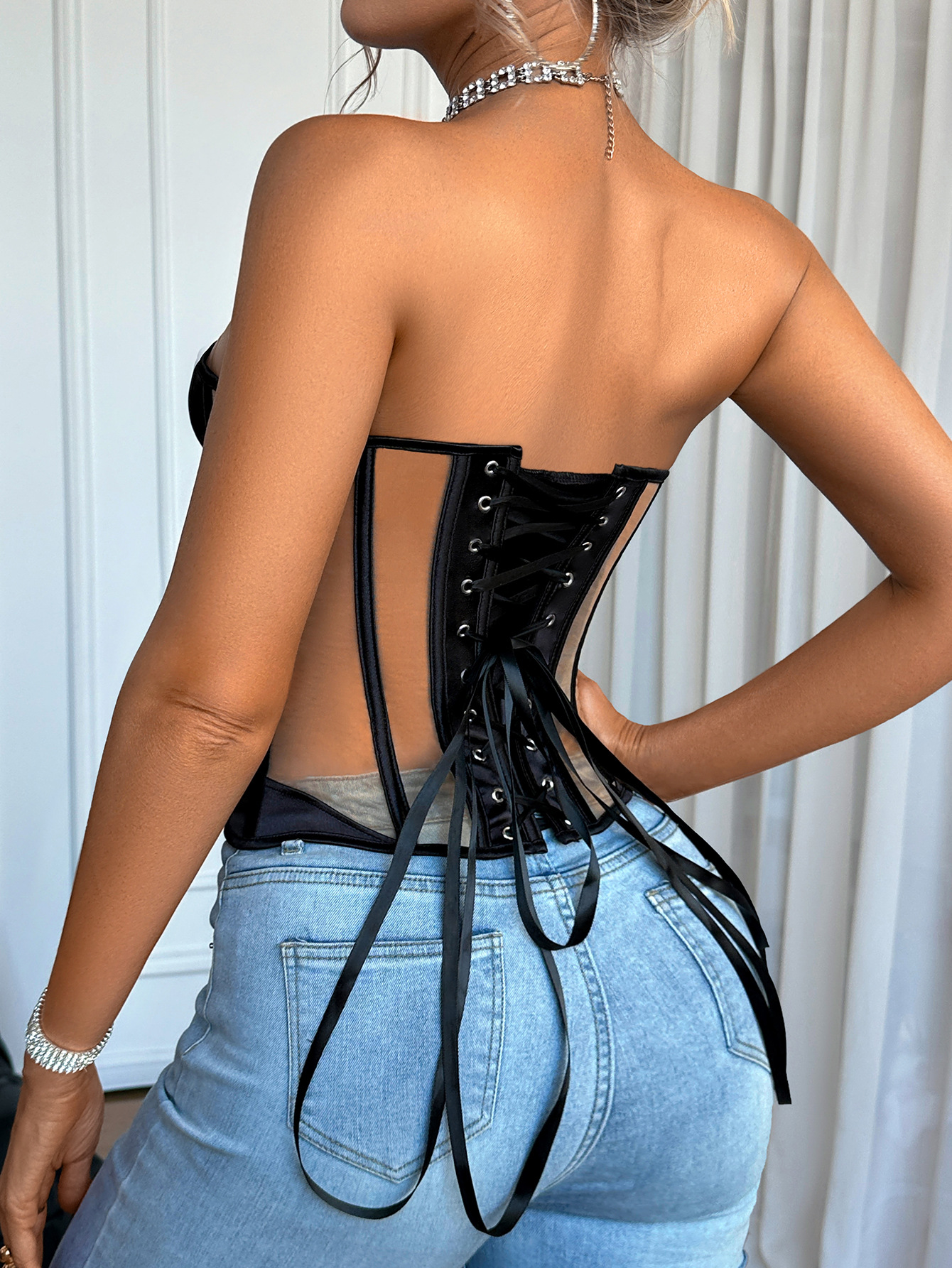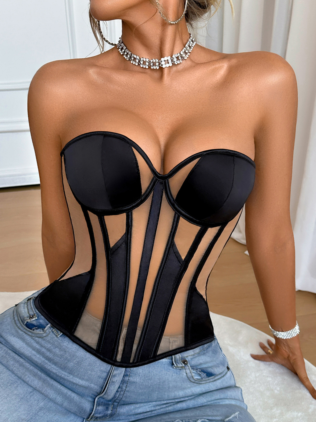 Francés transpirable malla corte corset cosido cintura corset de hueso de pescado hot chick sexy en el pecho de la camisa de mujer