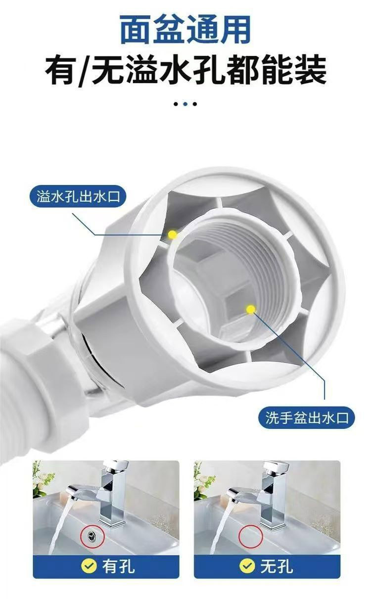 El desodorante de agua se descarga horizontal y verticalmente. El cabezal de goma del lavabo es retráctil.