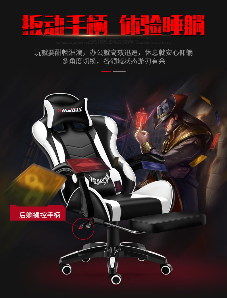 Silla de juego, silla de juego, ajuste de altura, silla de computadora ergonómica, cómoda y duradera.