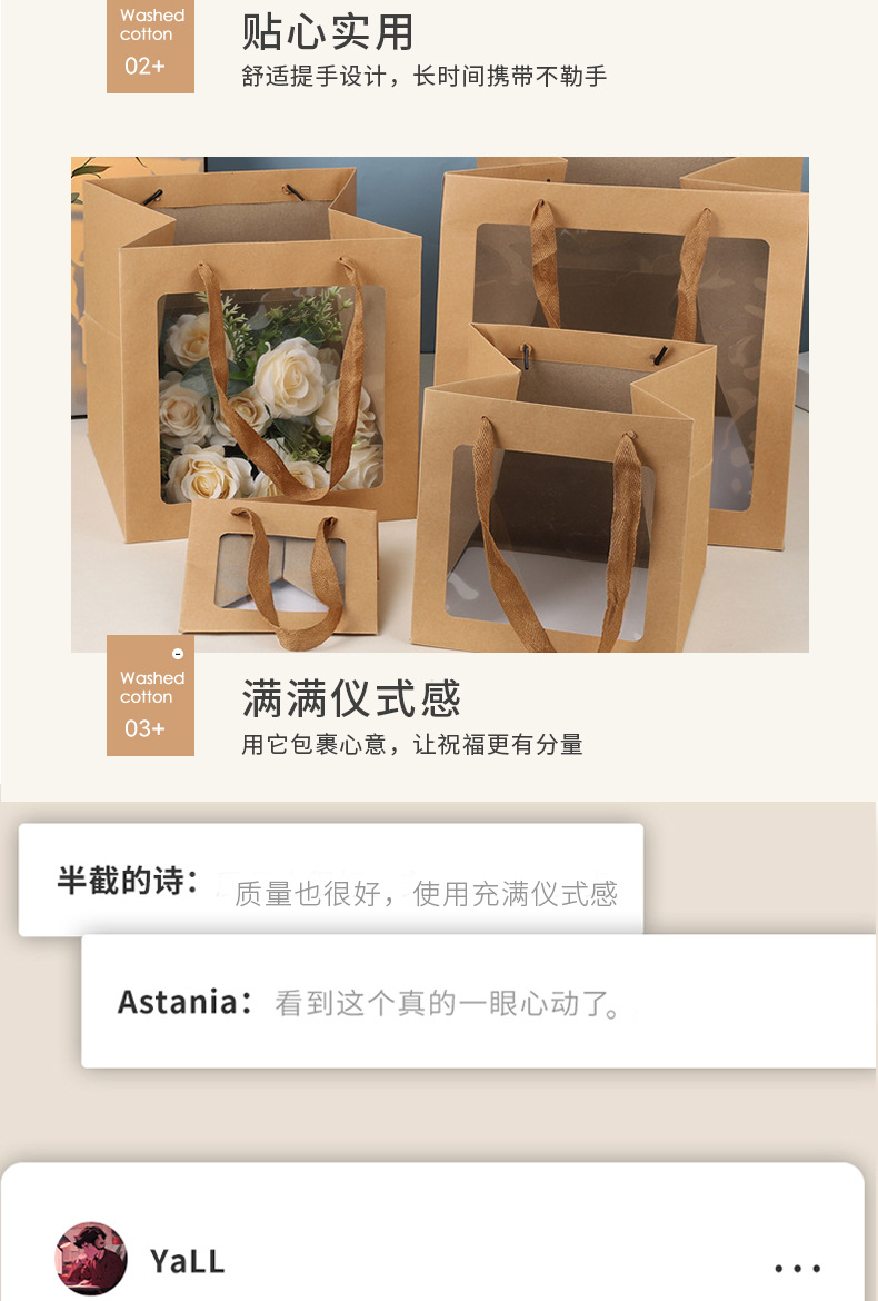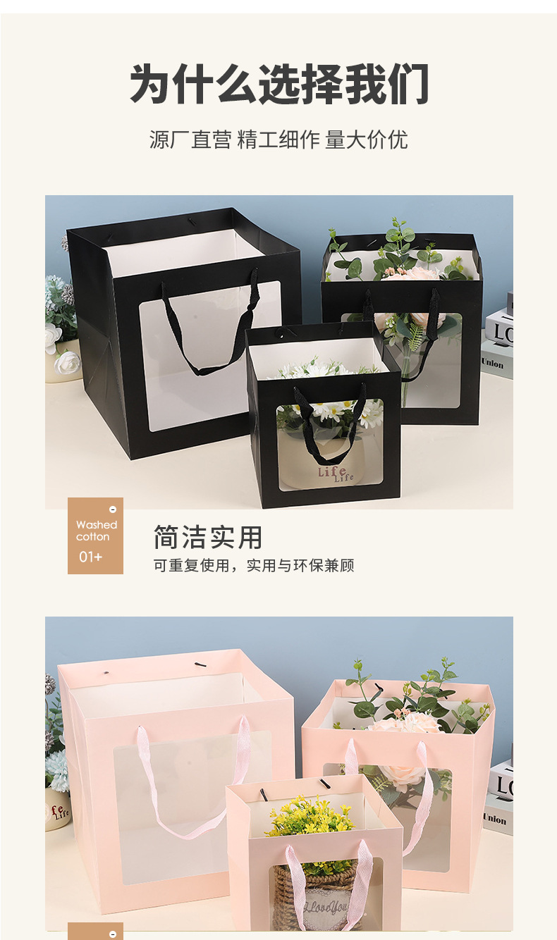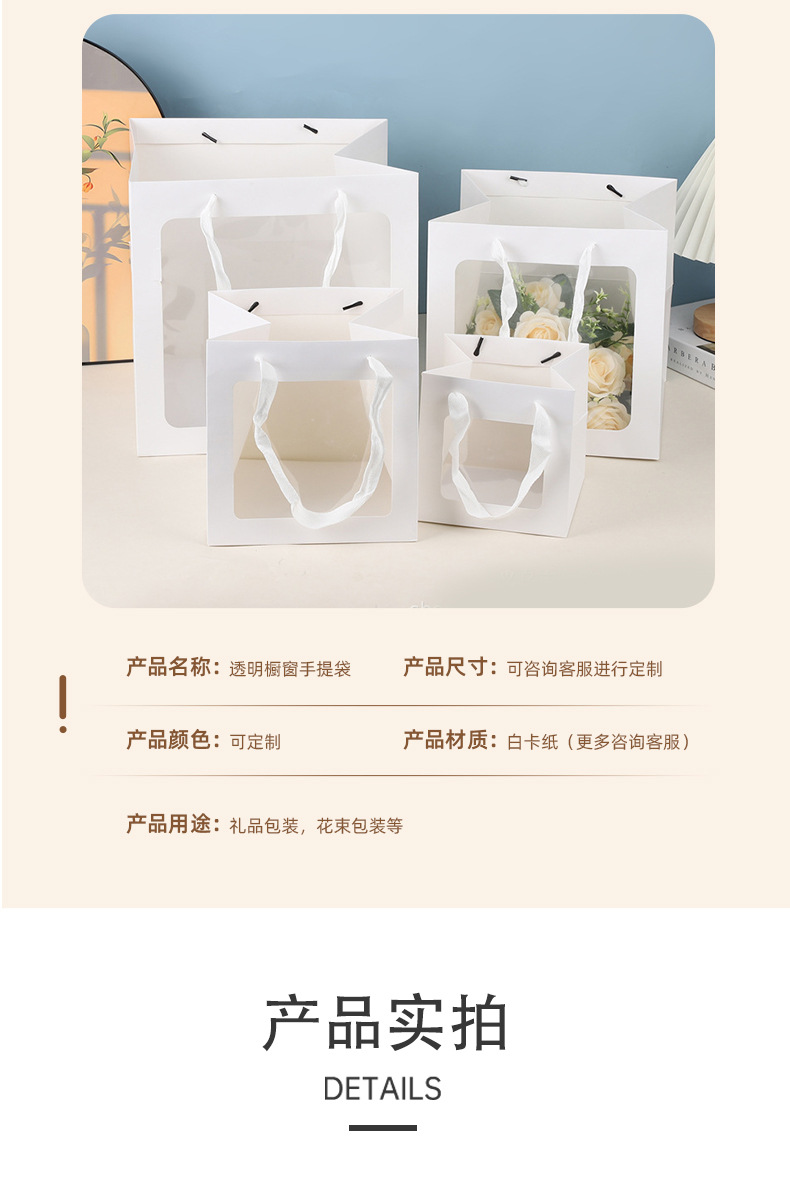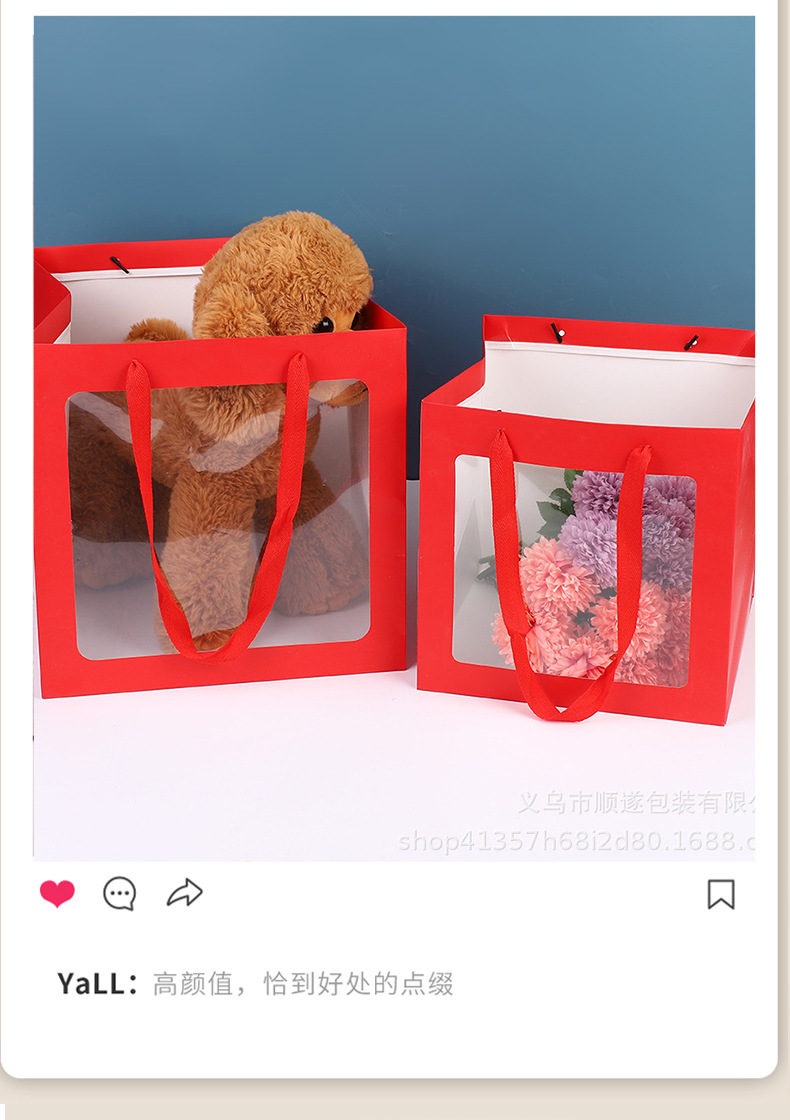 Bolsa de mano transparente ventana bolsa de regalo ramo muñeca ventana bolsa de regalo Día de la Madre bolsa de regalo personalizada