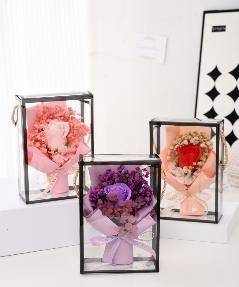 Romántica serie de estrellas llenas de rosas transparentes de flores de la eternidad caja de regalo de regalo de cumpleaños de San Valentín al por mayor