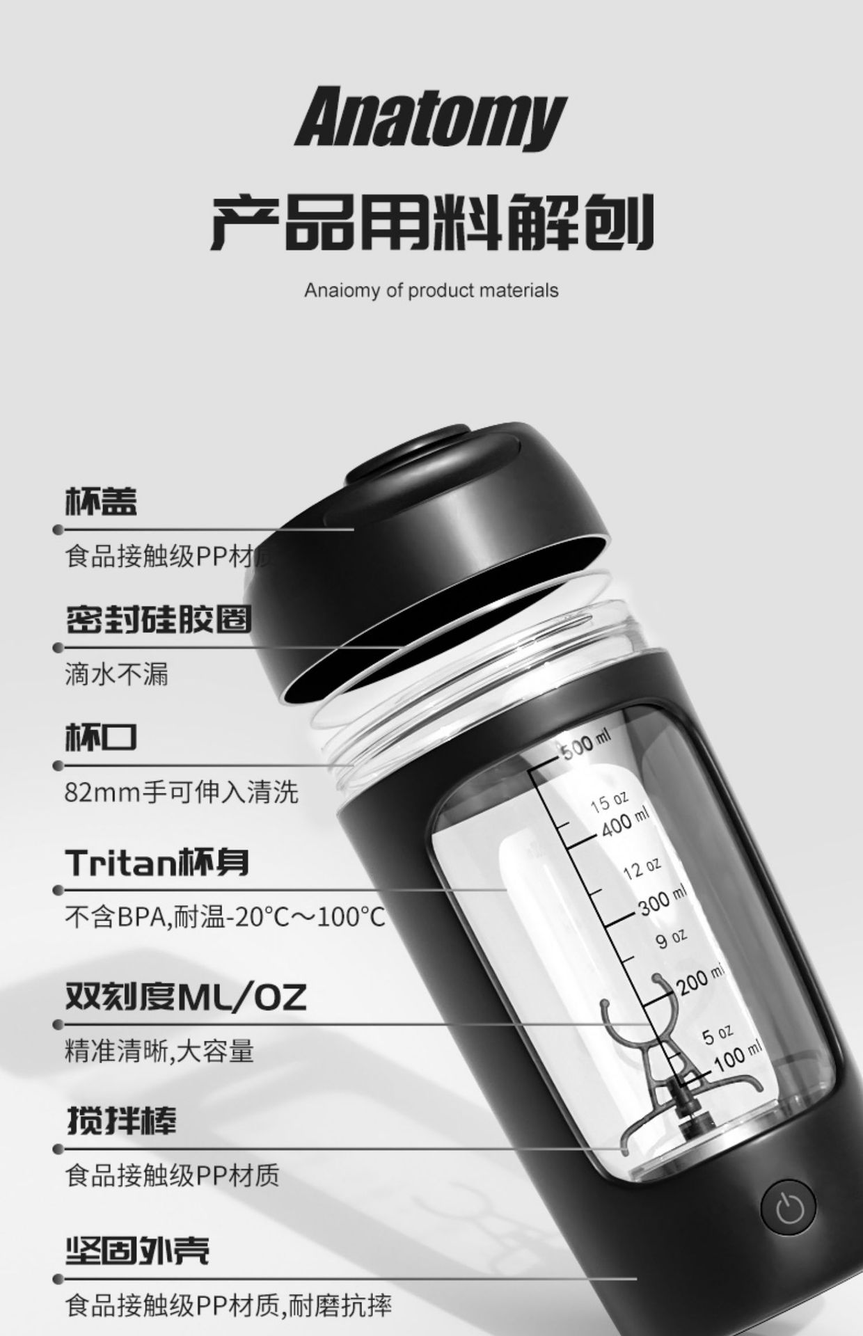 Calorías nuevo vaso mezclador automático vaso de batido portátil vaso de batido eléctrico vaso de agua de fitness con carga de escala
