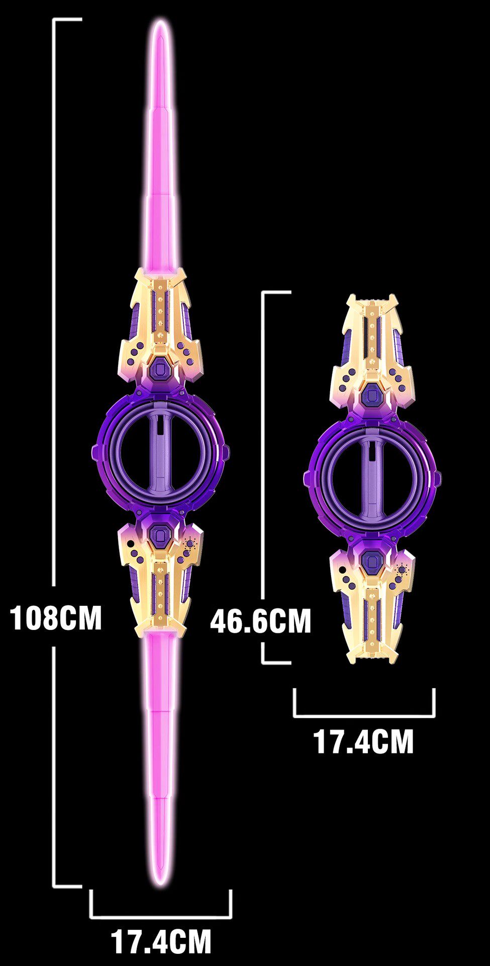 Espada de fuego rotativa de doble filo sabre de luz de doble cabeza cojinete telescópico cuchillo de oro rotativo luminoso efecto de sonido espada láser regalo juguete para niños