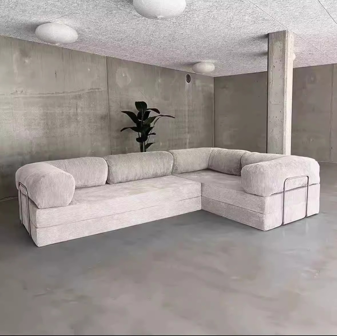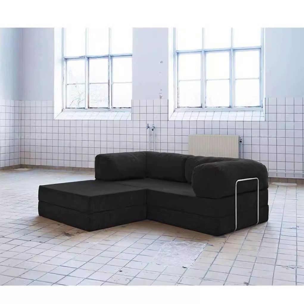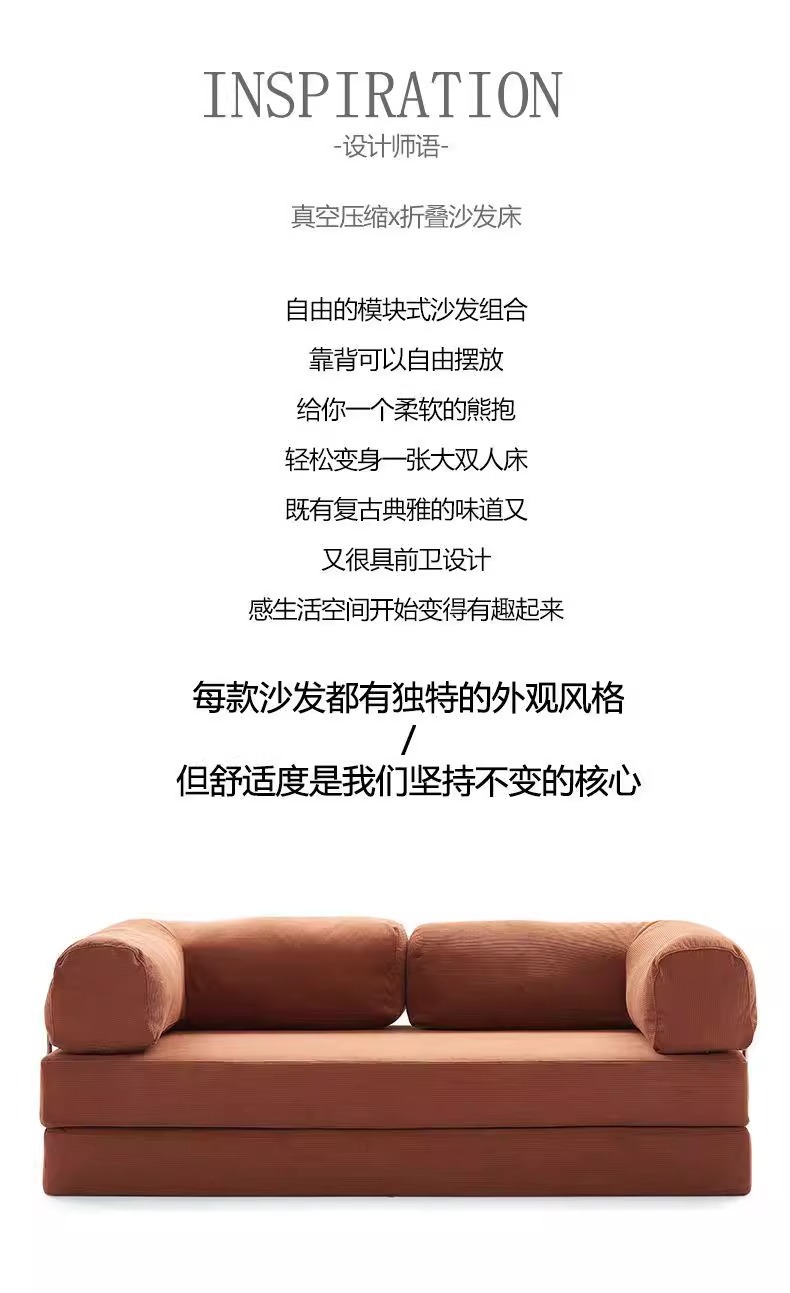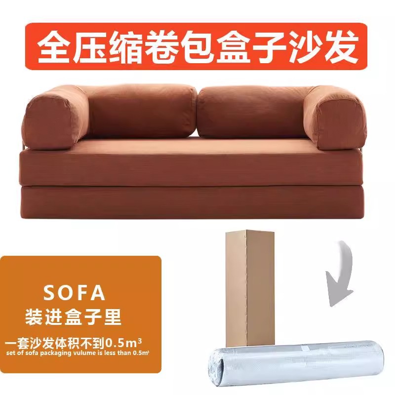 Sofá de compresión al vacío moderno retro tela de pana sala de estar apartamento pequeño sofá cama perezoso plegable simple