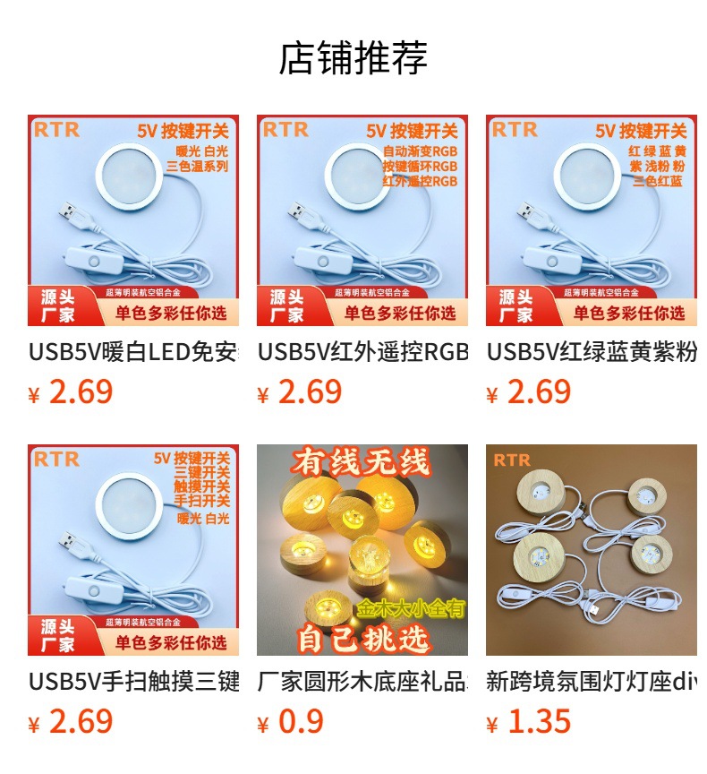 USB5V ultra delgada cubierta abierta armario redondo armario de vinos armario de exhibición lámpara de placa pequeña lámpara redonda lámpara de noche impresión 3D
