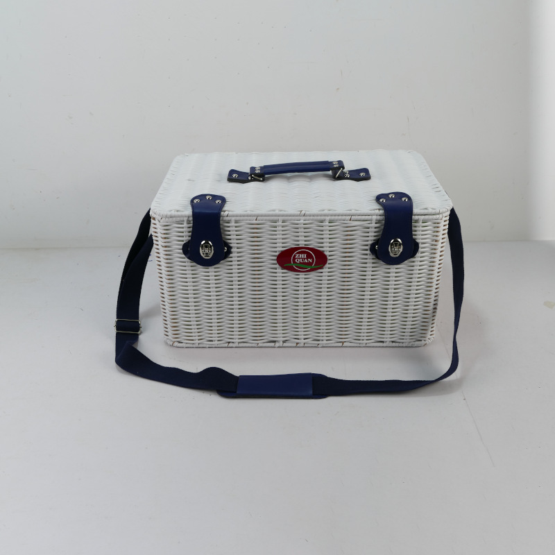 Cestas de picnic de plástico tejidas a mano personalizadas cuádruples tejidas a mano cinturón de hielo cinturón de hombro tela de caña cesta de mano