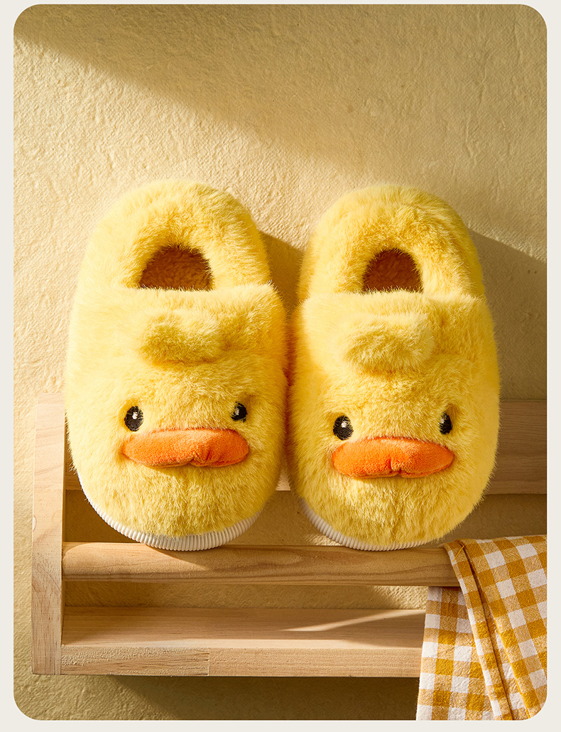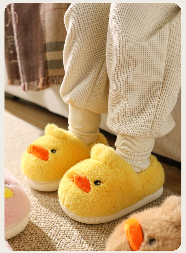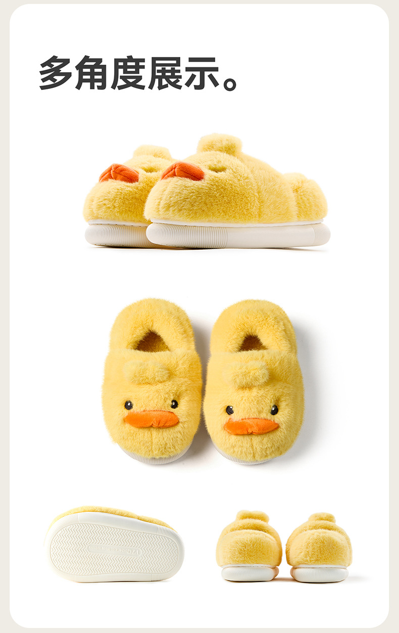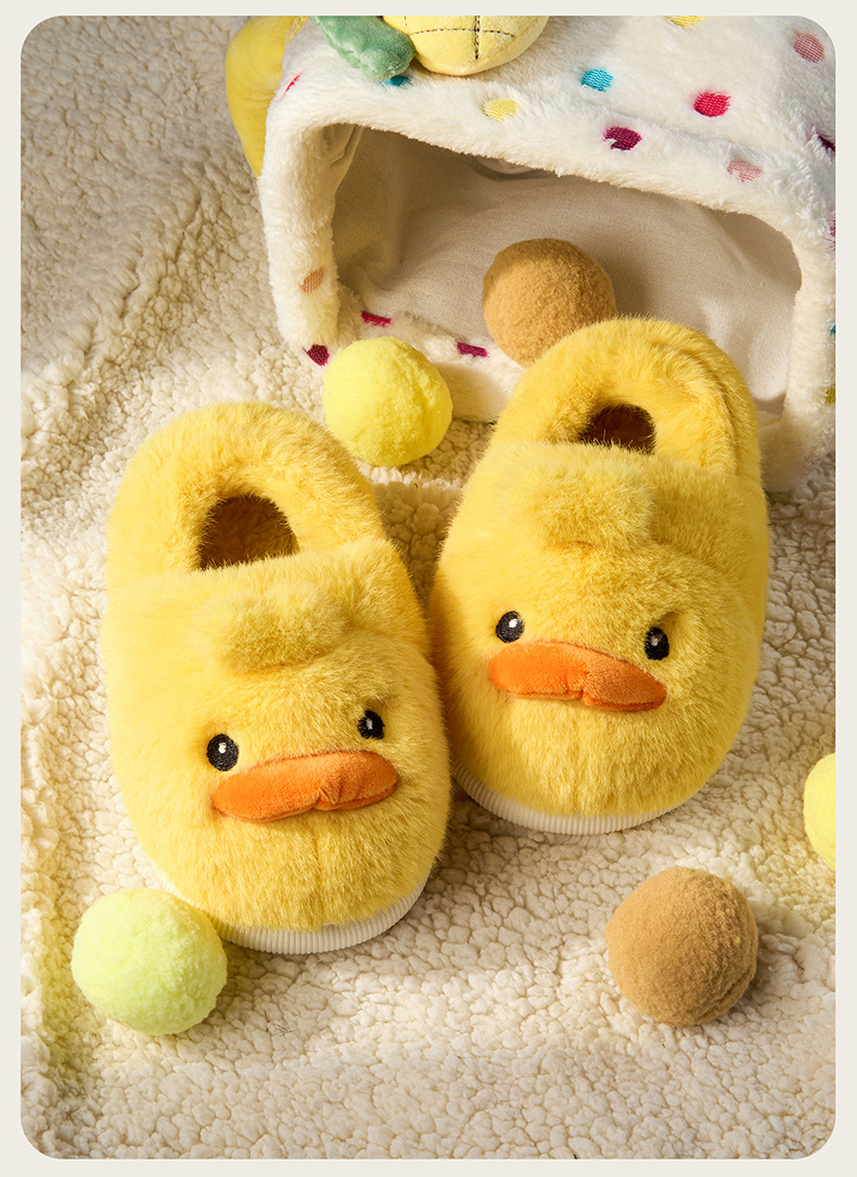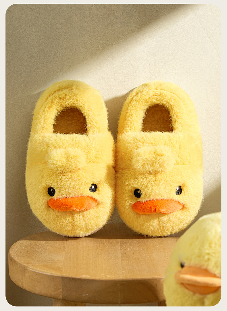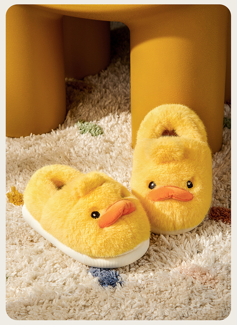Zapatos de algodón para niños de otoño y invierno para niños en el hogar antideslizante de dibujos animados patito amarillo calentamiento zapatillas de algodón de lana para bebés