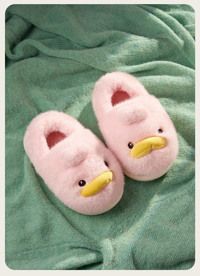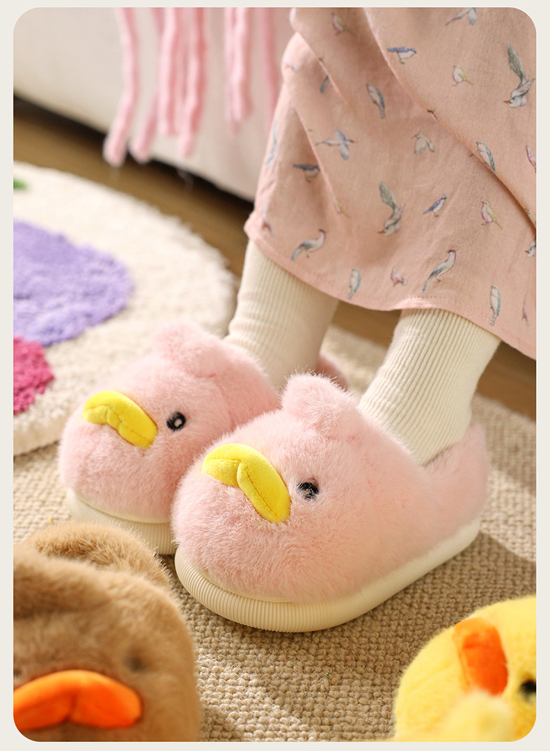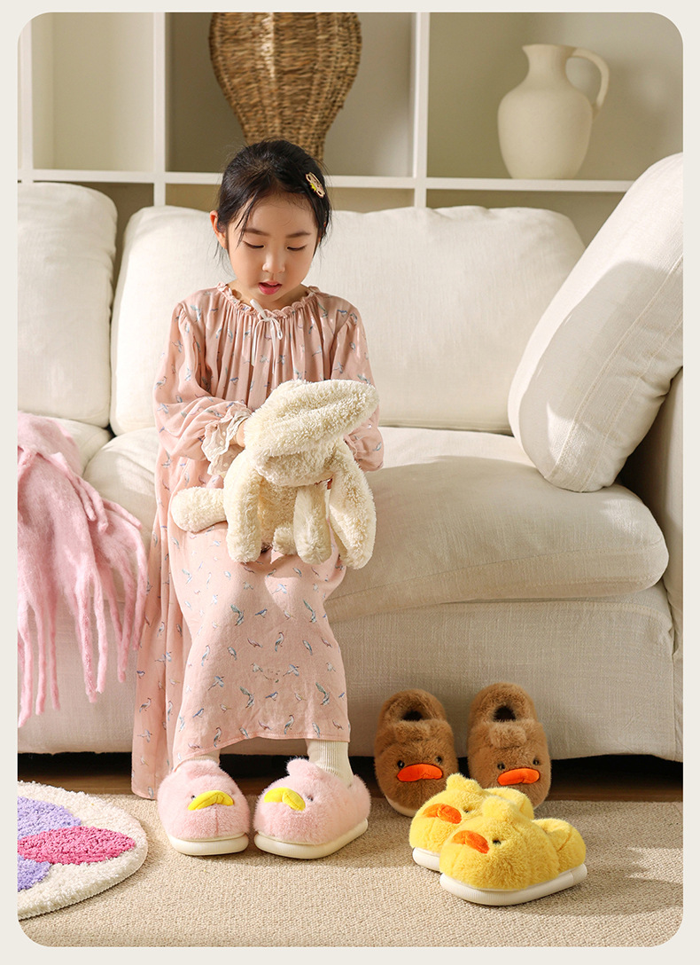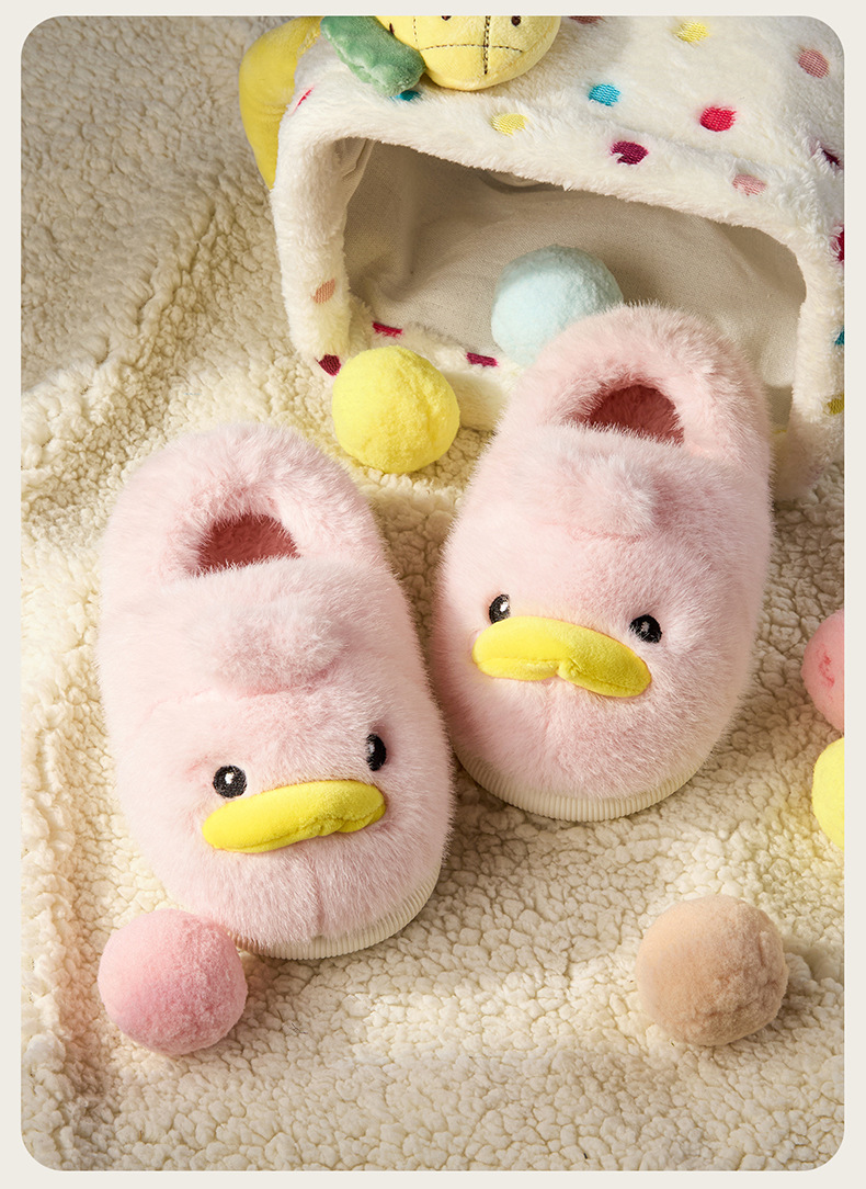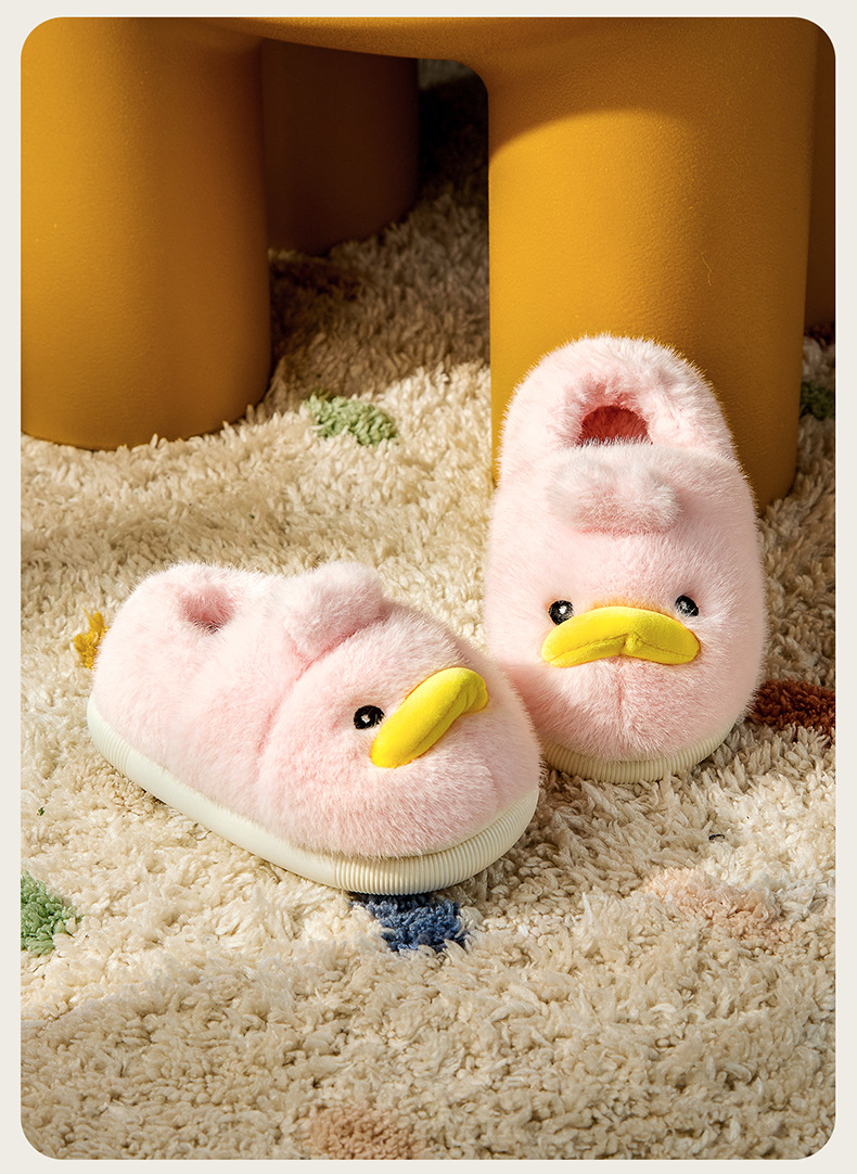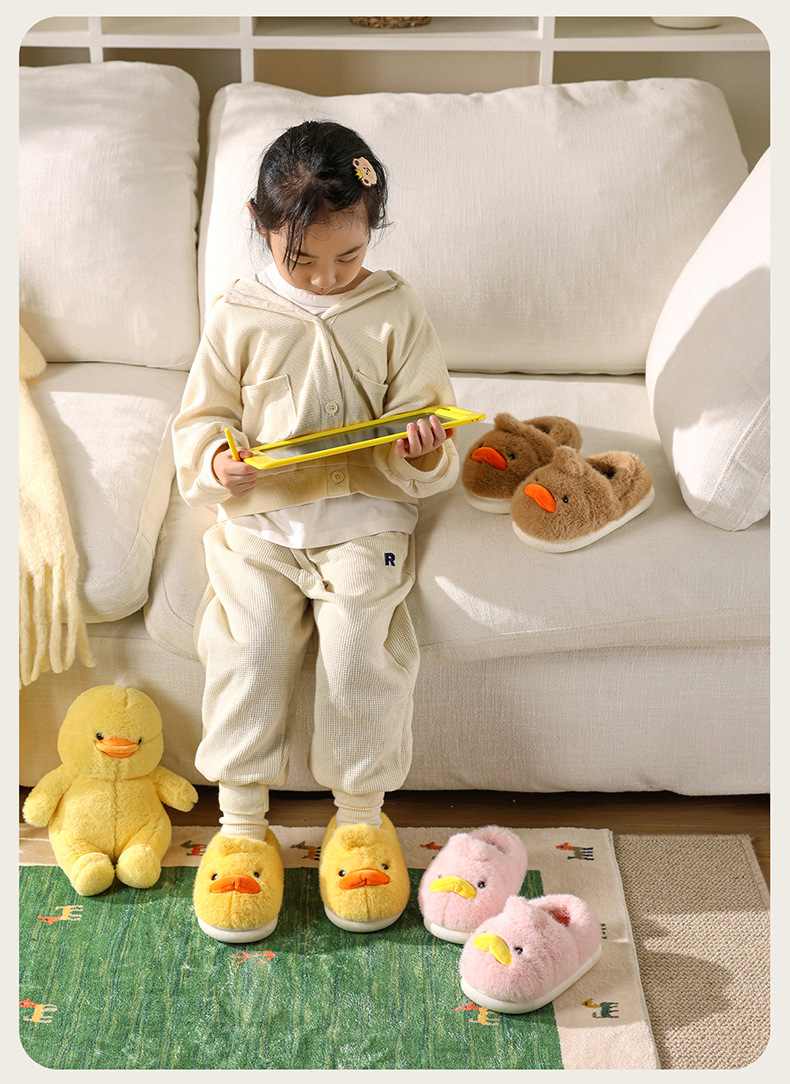 Zapatos de algodón para niños de otoño y invierno para niños en el hogar antideslizante de dibujos animados patito amarillo calentamiento zapatillas de algodón de lana para bebés