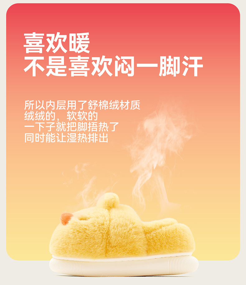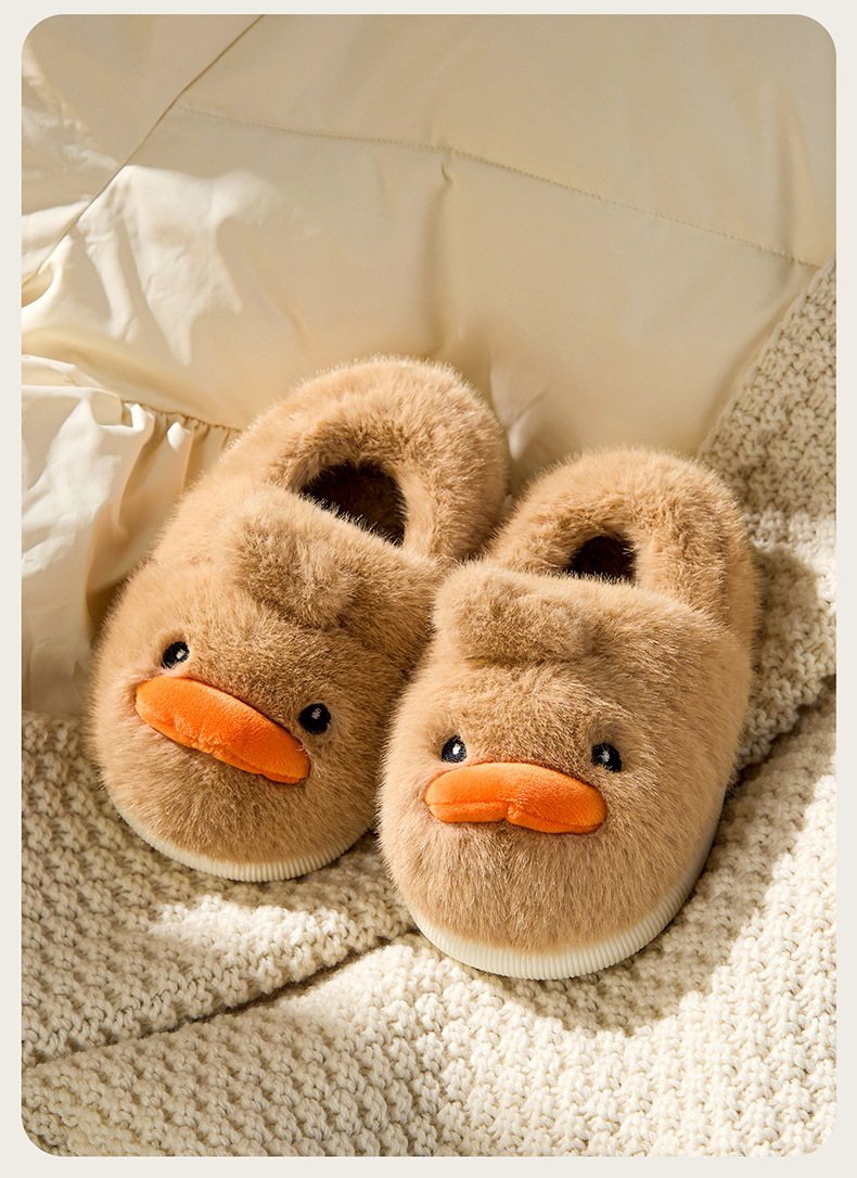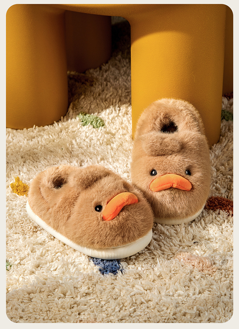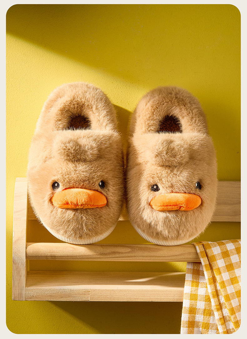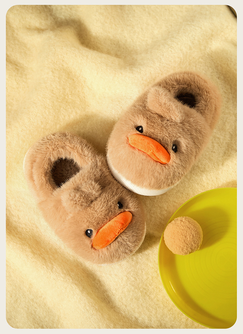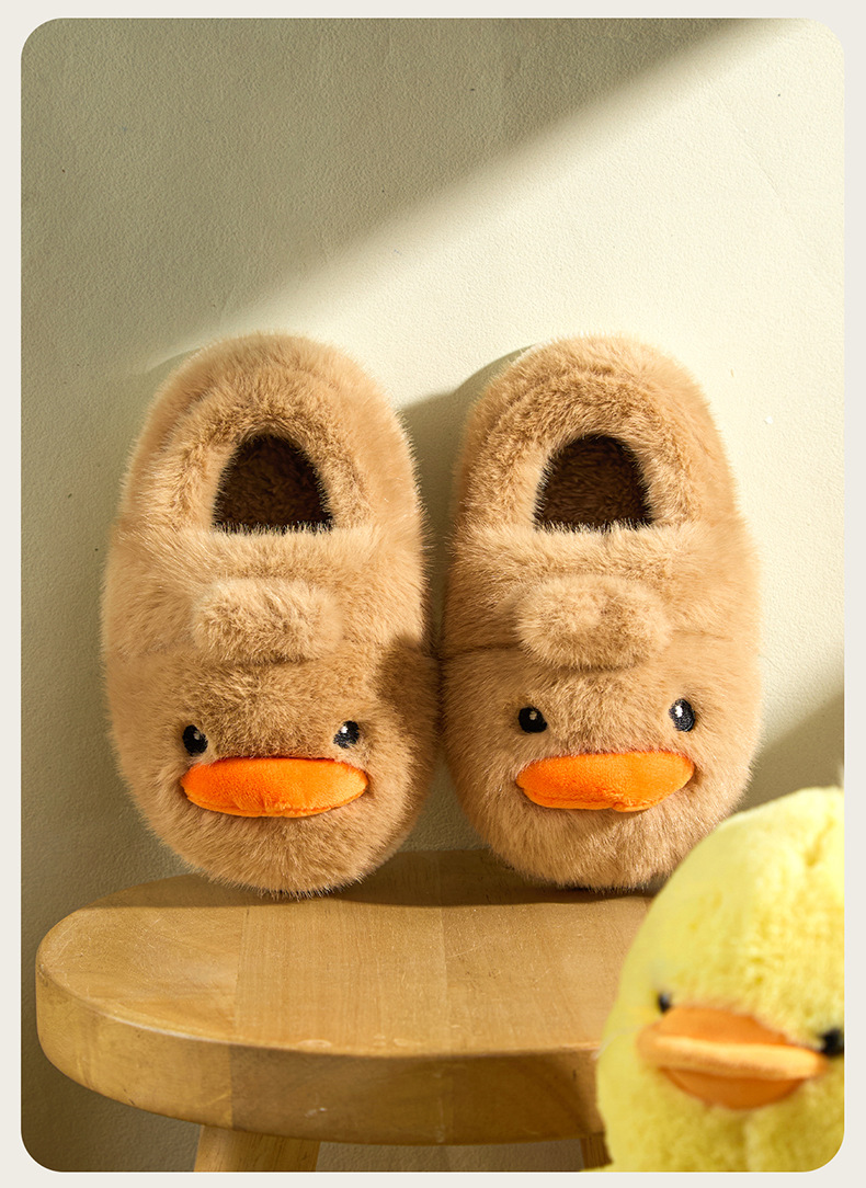 Zapatos de algodón para niños de otoño y invierno para niños en el hogar antideslizante de dibujos animados patito amarillo calentamiento zapatillas de algodón de lana para bebés