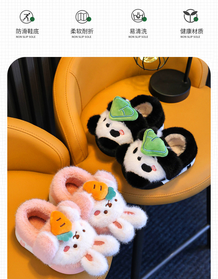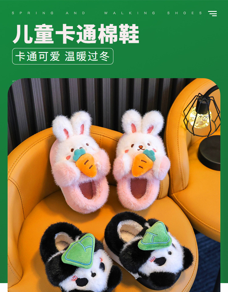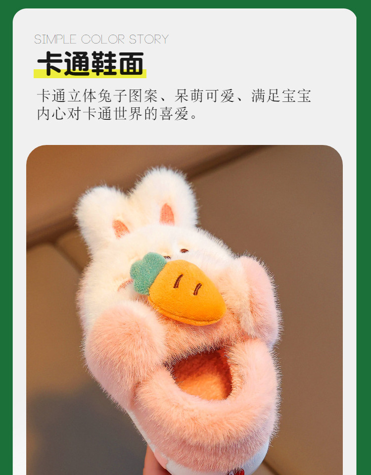 Zapatillas de algodón para niños de invierno antideslizantes de dibujos animados para niños pequeños y medianos calientes en casa bolsas de peluche de conejo y zapatos de algodón para bebés