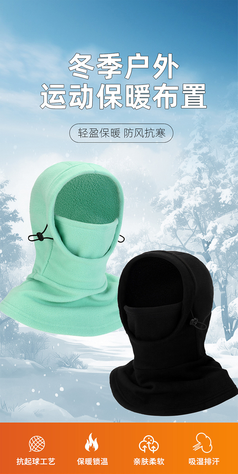 Otoño y invierno máscara de ciclismo al aire libre sombrero de pelusa fría integral sombrero protector facial ajustable cubierta de cabeza a prueba de viento más pelusa gruesa