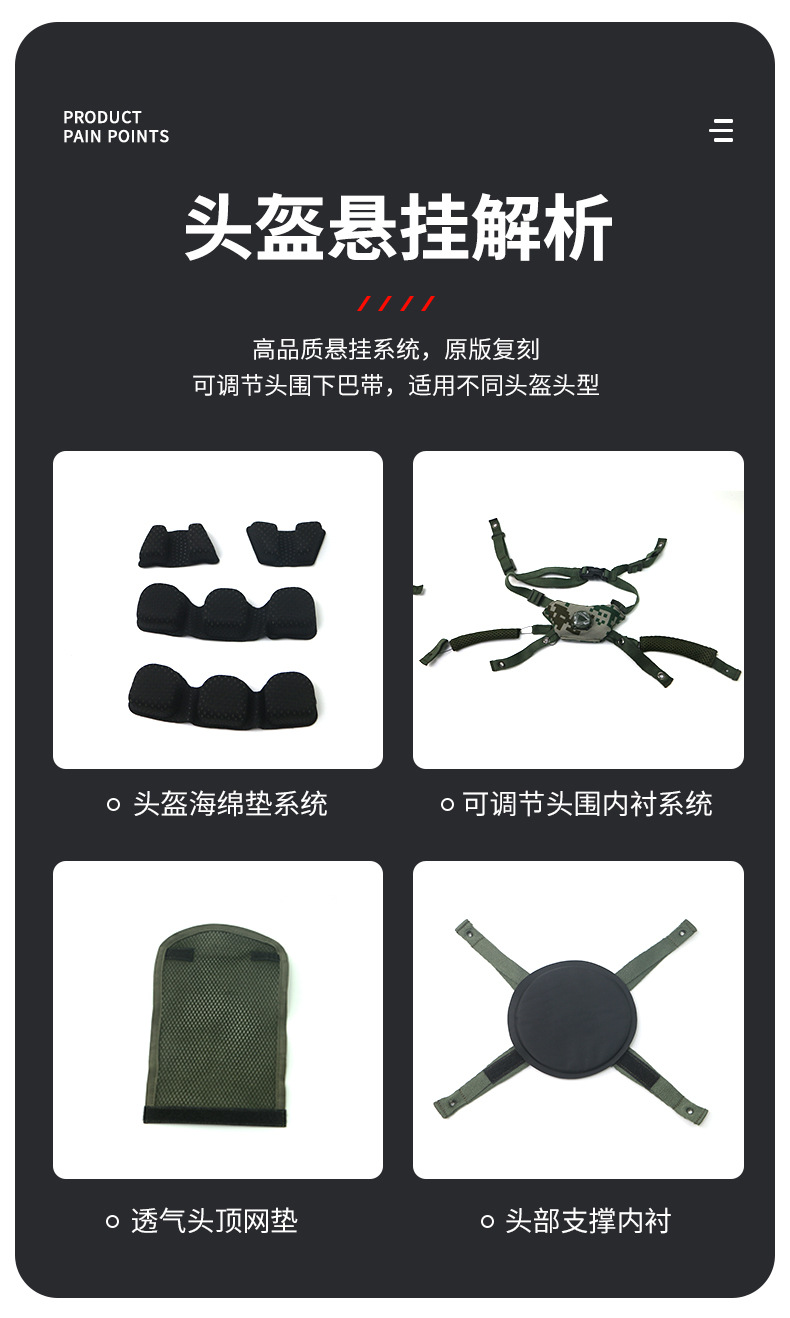 | Color | Conjunto completo de velcro, malla, esponja, revestimiento superior, tornillo y tuerca, revestimiento completo (por favor, anote el color), suspensión |