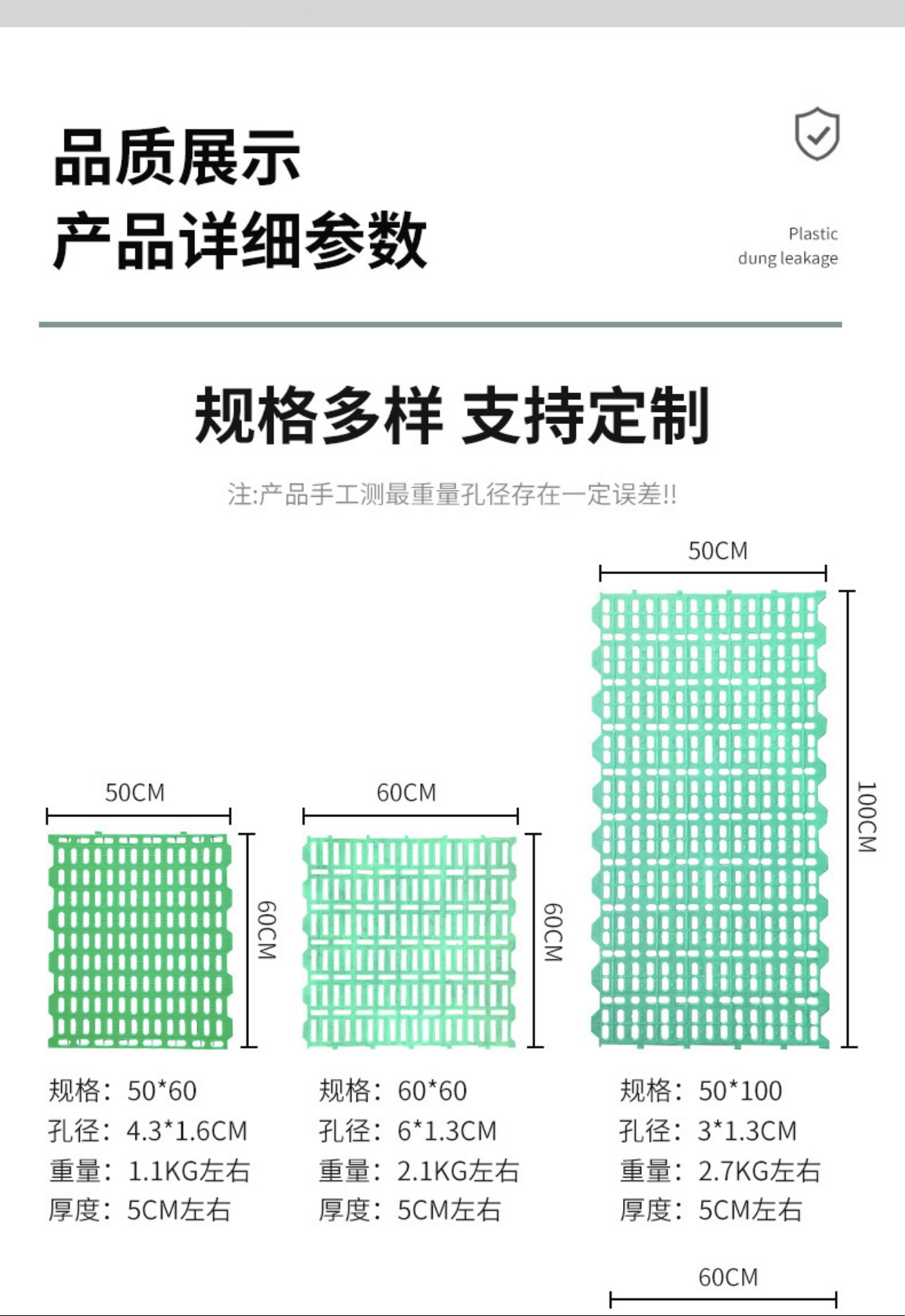 | Especificaciones del producto | Tablero de estiércol con fugas de oveja 1.5M,Tablero de estiércol con fugas de oveja 1.2M,"Tablero de estiércol con fugas de oveja 1M ①","Tablero de estiércol con fugas de oveja 1M ②",Tablero de estiércol de oveja 60*60CM |