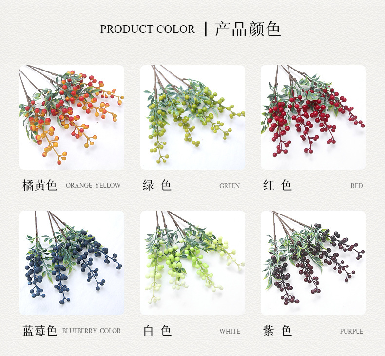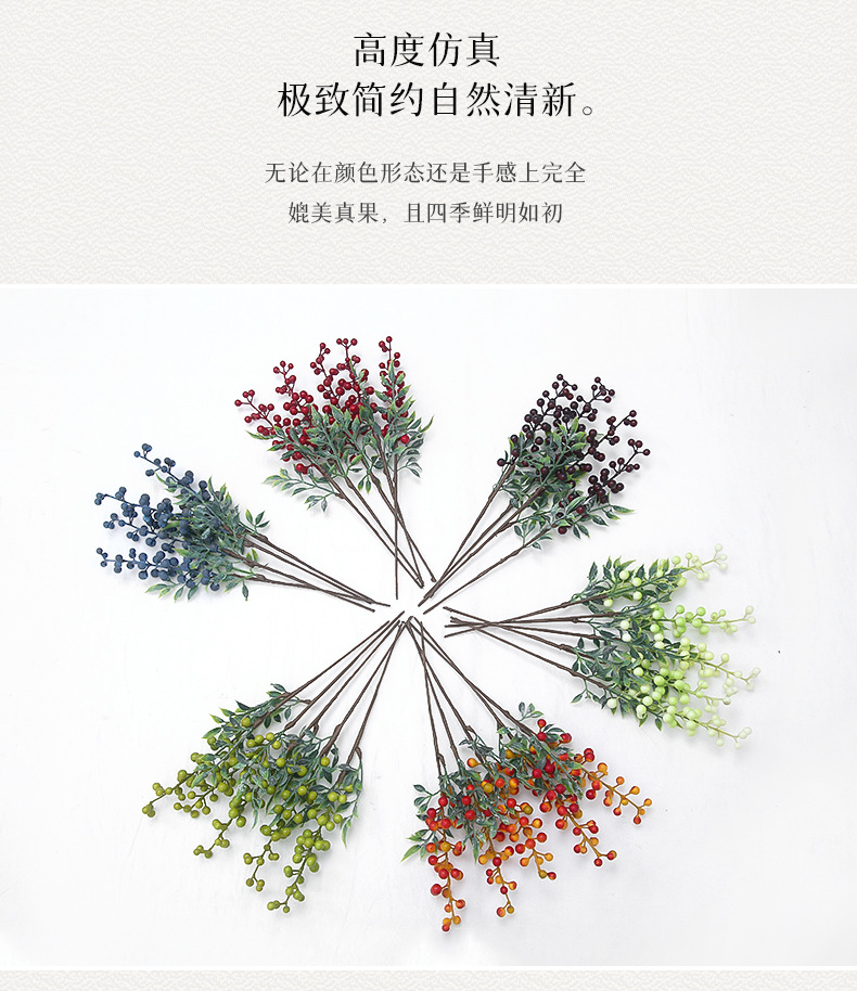 Simulación de bayas de acacia única Simulación de flores Simulación de plantas Accesorios de arranque de flores Bayas de arándano Frutas ricas