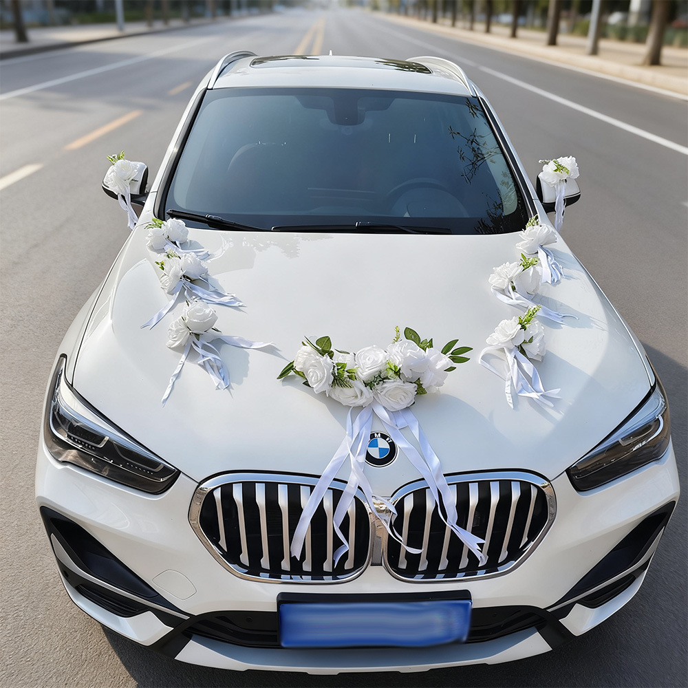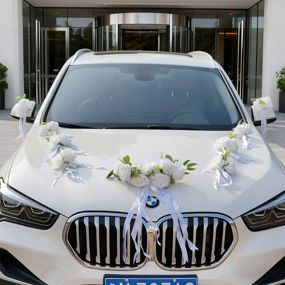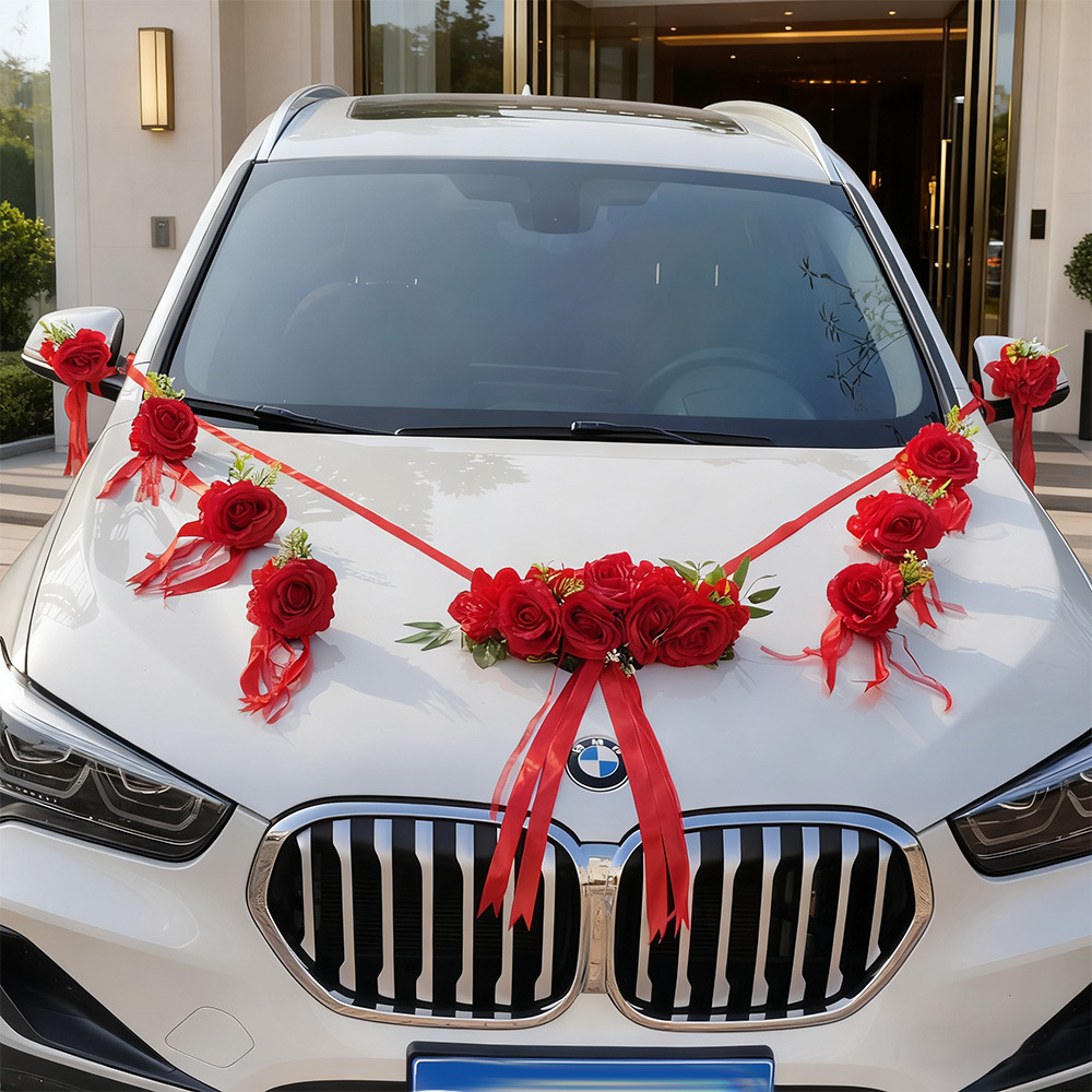 Decoración principal del coche de boda, simulación de flores, rosa china, diseño del equipo de boda, conjunto completo de automóviles de boda